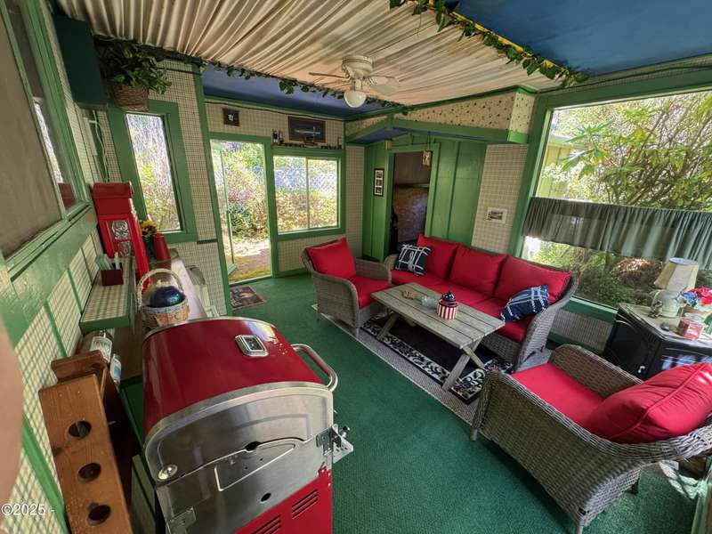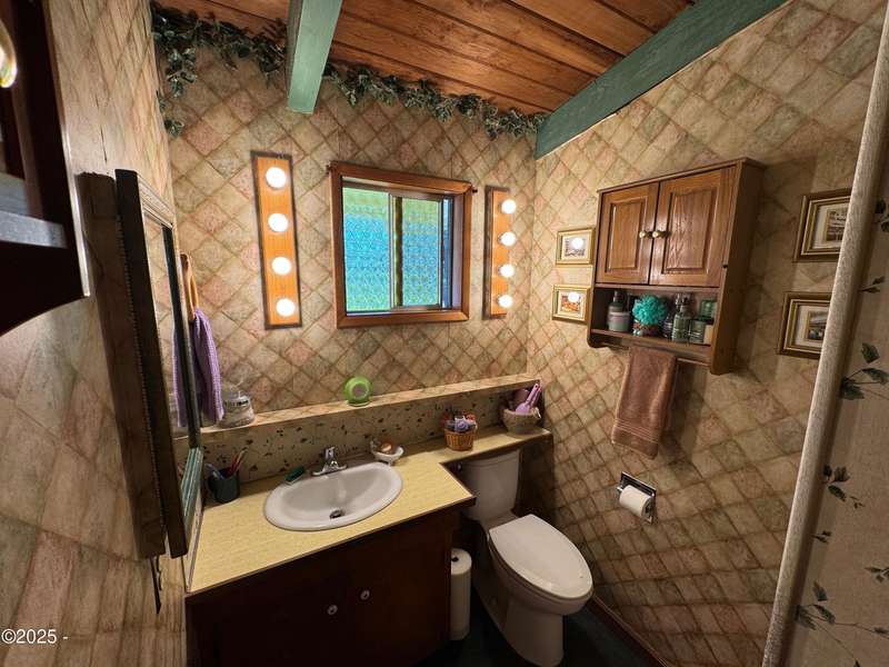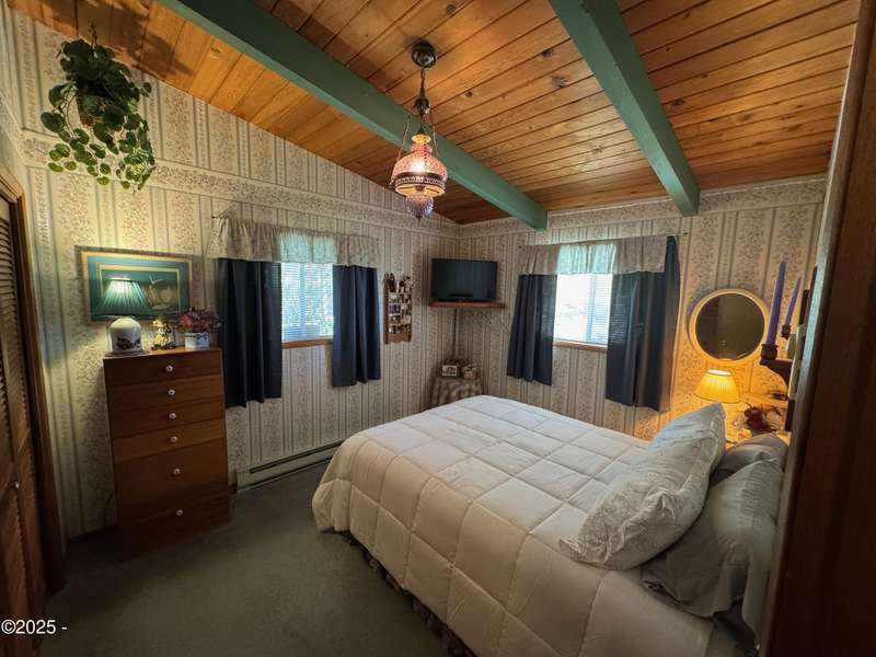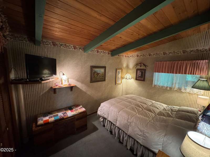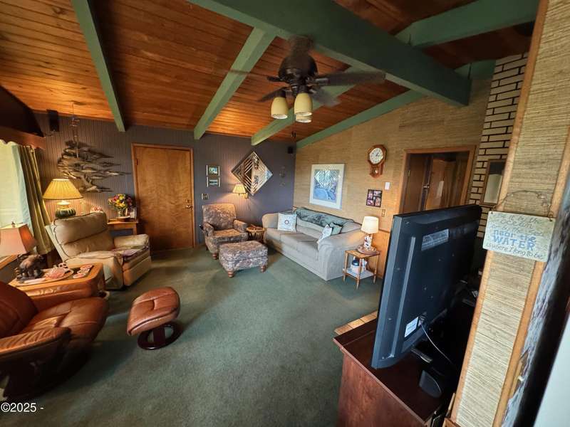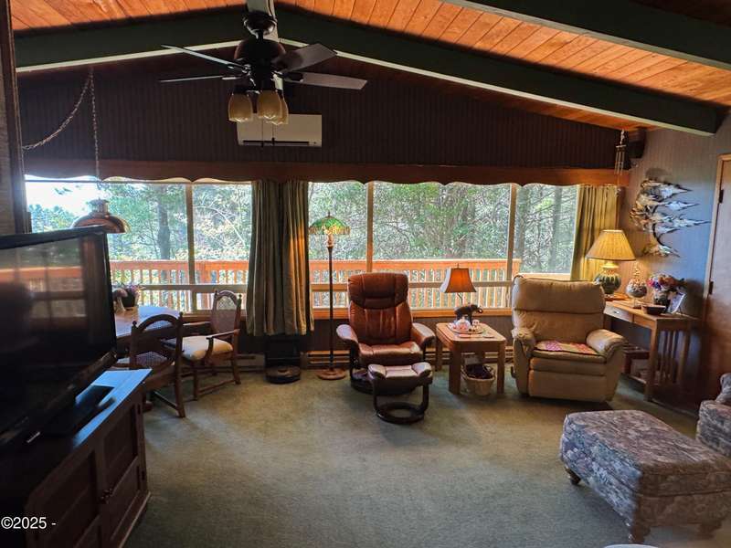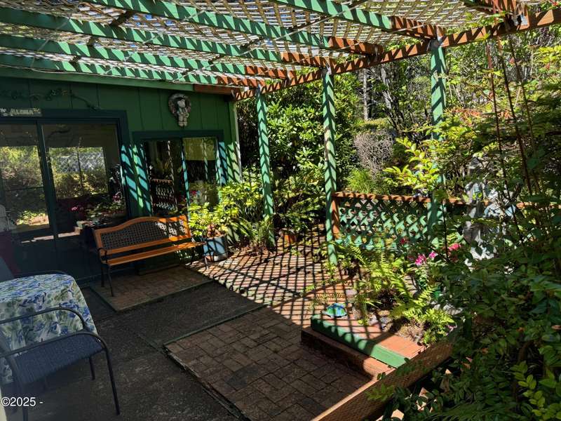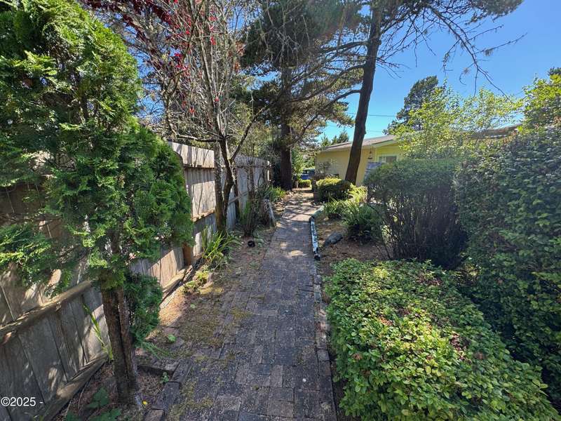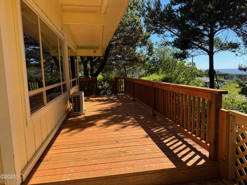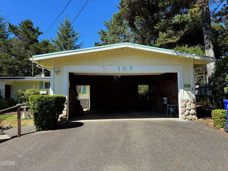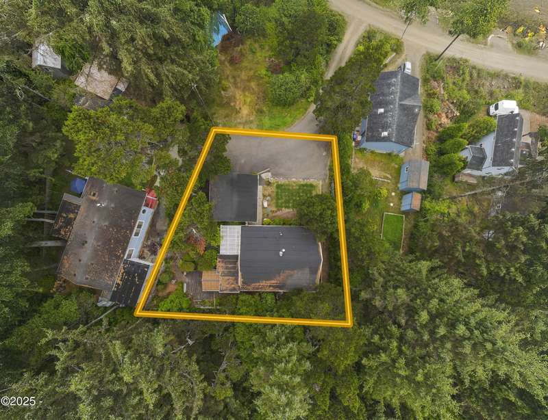 This charming Pacific Northwest cottage, located about 10 minutes from Newport or Waldport and 3 minutes from Lost Creek State Park, featuring a stunning ocean view. Large picture windows and vaulted ceilings in the dining and living areas beautifully frame the coastal panorama. The NEW ocean-facing deck is perfect for barbecues or entertaining guests. This 2 bedrooms and 1 bathroom property includes a detached garage, an enclosed back patio, and a pet-friendly yard with mature landscaping. The septic system was fully replaced in 2022 and has been professionally maintained since installation.
