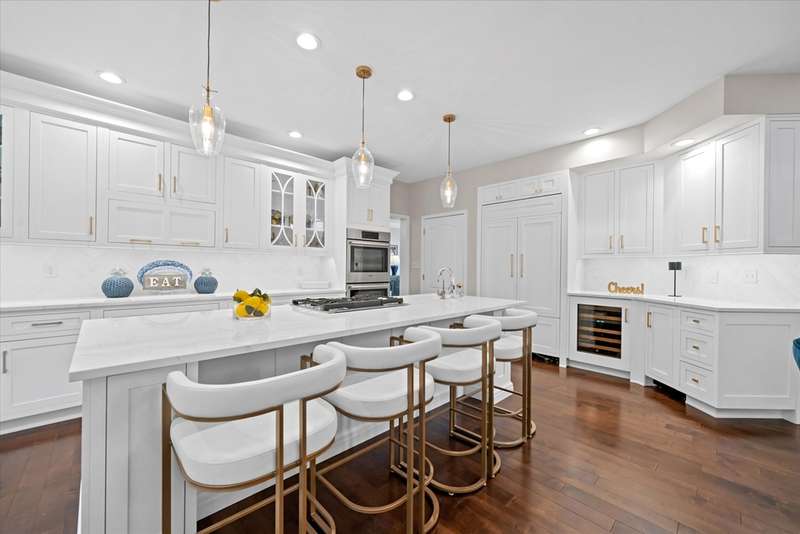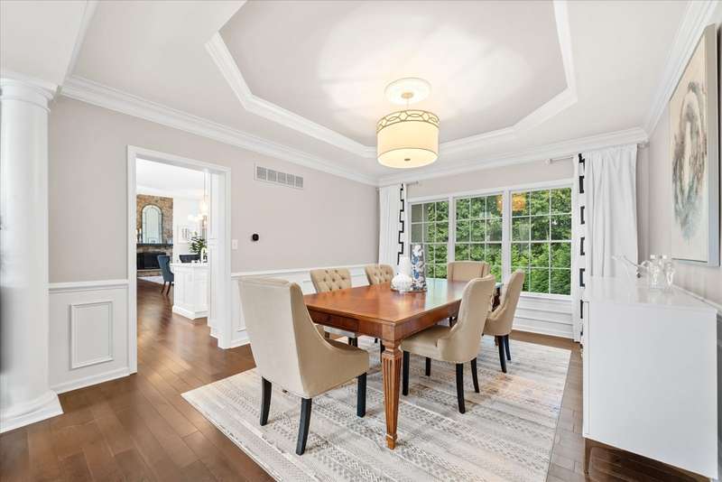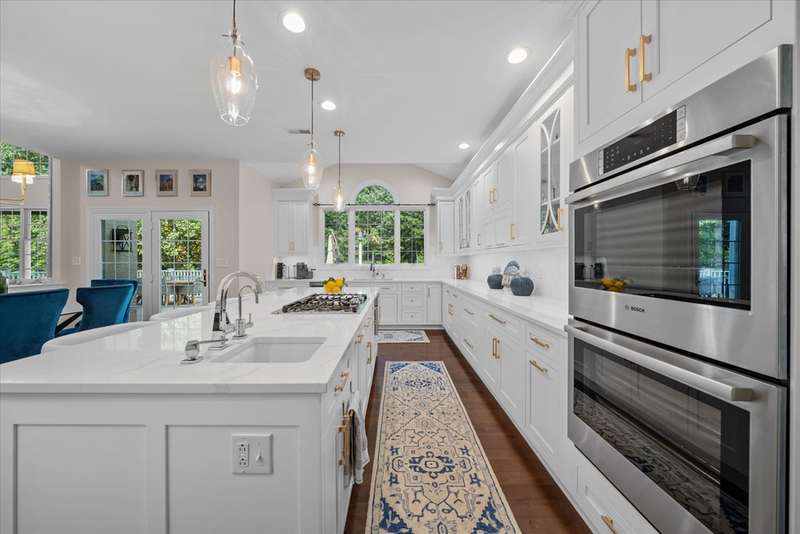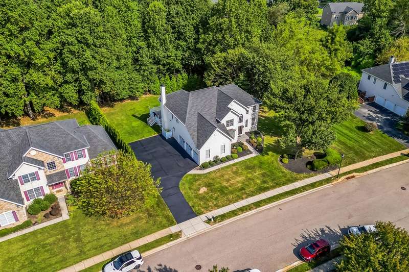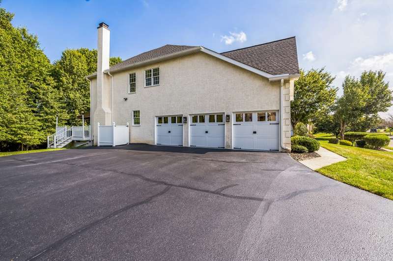 Welcome to this exceptional 4-bedroom, 3.1-bath Elkins model located on a premium lot in this desirable community in Hockessin. Backing to open space on both the side and rear, this property offers unparalleled privacy and gorgeous wooded views, making it the perfect retreat. Step inside to a dramatic two-story foyer and be greeted by a thoughtfully designed open floor plan. The combined living and dining room features an elegant tray ceiling—perfect for formal gatherings and entertaining. A private main-level office with bay window provides an ideal work-from-home space. At the heart of the home lies a custom, newly updated kitchen with the Palladian kitchen option adding an additional 5 feet and a Palladian window. This unique kitchen is a chef’s dream equipped with Quartz countertops, commercial-grade appliances, a Sub-Zero refrigerator, freestanding ice maker, wine fridge, under-cabinet lighting, and a massive center island with vegetable sink and built-in microwave drawer. A large walk-in pantry adds generous storage. The adjoining breakfast area has newer exterior Andersen French doors that open to a spacious wood deck, complete with motorized awning, vinyl railings, exterior lighting, and private wooded views—perfect for relaxing or entertaining. The backyard is a true highlight, offering an expansive, private setting ideal for outdoor playsets, sports, or the installation of a future pool. Whether you're envisioning family games on the lawn, summer barbecues, or building your dream outdoor oasis, this space offers unlimited potential. The two-story family room features a wall of windows complemented by a floor-to-ceiling stone wood-burning fireplace with an electric insert and is overlooked by a second oak staircase that leads to the upper level. A separate laundry room with built-in cabinetry and an updated half bath completes the main floor. Upstairs, you’ll find three generously sized bedrooms, each with walk-in closets, and a full hall bath. The luxurious primary suite offers a double-door entry, sitting area, and a large walk-in closet with built-in storage. The recently renovated spa-like primary bath features a Quartz vanity, freestanding soaking tub, and a subway-tiled shower. The finished walk-out lower level has been freshly painted and newly carpeted, offering a versatile recreation space, wine storage room, built-in wet bar with new countertops, full bath, and ample storage. Additional highlights include a 3-car garage with epoxy flooring, new insulated exterior doors, garage door openers, and a garage storage system. Other updates include a new roof, larger gutters, downspouts, gutter guards, a water filtration system, new lighting fixtures, fresh paint throughout, new front entry door, and an under-deck storage shed. The stucco exterior was recently inspected by Nick Hindley of Environtech and repairs have already been completed. Community amenities include tot lots, tennis courts, ponds, and sidewalks, all in the North Star Elementary attendance zone. Conveniently located within minutes of Lantana Square shopping, restaurants, Hockessin Athletic Club and county parks. This is more than just a home—it's a lifestyle. Don’t miss your opportunity to own one of the most beautifully updated properties in the community!