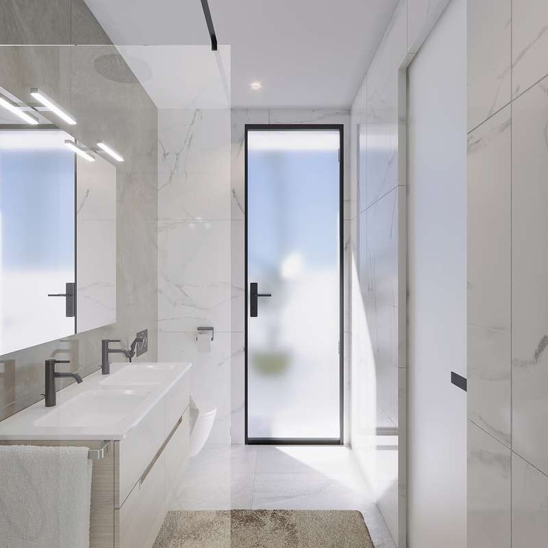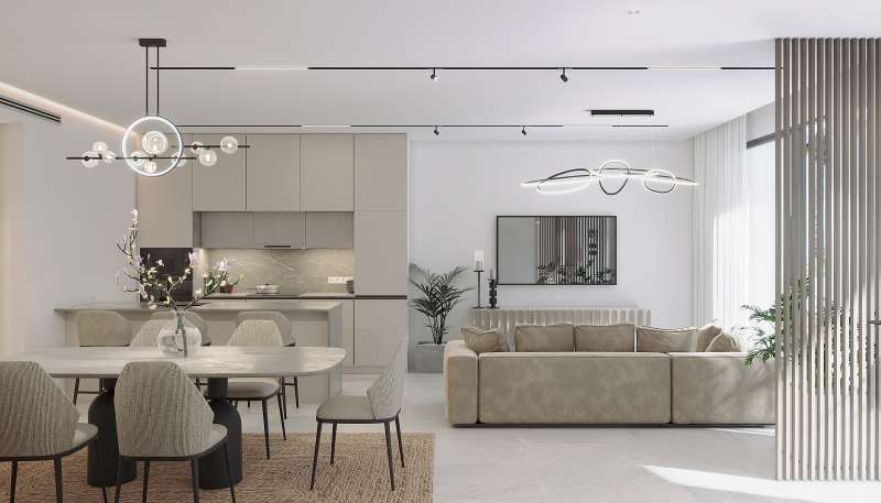 These elegant houses provide 145 m² of refined living space on a single level. The interiors feature a bright open-plan living room and dining area connected to a fully equipped modern kitchen with premium finishes. Large sliding doors open to the private terrace and garden, creating a seamless indoor-outdoor experience. The houses comprise 3 spacious bedrooms with built-in wardrobes and 2 contemporary bathrooms with walk-in showers and high-quality materials. Every house combines comfort, functionality, and a touch of Mediterranean elegance.