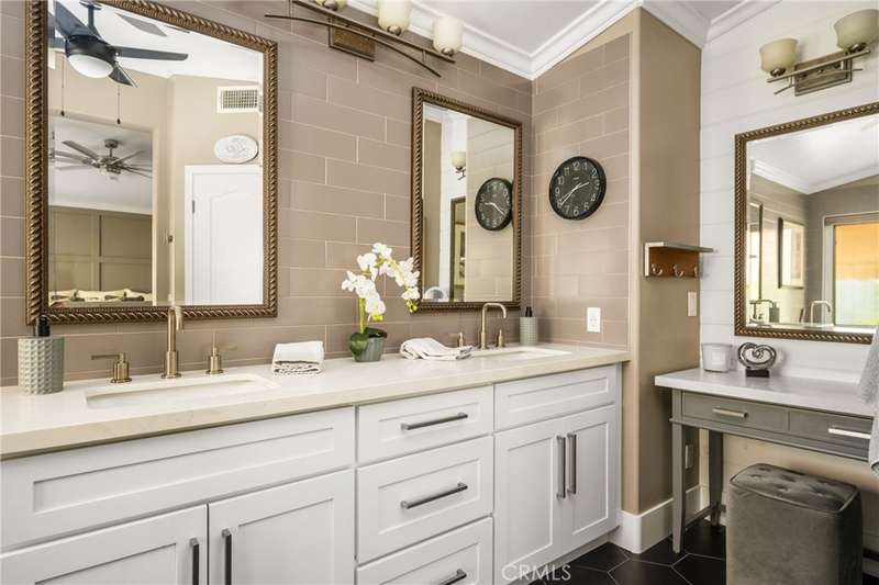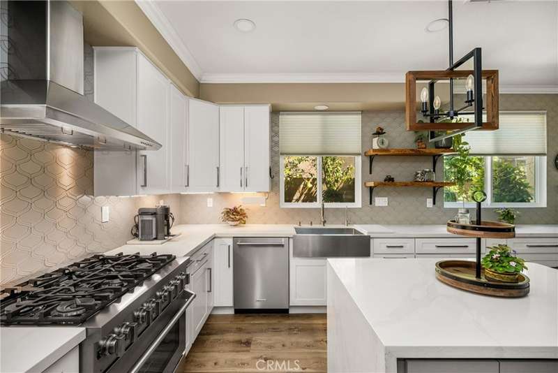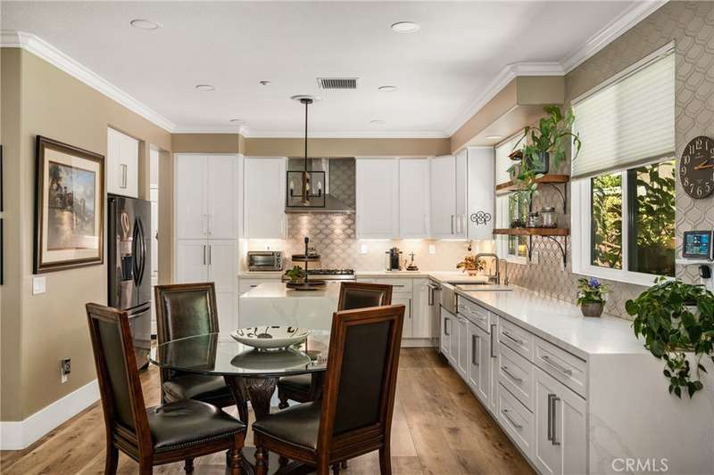 This beautifully upgraded home offers everything you've been searching for--style, comfort, and resort-like amenities. Featuring 3 bedrooms plus a loft, built in 1999, this 2,300 sq. ft. residence includes a 3-car attached garage and sits in the highly desirable Alta Vista community. From the moment you step through the lovely beveled glass front door, you'll be greeted by an open and inviting floor plan. The remodeled kitchen shines with quartz countertops, white shaker cabinetry with pull-out shelves, spice rack, self-closing drawers, pantry with a 30-bottle wine rack, stainless steel appliances and a designer tile backsplash. Luxury vinyl plank and tile flooring, paired with upgraded baseboards, flow seamlessly throughout the home. The family room is a true gathering space, showcasing a cozy brick fireplace with a custom mantle and slider that opens to your backyard oasis. Upstairs, the primary suite features vaulted ceilings, a ceiling fan, custom walk-in closet, and a spa-like bathroom with a soaking tub, quartz dual sinks and a step-in shower with multiple shower heads. A convenient upstairs laundry room adds everyday ease. Enjoy resort-style relaxation with your private saltwater pool and spa, complemented by low-maintenance landscaping, artificial turf and a drip irrigation system for energy efficiency. Additional highlights include surround sound, designer light fixtures, custom closet organizers, recessed lighting, wrought iron custom staircase, custom built-ins, crown molding, upgraded windows and slider, plantation shutters, whole-house fan, water softener, multi security cameras, tankless water heater and a solar system for long-term savings. This home is ideally located within walking distance of Alta Vista Country Club & Golf Course, Champions Sports Park, shopping, and dining. Award winning Placentia/YL school district. Low HOA dues also include access to a community pool and spa. Your home search ends here--this Alta Vista gem truly has it all!