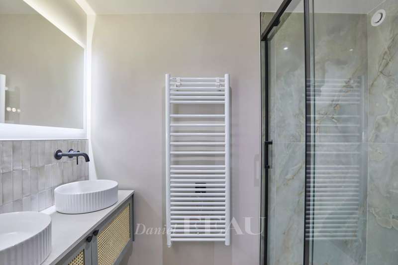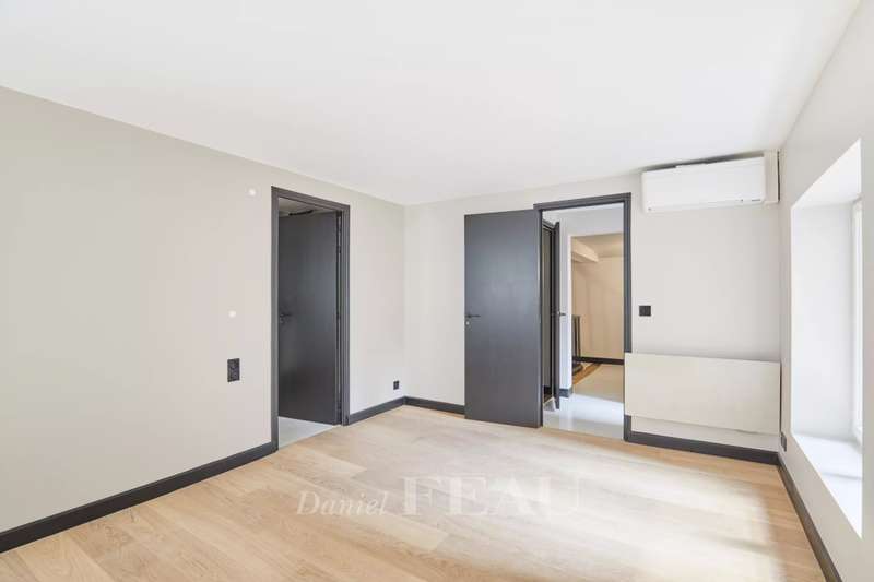 Ideally located on Rue de Navarin, overlooking a quiet courtyard, this completely renovated townhouse has been brought up to standard, offering a surface area of 151,80m² (Carrez law) and a floor area of 157,23m². Spread over four levels, the ground floor comprises a spacious entrance hall under a glass roof leading to a large bedroom with its own shower room and toilet, or a separate studio. The first floor comprises a master suite with its own shower room, dressing room, and toilet. The second floor comprises a bedroom with its own bathroom, dressing room, and toilet. The third floor comprises a large living room with an open-plan kitchen. The fourth and top floor features a roof terrace. The work was carried out by Jouvence (a Cogedim group company), which specializes in the renovation of luxury properties. The spaces were optimized, heritage features were preserved, and new energy efficiency was achieved thanks to exceptional insulation. South facing.