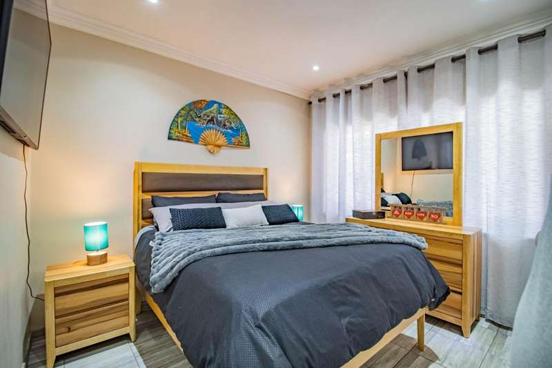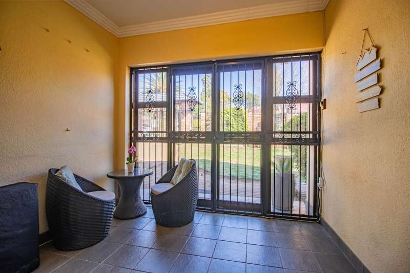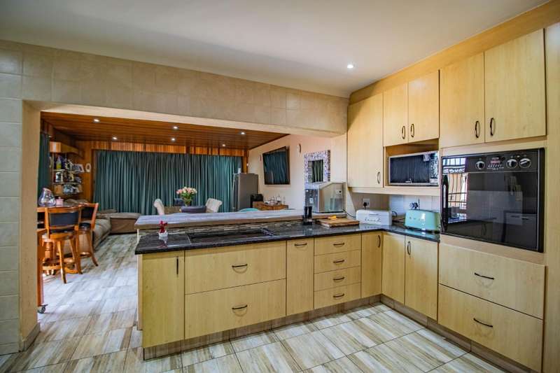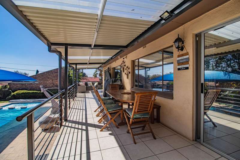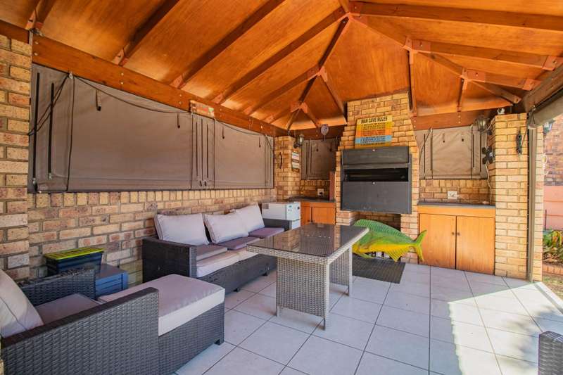 Nestled in the suburb of Edendale, this immaculate, move-in-ready home offers a perfect blend of modern living, down-lighting and timeless comfort. The welcoming lounge, complete with a gas fireplace and air-conditioner, invites you in. A study leads off from the lounge. An open-plan design connects the kitchen, dining, and family room areas ?Çö ideal for both relaxed family living and elegant entertaining. The kitchen is well-appointed with granite countertops, a breakfast nook, pantry, eye-level oven, and glass-top stove, and opens out to a patio with a built-in braai for effortless outdoor meals. This home boasts three well-sized bedrooms and two beautifully finished bathrooms, all under cool, tiled floors. The main bedroom (with an airconditioner) features built-in cupboards, a full en-suite bathroom, and sliding doors opening to the patio (with electric and solar lights). The family bathroom also offers a bath, shower, basin, and toilet, catering to daily needs with ease. Practical additions include a domestic room (currently a laundry), an outside toilet with shower and basin, and a spacious basement storage area with shelving. Double garage with automated doors leads into the kitchen. Covered, paved parking for 3 vehicles and further paved parking for an additional 2 cars. Automated gate. Remote and smart app control. Alarm system with CCTV smart app. Outdoors, the property continues to impress. The garden is supported by an automated sprinkler system and a borehole with an electric pump, ensuring lush greenery year-round. Enjoy entertaining under the tiled lapa with tiled floors, canvas and netting sides and a built-in braai, or relax on the large patio overlooking the enclosed, solar-heated pool and jacuzzi with corner jets. The home is equipped with a robust 10KVA inverter, three 4.8KWH lithium batteries, and nine 450W solar panels ?Çö offering sustainable energy and peace of mind. A truly exceptional home for the discerning buyer. Contact me to arrange a viewing.