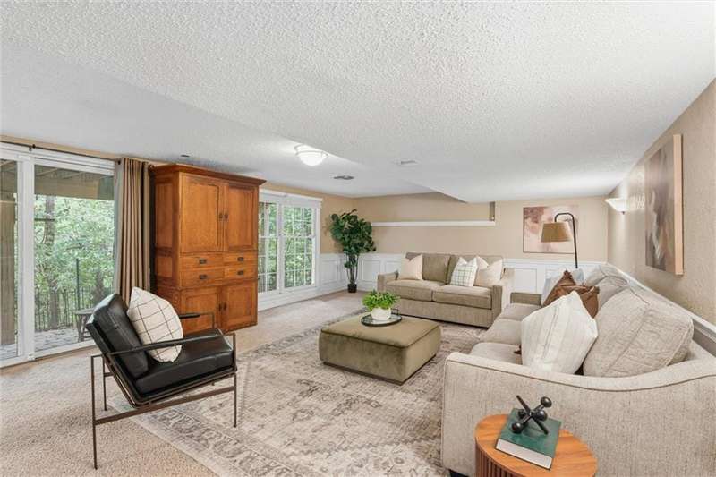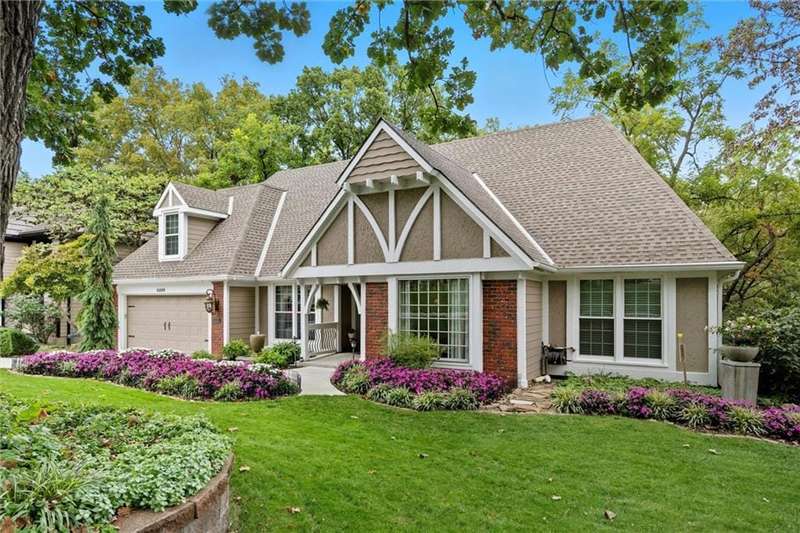This beautifully updated 1.5-story in Greystone South has incredible curb appeal with lush, colorful landscaping, a front fountain, and pristine Hardie siding. Inside, the main level features a vaulted family room with a fireplace, a formal dining room, and a formal living room currently used as a piano room. The kitchen has been updated with white cabinetry, stainless appliances, and easy access to the powder room and laundry.The main floor layout makes one-level living simple, with the primary suite, remodeled ensuite bath, and a second bedroom with a full bath all on the same level. Upstairs, two more bedrooms and a hall bath provide great space for guests, kids, or a home office. The finished basement adds even more flexibility with two large living areas, another fireplace, and walkout access to a lower patio.Out back, the setting is hard to beat. The sellers combined two decks into one massive outdoor living space surrounded by trees, birds, and total privacy. No fences or back neighbors, just a peaceful nature view that feels like a private retreat.All of this in a fantastic Lenexa location, with grocery stores, pharmacies, Starbucks, Tanners, McDonalds, liquor stores, and Oak Park Mall all within about eight minutes.Updates include a new driveway and garage floor, James Hardie siding, new gutters with leaf guards, sprinkler system, added hardwoods on the main level, and more. Those are just some of the improvements. See supplements for the full list. A rare combination of space, updates, and privacy in one of Lenexas most loved neighborhoods.