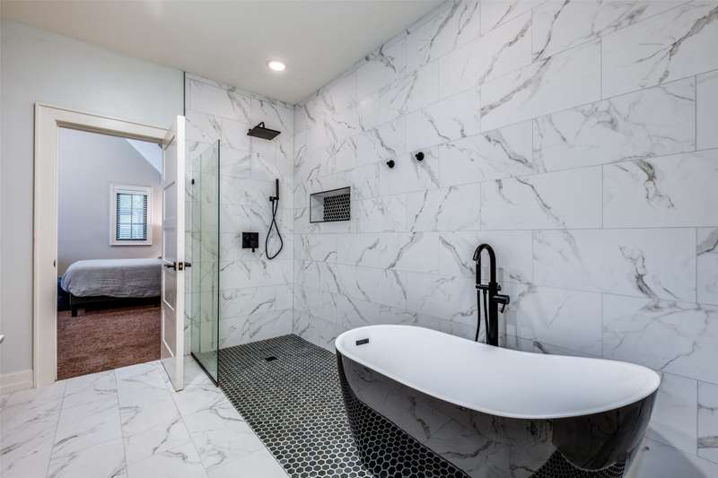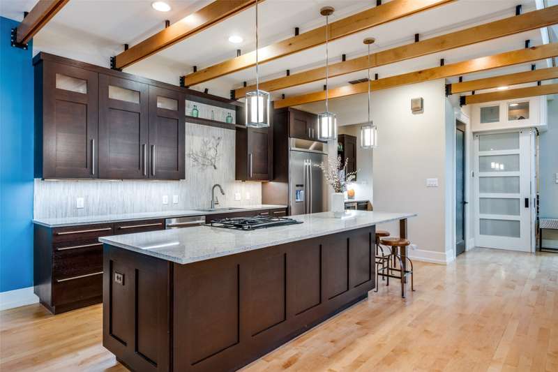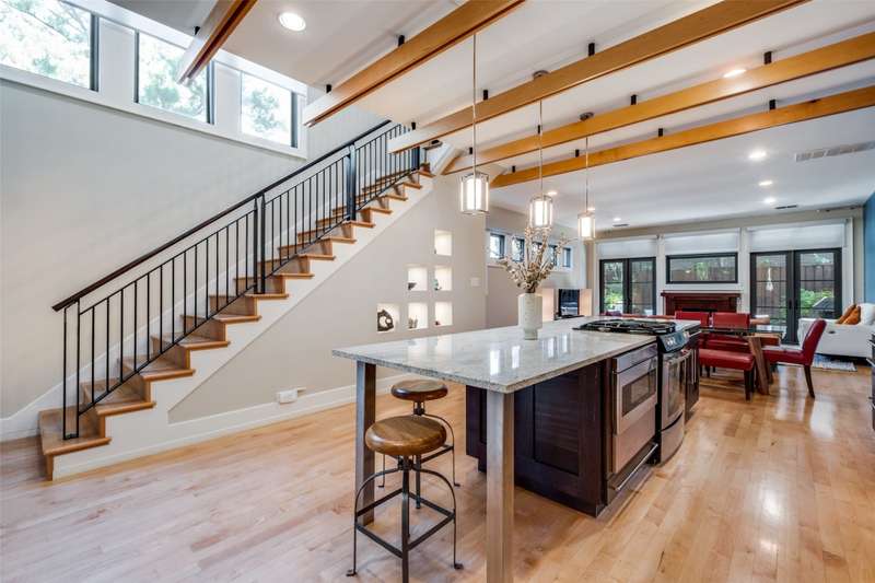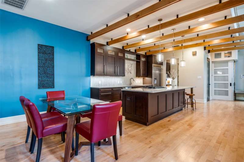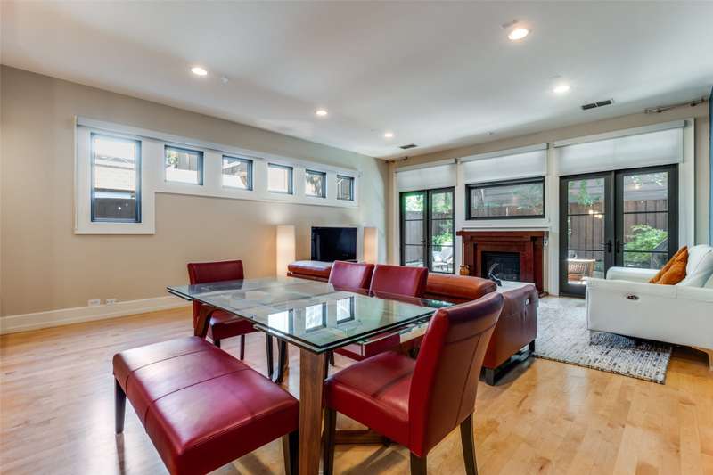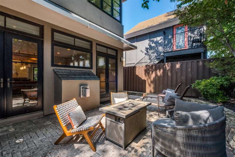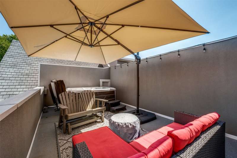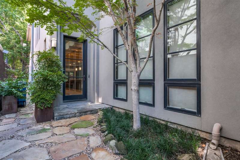 Incredible location meets modern luxury in Northern Hills! Just steps from Turtle Creek, Old Highland Park, Uptown, and The Katy Trail, this sleek custom half-duplex combines style, comfort, and convenience. A gated courtyard entry welcomes you into bright and open first-floor living and dining spaces with soaring 12-foot ceilings. The chefs kitchen boasts top-of-the-line appliances, a built-in 48-inch refrigerator, and a butlers pantry with a wine fridge - perfect for entertaining. Enjoy cozy evenings by the fireplace or relax on the spacious outdoor patio.Upstairs, the impressive primary suite features vaulted ceilings, a spa-worthy marble bath, and a generous living area. A private guest suite with an en-suite bath completes the second floor. The third floor has a bedroom-office with a wet bar, full bath, and an expansive rooftop deck with hot tub which showcases the best of Dallas living. Own a custom modern home in a premier location.