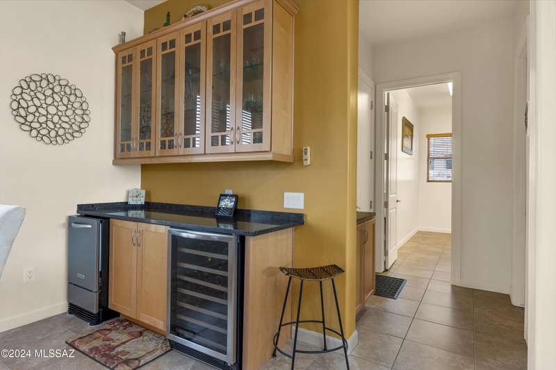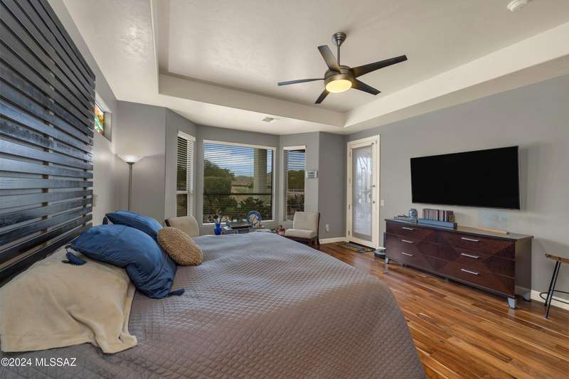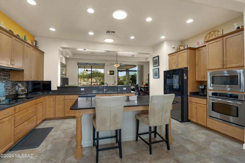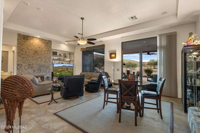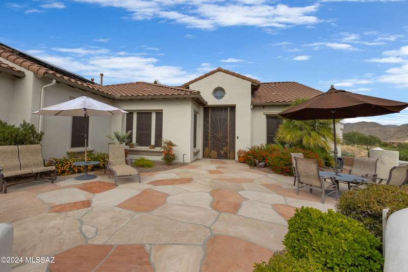 Highly upgraded SABINO model sits above the 11th hole and 12th tee box of The Preserve golf course with sweeping views of the Catalina Mountains from both the front courtyard and the expanded rear patio. Home features an owned 9.5kW solar system, Tesla Powerwalls, 2023 Trane 18 seer HVAC system, new water heater and R30 insulation. Kitchen has a custom cabinet, quartz countertop, built-in ice maker and wine cooler. Rear patio roof has been extended 8ft with tongue and groove ceiling. 2 Bromic gas heaters and flagstone patio. Large entertaining backyard has Pebbletec spool, rock waterfall, fire pit, BBQ island that seats six and endless mountain views. Also has a side load garage and windows have sun screens. Call today for your private showing.