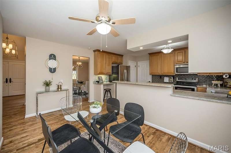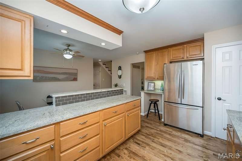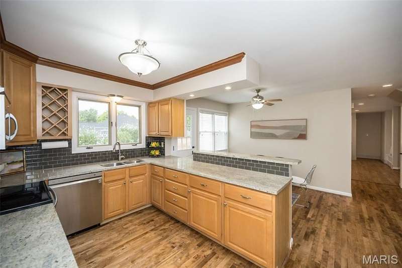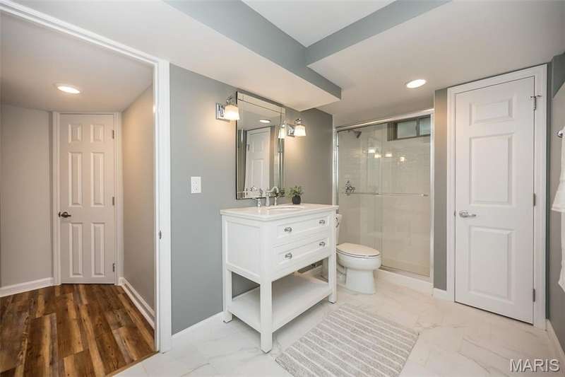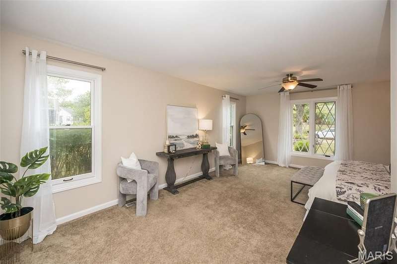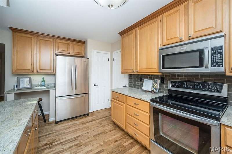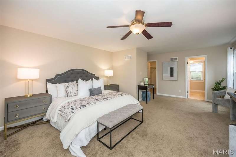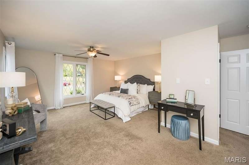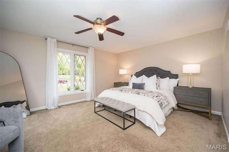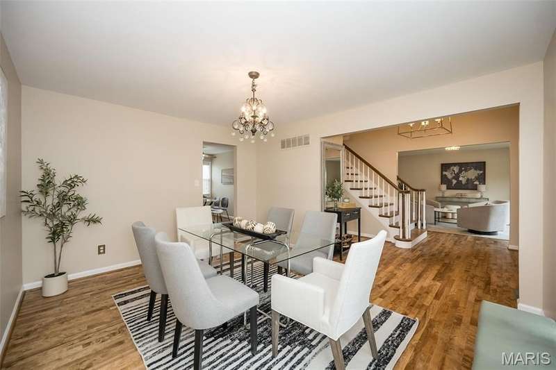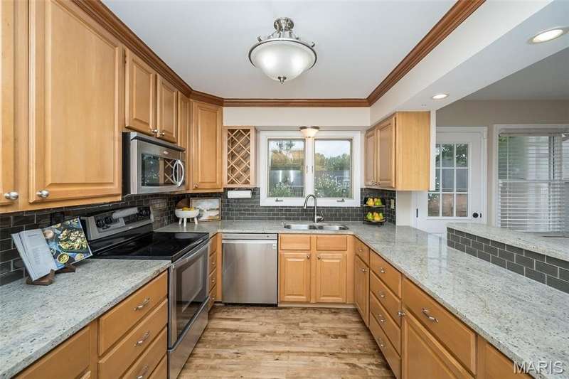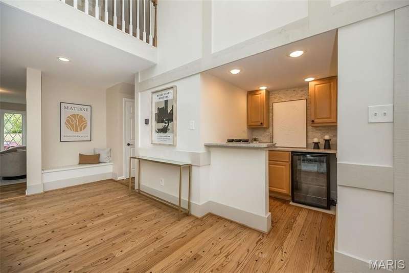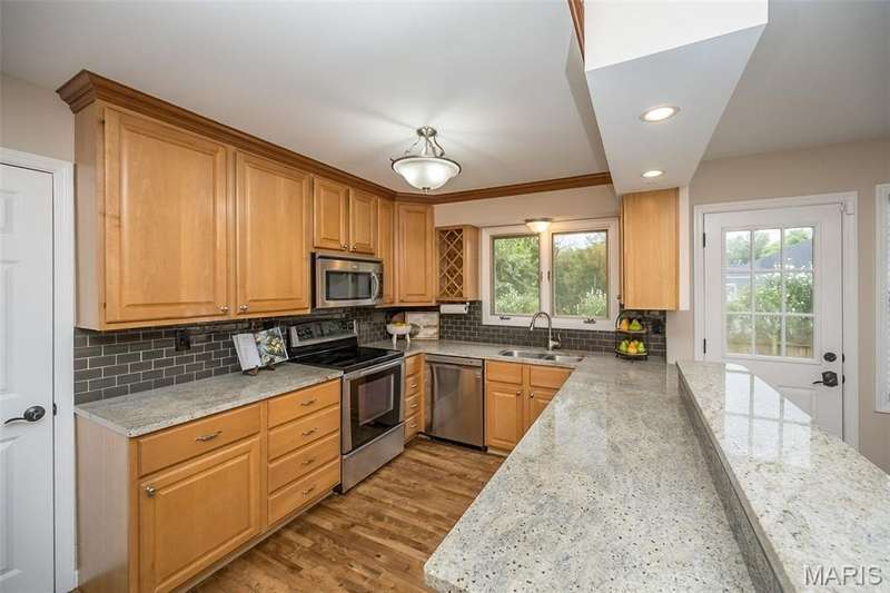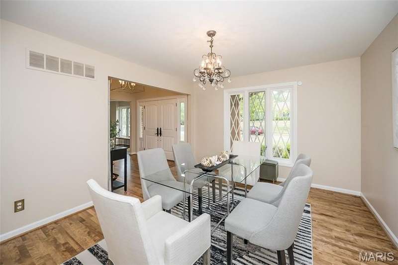 Simply SPECTACULAR! Welcome to 1710 Lynkirk Lane ~ a unique "Chalet-like" architectural gem that's perfectly positioned on a gorgeous .50 acre lot in the coveted Briar Hill Farm Subdivision! This 1 1/2 story stunner proudly boasts 3200+ sq. ft. with 5 bedrooms, 3 1/2 baths and exudes a one-of-a kind style and personality plus! Be greeted by the grand entry that is the perfect precursor to what lies within: formal dining room with chic chandelier, classy sitting room/study that leads into the STUNNING great room with soaring 20 ft. ceilings and distinctive Tudor accents that consist of rough sawn wood, angles, arches and beams that creatively define it's dramatic space. The focal fireplace is a true showstopper and is flanked by floor to ceiling windows, French doors and a wet bar that's perfect for entertaining. The sunny eat-in kitchen is very attractive with custom wood cabinetry, rich granite countertops, sleek subway backsplash, stainless appliance package, pantry and easy access to the laundry/mud room! You will LOVE the spacious MAIN FLOOR primary suite that is oh-so dreamy: large walk-in closet, spa-like bathroom with beautiful travertine floors, double bowl cabinet vanity, oversized walk-in shower and linen closet. Head upstairs to find (3) expansive bedrooms that are each equipped with plenty of closet space, a neat "flex" loft-like area and a large hall bath with double bowl cabinet vanity and tub/shower combo. Need more space? No problem! The lower level is AMAZING: rec/media room that sports recessed lighting and custom built-ins, private ensuite with stylish designer vanity, walk-in shower and linen closet! There's an additional room that could be used as an office, workout area or sleeping area...lots of options! Not to miss: GORGEOUS refinished floors, beautiful fenced yard with patio, oversized 2-car garage, meticulously maintained systems, subdivision pool, tennis courts and private clubhouse, highly rated Kirkwood School District and a PRIMO location! Don't miss this one folks!
