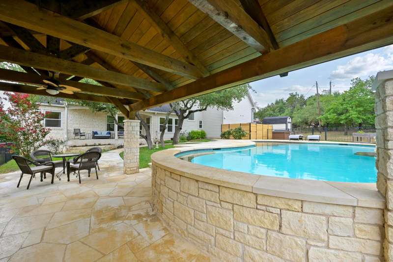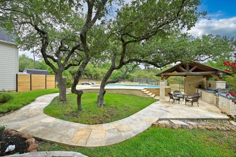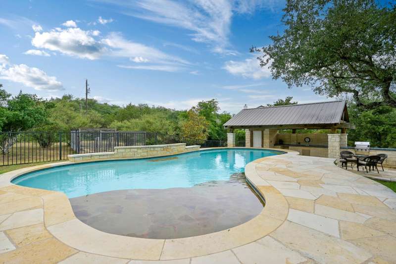 Welcome to your own private sanctuary nestled on 1.3 acres in the coveted Bee Cave. This home is only minutes to the Hill Country Galleria, HEB, Whole Foods, Trader Joes (coming soon), restaurants, Target and so much more. It includes a renovated kitchen and primary bathroom, along with triple-pane windows. Outside, enjoy a private setting with a sparkling pool, a cabana featuring an outdoor kitchen and bathroom, and a lush, fenced backyard perfect for people and pets alike. Green thumbs will appreciate the ready-to-plant garden, while outdoor enthusiasts will love the neighborhood hike and bridle trail. Enjoy the 1.63% Bee Cave tax rate and voluntary HOA. Families will love the top-rated Lake Travis ISD schools, including Lake Pointe Elementary, Bee Cave Middle School, and Lake Travis High School. This home offers the best of Texas Hill Country living with city access at your fingertips. NOTE: there is a half bathroom in the outside cabana