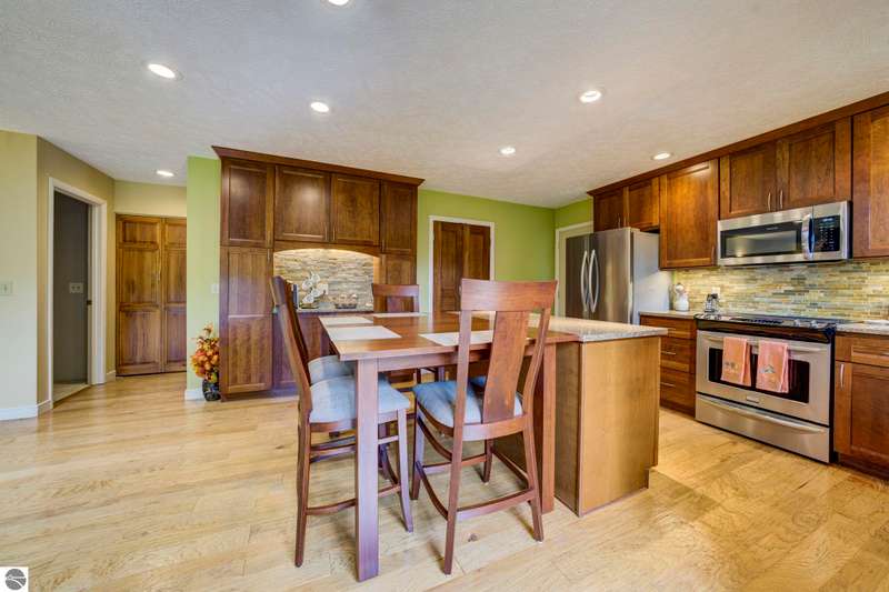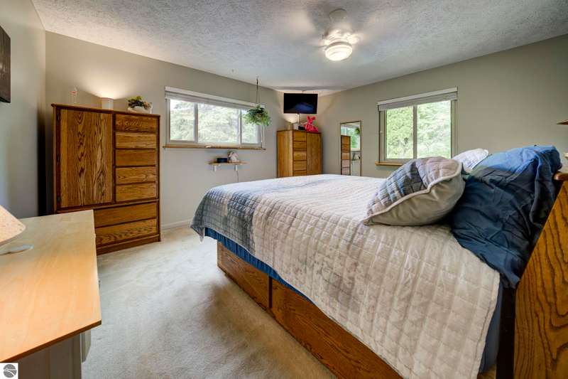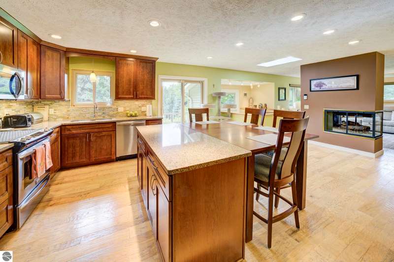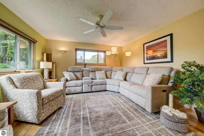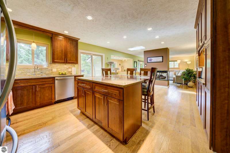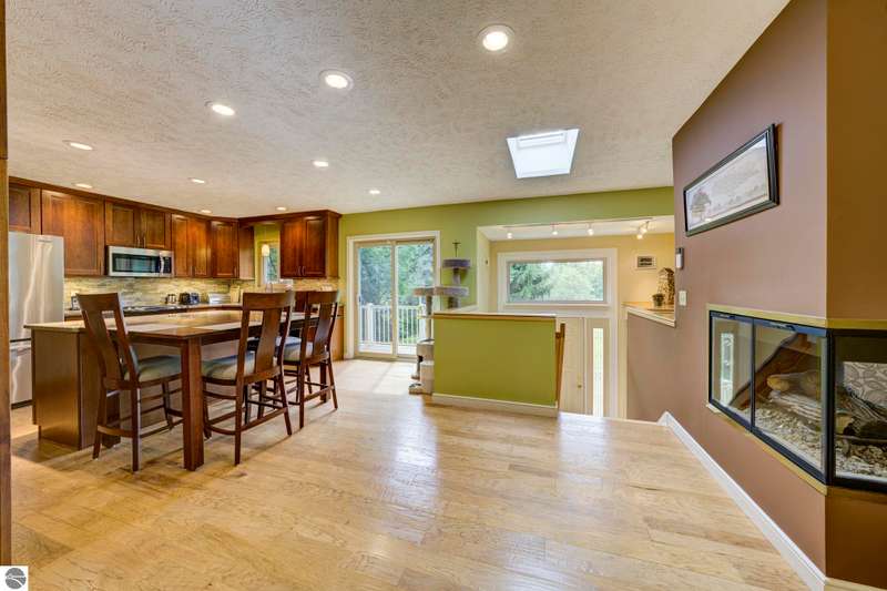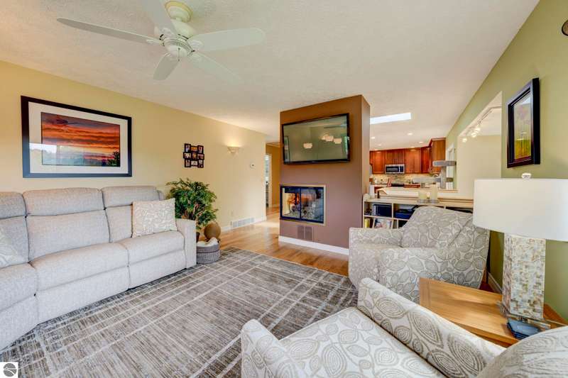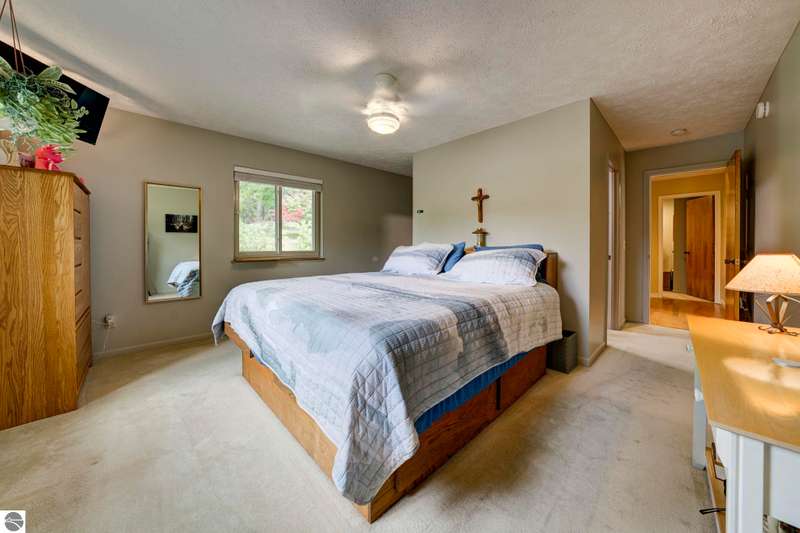 Delightful, well cared for builders house on a park-like corner lot in a quiet Leelanau County subdivision - but only a 15 minute drive to TC. Oh - and shared waterfront on West Bay with a beautiful, wide sandy beach. The delightful setting eases its way into every room of this house - the flow and energy of the floor plan is fabulous. As are the details and craftsmanship. Come see, you'll feel it from room to room - from the primary bedroom with heated bathroom floors to the entertaining kitchen to the decks overlooking that magnificent lawn to the b-b-q shed, this house will delight you at every turn. Showings begin Saturday, October 4th.