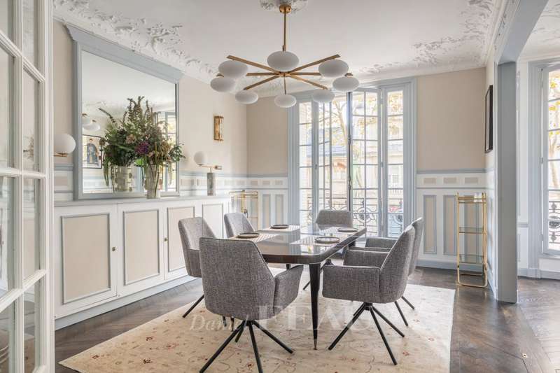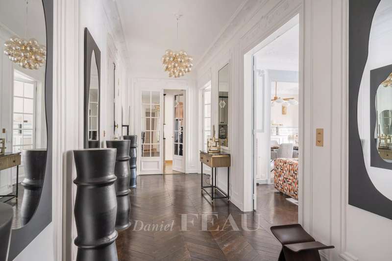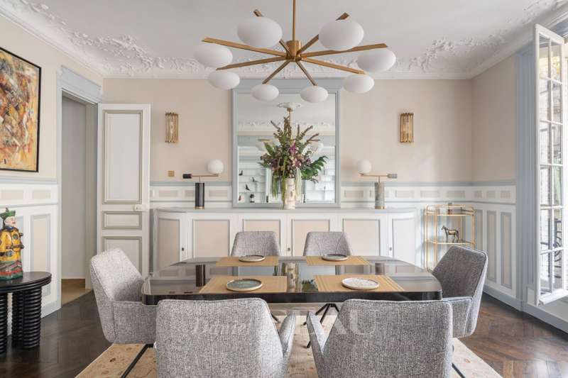 Exclusive Listing – In a beautiful early 20th-century building of high standing, this elegant, fully renovated and furnished family and reception apartment offers a total living area of 165.71 sqm (Carrez law), including a 15.61 sqm maid’s room accessible by elevator. Occupying the entire floor, the main apartment of 150.10 sqm features a perfect layout and all the charm of classic Parisian architecture. This turnkey property comprises a spacious entrance gallery, a large double reception room with wide windows, a dining kitchen with pantry, three generous bedroom suites each with built-in wardrobes and their own bathroom or shower room (the master suite also including a WC), a laundry room, a dressing room, and guest toilets with wash basin. The refined renovation and high-quality fittings give this home a contemporary and elegant atmosphere while preserving the bourgeois character of early 20th-century Paris, with high ceilings, fireplaces, and decorative moldings. Located in the heart of the Gros Caillou and Saint-Dominique neighborhood, this property enjoys a distinctly Parisian character. Two renovated concrete cellars are included, as well as a large, furnished and fitted maid’s room on the seventh floor accessible by elevator. The building also offers bicycle storage and the services of a resident caretaker. Mixed use possible (professional or residential).