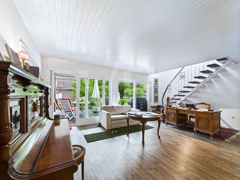 Welcome to Emden-Wolthusen, one of the most sought-after and popular residential areas in the city of Emden. Here, quiet living and the best infrastructure come together in perfect harmony - close to the center and yet close to nature. This spacious prefabricated house, built in 1974, offers a feel-good paradise for families, couples or anyone looking for generous space and quality of life on a total of 198 m² of living space. The 901 m² plot impresses with its impressive size and the lovingly landscaped garden, which invites you to spend relaxing hours in the countryside. Whether it's sociable barbecues on the terrace, which was redesigned in 2023, undisturbed sunbathing or a safe play area for children - everyone will find their favorite outdoor spot here. The peace and privacy offered by this property are a real luxury in such a central location. The house itself is habitable at ground level and impresses with a well thought-out floor plan that includes spacious living rooms and bedrooms, a converted and insulated attic and a full basement area with a practical crawl space. Particularly noteworthy is the cozy fireplace in the living area, which creates a warm and cosy atmosphere on chilly days and makes the home a real retreat. The windows, which were replaced in 2009, and the modern oil heating ensure pleasant warmth and efficient use of energy. In addition, the domestic hot water is supported by a solar system - a sustainable plus point. Inside, you can expect a high-quality living ambience with partly real wood parquet and easy-care vinyl flooring. The bathroom, which was renovated in 2015, as well as the modernized floors and the guest WC give the house a fresh and inviting flair. The electric garage rounds off the offer and provides secure parking directly at the house. Here in Wolthusen, you not only benefit from excellent connections to the city center and the surrounding local amenities, but also enjoy the peace and greenery of one of Emden's best residential areas. A home that promises quality of life at the highest level.