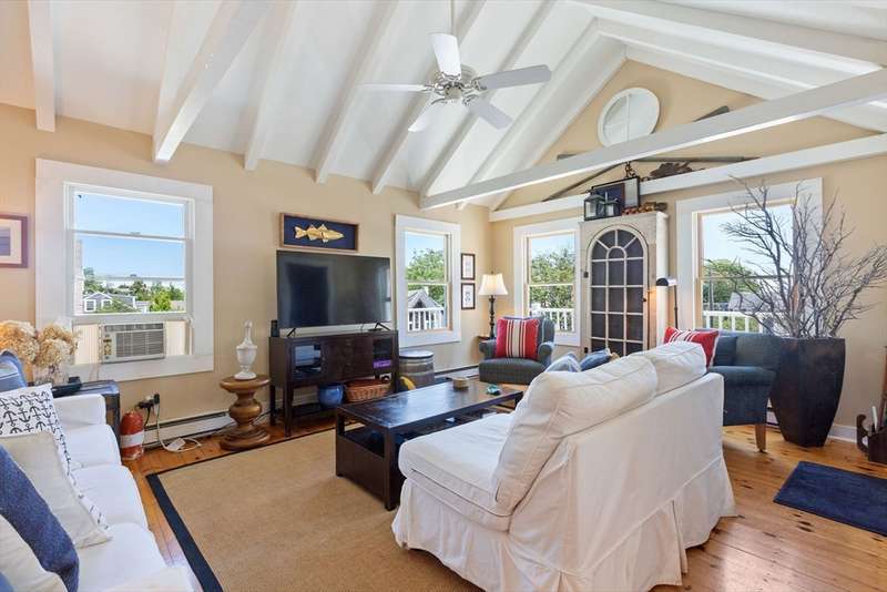 Located in Provincetown s sought-after West End, this bright and private two-bedroom, one-bath end-unit condo features vaulted ceilings and natural light throughout. The exclusive-use deck overlooks a beautifully maintained heated pool and hot tub, with a peek of the Bay beyond perfect for relaxing or entertaining.Inside, the home offers a cozy galley kitchen, inviting living area, and two well-sized bedrooms ideal for full-time living or a weekend retreat. The condo has a strong rental history and is offered with a $15,000 seller credit for updates or A/C installation.Additional highlights include one assigned parking space, pet-friendly rules for owners, and rental eligibility with a certificate. Enjoy the best of Provincetown with beaches, dining, and art galleries just minutes away.