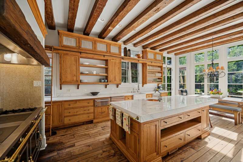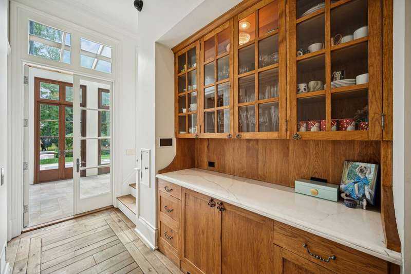 Stunning French Manor house on one of East Kenilworth's most beautiful streets. Stylish and sophisticated, this unique home is perfectly situated near the lake, train, Sears School, and New Trier High School. Luxurious landscaping envelopes the property, highlighted by a serene backyard pool. Expansive marble foyer opens to gracious living room and charming dining room. Dramatic floating staircase. Inviting kitchen with large marble island, fireplace, Grand Palais La Cornue range and table area. Bright sunroom, family room, handsome office and full bath complete the first floor. Second floor includes the primary suite with balcony and 3 more ensuite bedrooms--one with balcony. Third floor offers versatile playroom/lounge area, ensuite bedroom with kitchenette. Lower level exercise room and full bath. An elevator services all four levels, and the attached garage offers parking for 5 cars and EV charging setup. Truly a one-of-a-kind North Shore gem!
