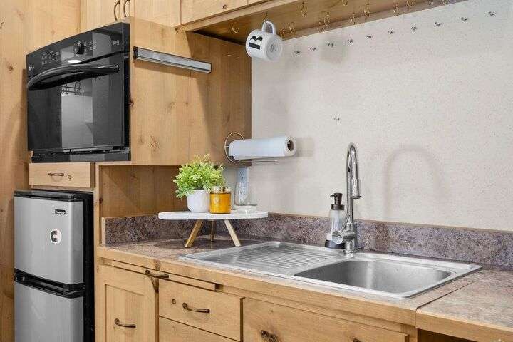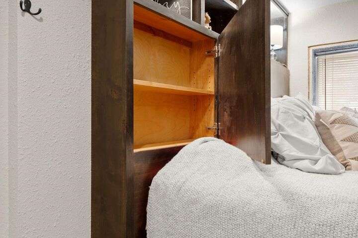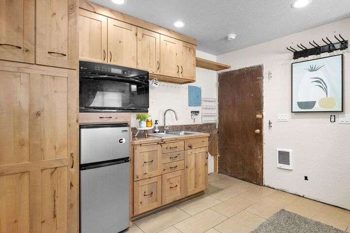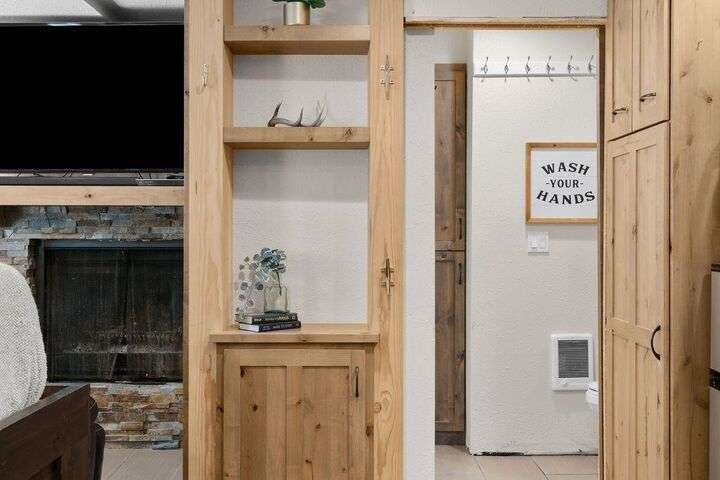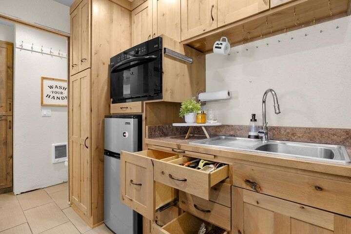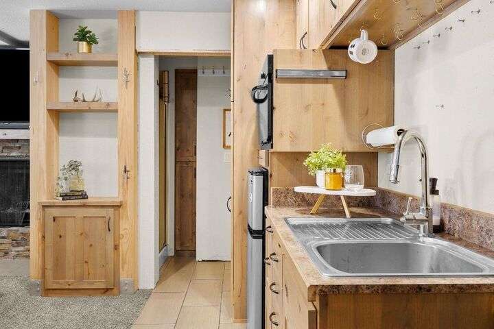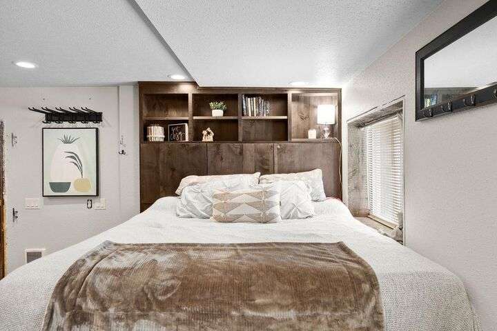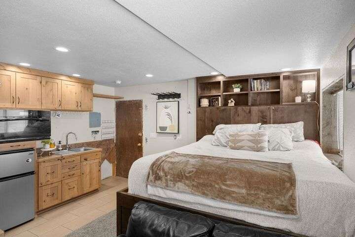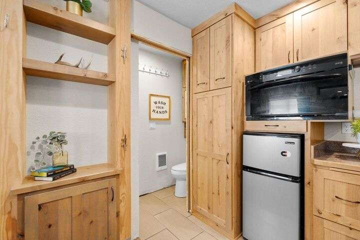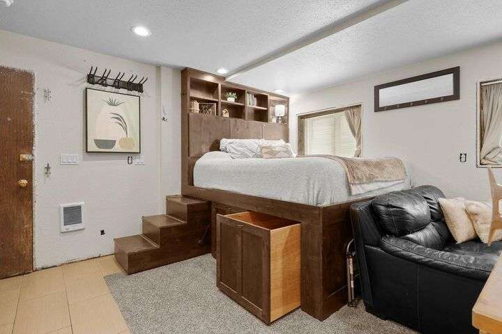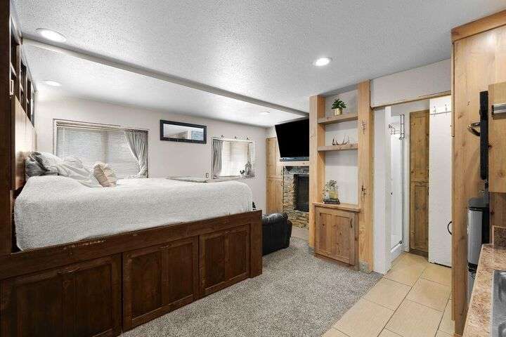 This studio condo is a space-saving oasis with clever multi-functional storage solutions! From a raised king-size bed that converts to endless storage space to the fold-out countertop, every inch of this condo is maximized for efficiency and style. Custom cabinets and trapdoors in some areas top off this unique space; a few lockable cabinets are also perfect for renting. Two large windows bring plenty of natural light, creating a warm and inviting atmosphere. Seller competing the trim and baseboard before closing. The rec center has access to a pool, hot tub, and sauna. The wax room and laundry are located in the building. It is just minutes from both lodges, and free shuttle services are available during ski season for easy access. In the summer, the mountain offers hiking, biking, picking huckleberries, and countless other activities. Don't miss this opportunity to own a private sanctuary! Owner financing available