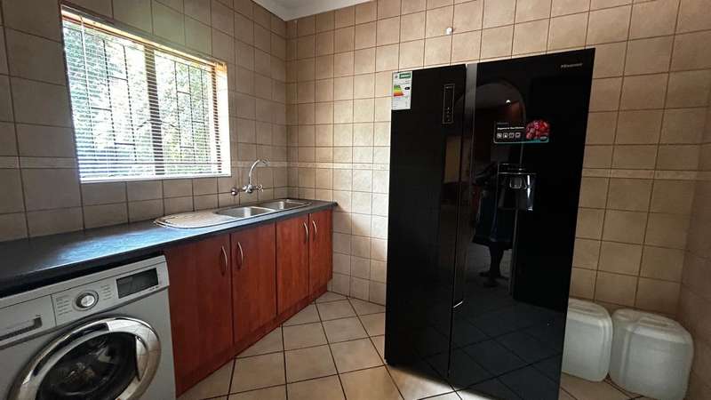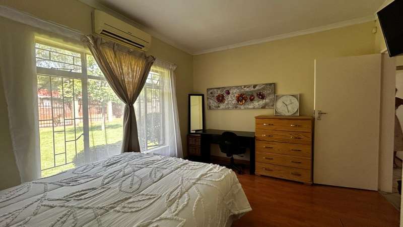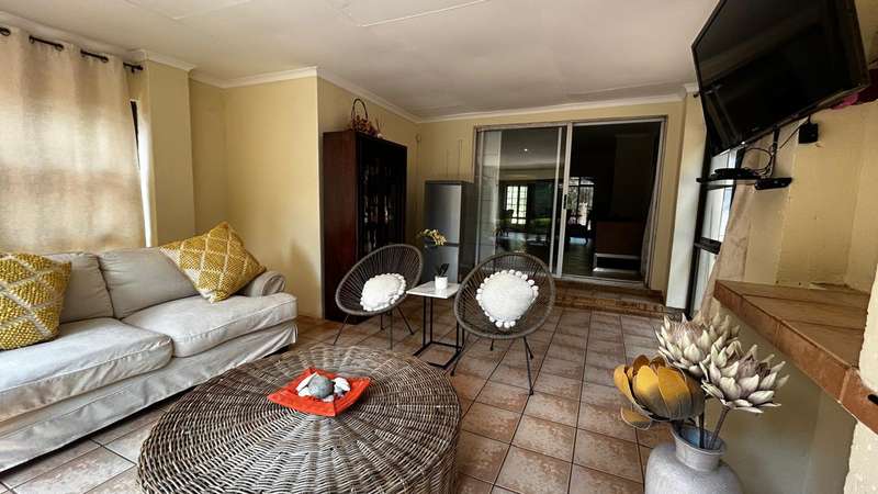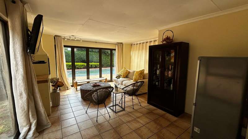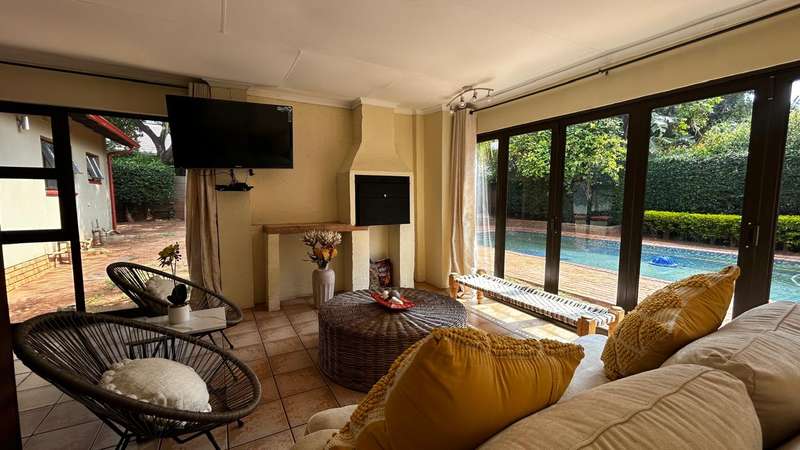 Stunning 3-bedroom home offering luxurious living! Features include 2 spacious full bathrooms, open-plan dining and lounge areas, and a sleek kitchen with scullery. Entertain effortlessly from the covered patio, overlooking the expansive yard and sparkling swimming pool. Enjoy endless summer days lounging by the pool or hosting unforgettable gatherings. Additional features include a double garage, providing ample parking and storage. Perfect for families or those seeking a tranquil retreat, this beautiful home offers the ultimate lifestyle experience.