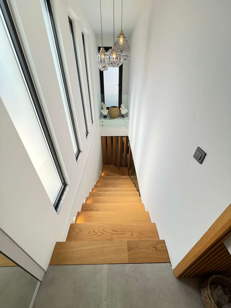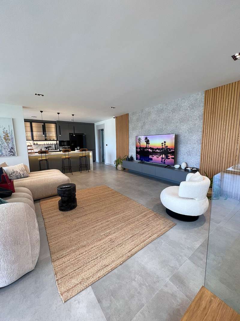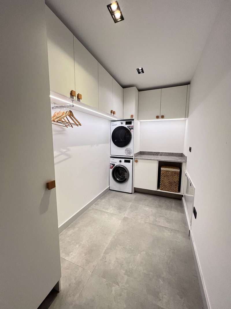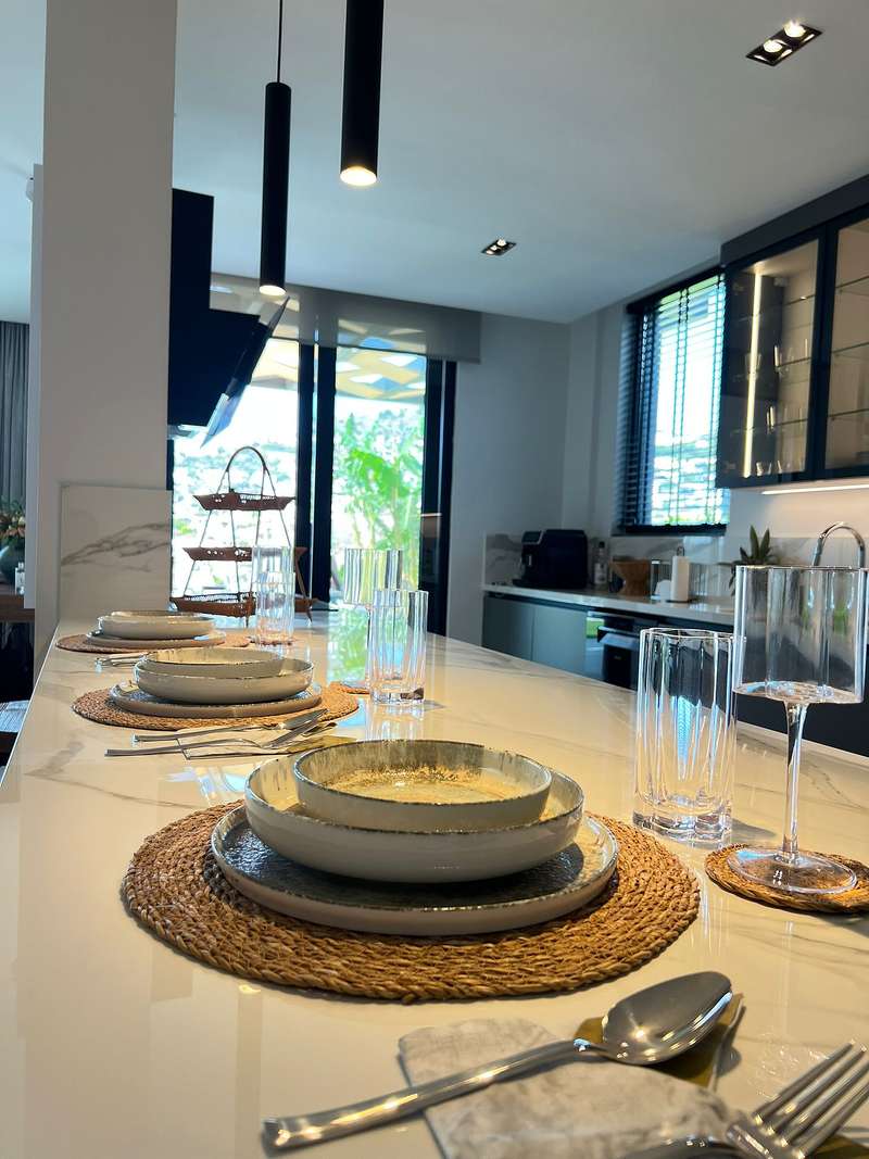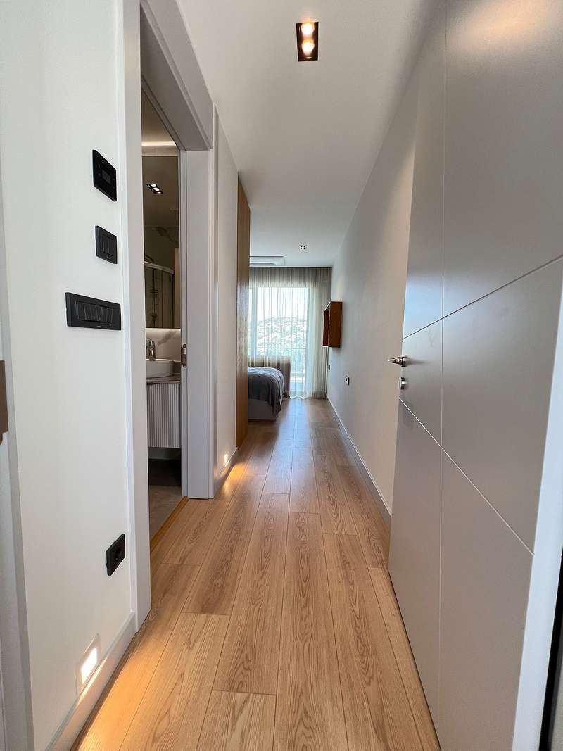 The villas feature 5 bedrooms, a living room, an open-plan kitchen, and 5 bathrooms. These detached villas with partial sea views come equipped with a built-in kitchen set, underfloor heating, and a central VRF heating and cooling system. They are constructed with top-quality materials and exceptional craftsmanship.