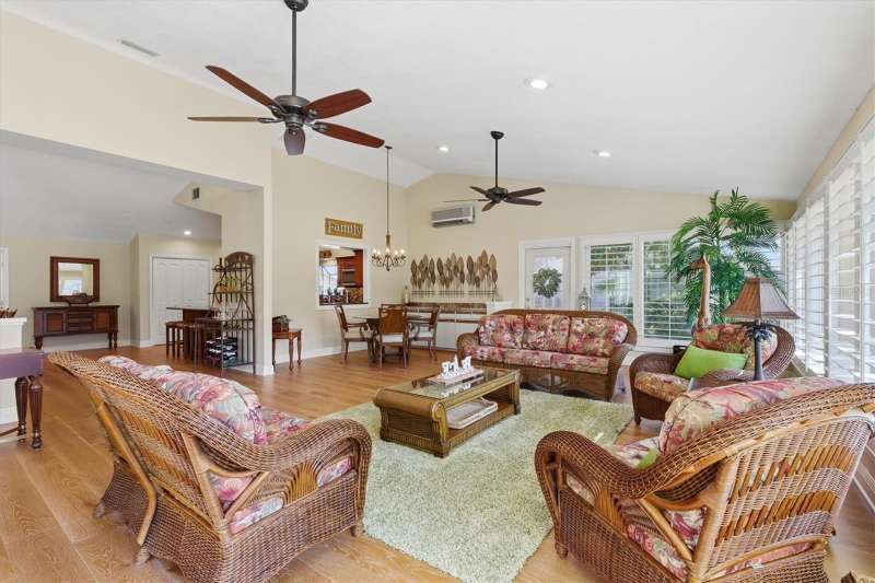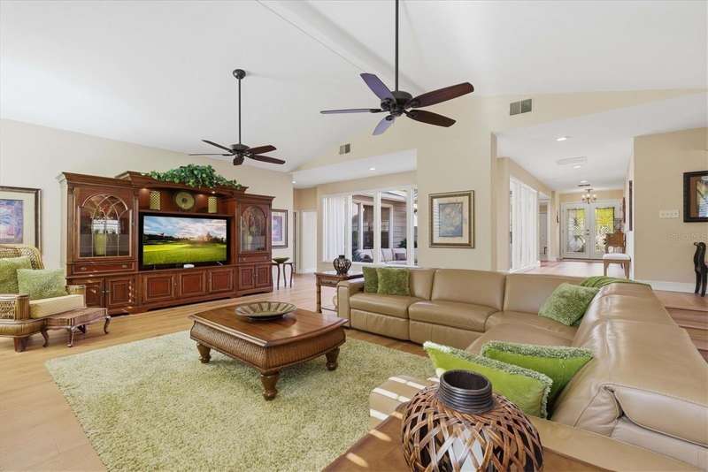 Welcome to your dream single-story villa in Cypress Run-a Premiere Gated Golf Community! This stunning, move-in-ready 3-bedroom,2.5-bath home spans over 3,100 sq ft of bright, open living. As soon as you step inside, you’re greeted by gorgeous wood flooring flow through all main living areas, tons of natural light, and a cozy wood-burning fireplace that anchors the spacious living room with soaring ceilings. The heart of the home is the beautiful kitchen featuring rich wood cabinetry, granite counters, a large island and counter seating (perfect for keeping the chef company with a glass of wine), stainless steel appliances, and plenty of counter space. Open to both the semi-formal dining area and the living room, it’s made for entertaining. Just beyond is the spectacular Florida room with panoramic golf course views—an idyllic spot for morning coffee, reading, or simply soaking in the serene backdrop. The tucked-away guest bedroom enjoys privacy and an adjacent en-suite bath, while the flexible second bedroom currently serves as a handsome office. Retreat to the spacious primary suite with tray ceiling, dual granite vanities, and peaceful golf course views of its own. This meticulously maintained villa which passed a 4 Point Inspection for Roof-Plumbing-AC and Electric with flying colors in the Spring offers Upgraded Flooring throughout, Water Heater 2022, AC 2024 and so much more. Move-in Ready! Enjoy resort-style living with a beautiful community with 24/7 guarded entrance, clubhouse (outstanding chef and bar), golf course, driving range, tennis courts, and an exclusive villa-owner pool. Perfectly located just minutes from shopping, grocery stores, and restaurants, 15 minutes to pristine Tarpon Springs beaches (Sunset Beach & Fred Howard Park), and under 30 minutes to Tampa International Airport. Some furnishings may be available—truly turn-key! Don’t miss this rare combination of luxury, comfort, and an unbeatable location. Schedule your private showing today!