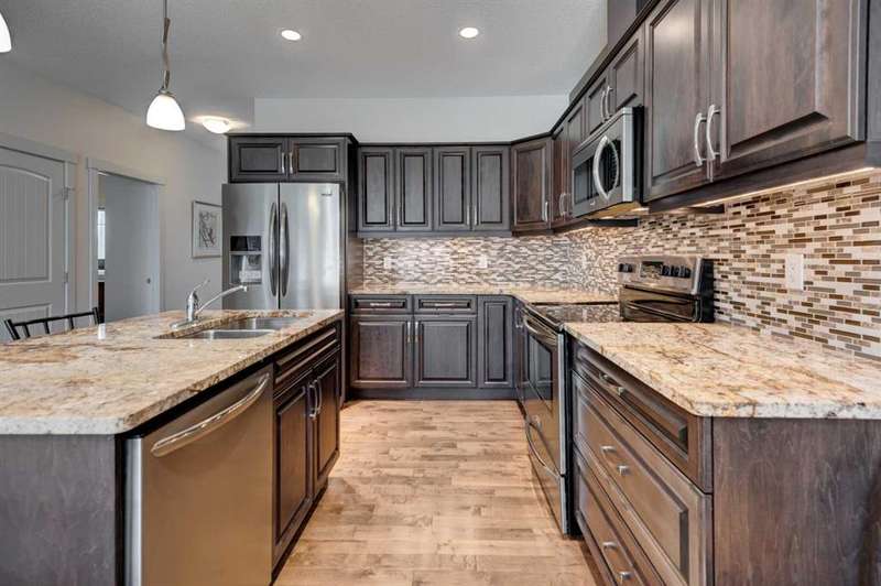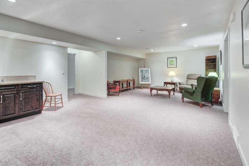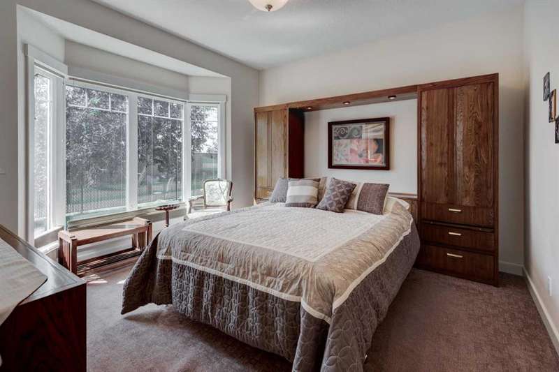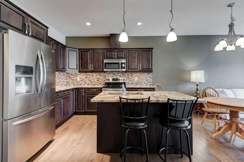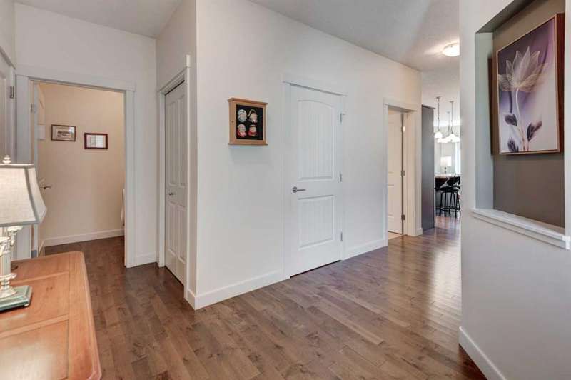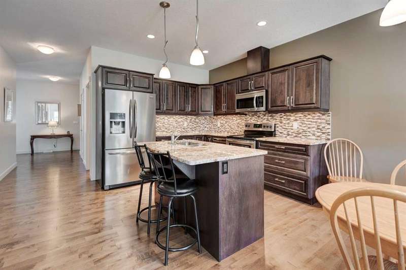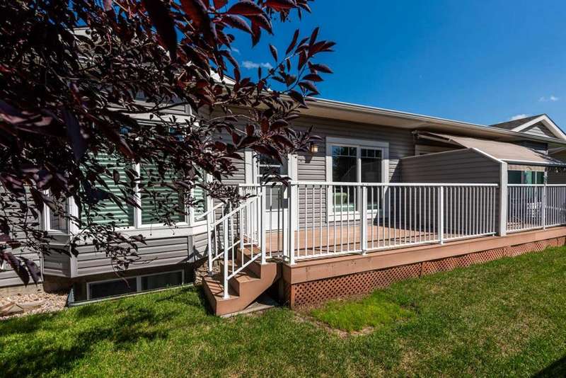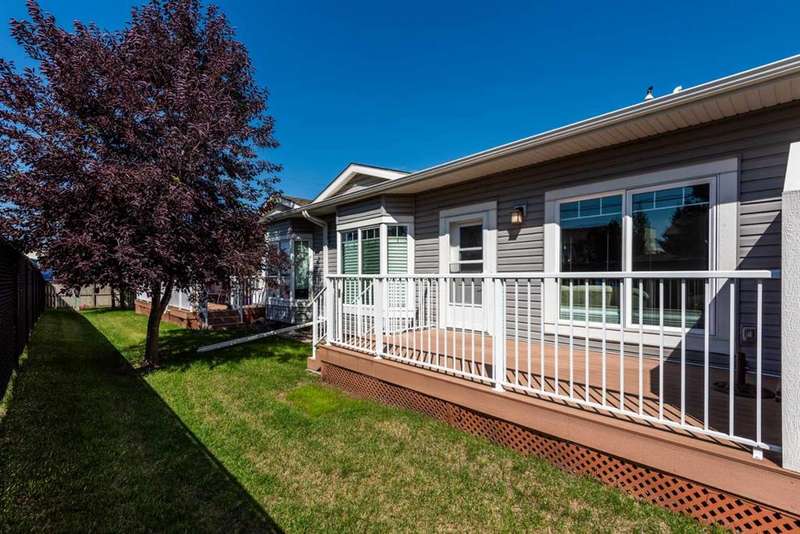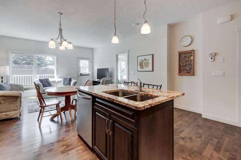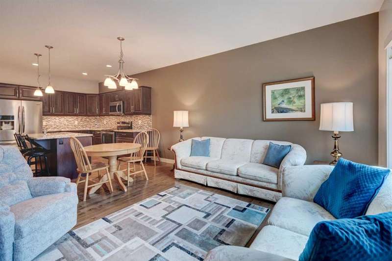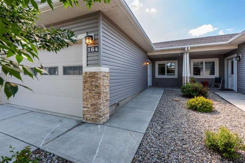 Beautifully maintained fully developed VILLA in Sagewood Adult Living (55+...ask your Realtor® for details) community in Strathmore is now available for a quick possession. This former SHOWHOME is fully upgraded and features 9 ft ceilings, wide hallways, granite countertops, throughout the main level, hardwood floors, copious kitchen cabinetry with soft close cupboards and drawers, under cabinet lighting and stainless steel appliances. The floorplan is open concept with a West exposure from the living room. The primary suite presents luxuriously with a large bay window, enough space for a king size bed and dressers and accompanied by a walk in closet. The en suite has his and her sinks, lots of storage in the vanity and a full sized shower. The main level conveniences extend to include a 3 piece guest bathroom, laundry, and a second bedroom or flex room, as it can also be used as a dining room, den or tv room. The lower level contains another bedroom, additional full bathroom, spacious family room with games table area and a wet bar. Storage? There is more than ample storage! Find space here to add a hobby room! There is parking for you in the double attached garage and guest parking a few doors down. The neighbors are wonderful and welcome social gatherings. There are ample walking paths, pickle ball courts, indoor swimming, shopping, hospital, volunteer opportunities and many community activities in the Town of Strathmore. Many families rely on extended members to help with childcare. Perhaps your grandchildren attend one of the schools that are in walking distance... Call your Realtor® to view this luxury villa!