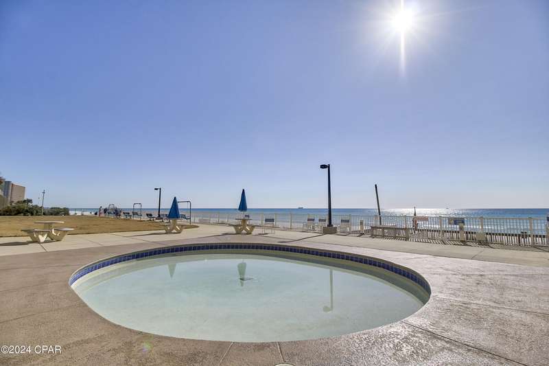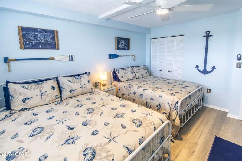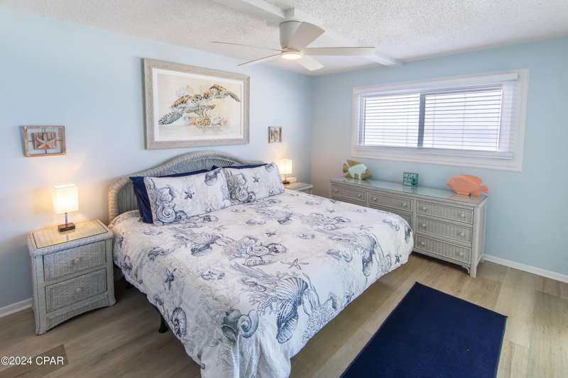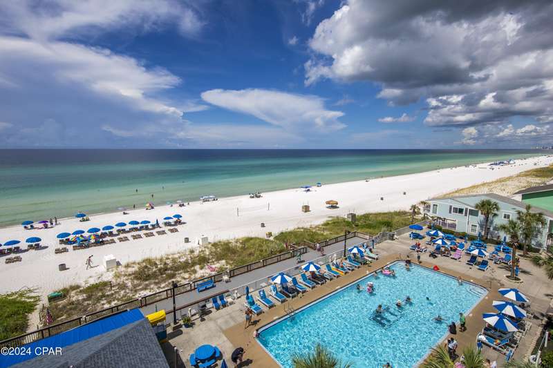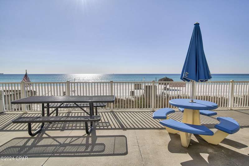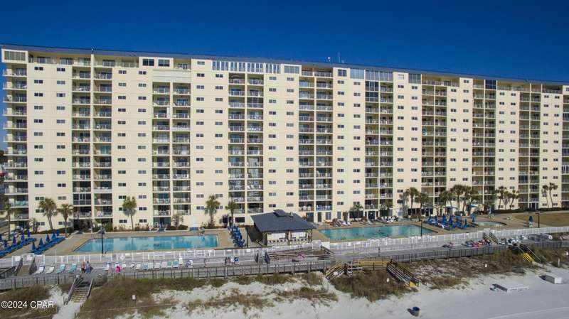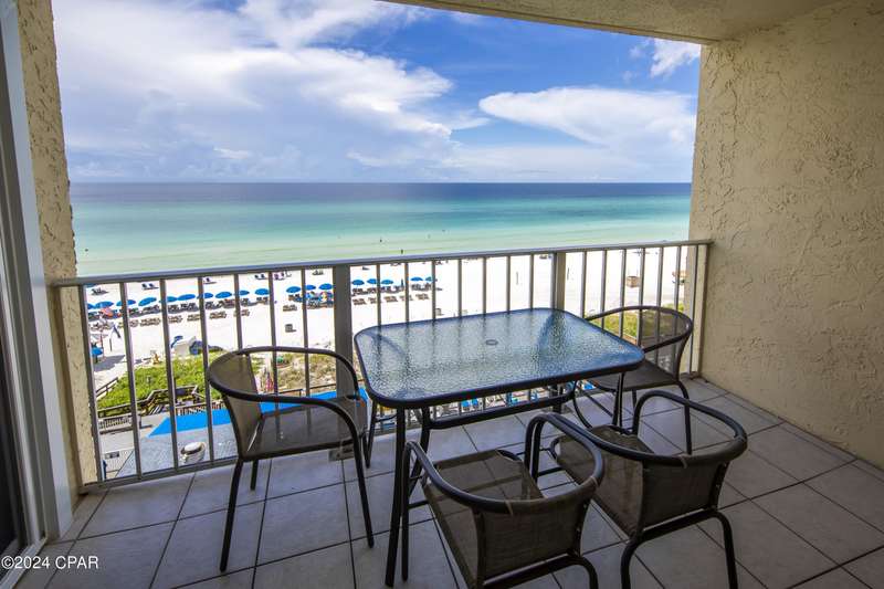 Welcome to Regency Towers Condo unit 611, a captivating gem in Panama City Beach. This immaculate 2-bedroom, 2-bath unit is a turnkey vacation rental, perfect for investors and beach lovers alike. Professionally renovated this condo exudes coastal charm including new sliding glass doors in the living room and master bedroom, granite countertops and LVP flooring. The coastal decor and beachy furnishings further enhance the beachside ambiance, providing a true retreat for vacationers. Situated on the coveted 6th floor, this unit offers stunning beachfront views from the living room and master bedroom. The gated security of Regency Towers ensures privacy and tranquility Amenities include two large pools, a tiki bar, hot tub, tennis courts, shuffleboard, pool room, and exercise room.