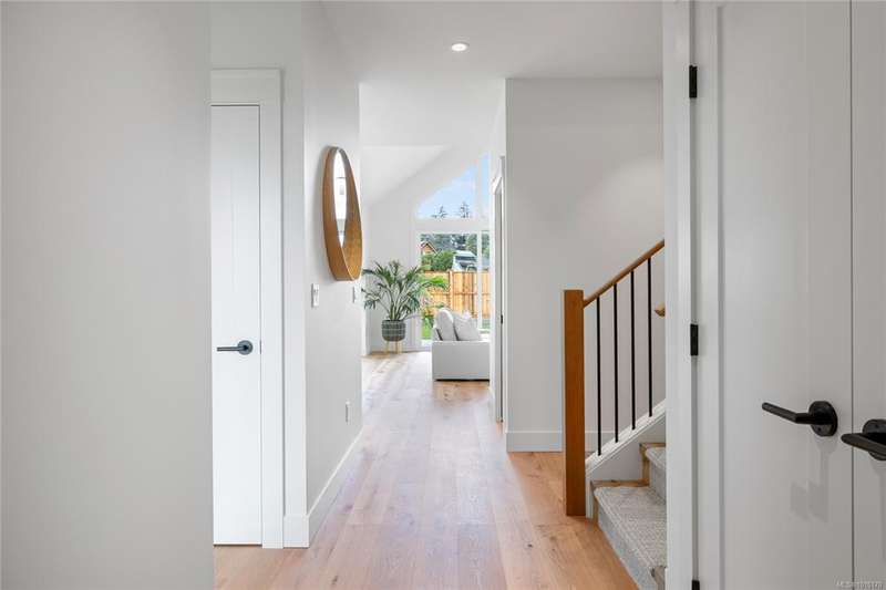 Builder Open House Weekdays 11-3 Ocean View and at the end of one of Parksville's most coveted streets sits this lovely new home built by EcoWest Projects. Steps to the expansive, sandy beach with south-facing, fenced back yard, you're going to love the detail and care put into this home. The bright kitchen, dining and living rooms are surrounded by sprawling windows and spill out onto covered concrete deck with hot tub,BBQ, gas F/P hookup. Kitchen boasts a Fisher Paykel app. package and walk-in pantry to keep everything neat and tidy. Cozy up by the gas fireplace with built in cabinetry. The primary bedroom also spills out to the back deck inviting you to bring your morning coffee or hop in the hot tub before bed. Add't bedroom also on main floor. The upstairs takes the cake with views of breathtaking sandy beaches. With a full bathroom and walk in closet, this space could be used as a primary bedroom, guest bedroom, bonus room! Full irrig. landscaped. PlusGST