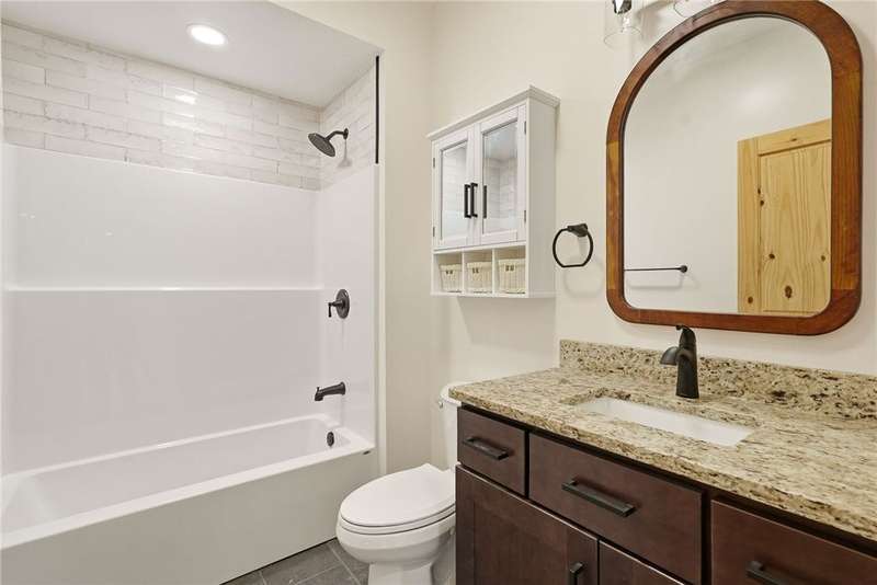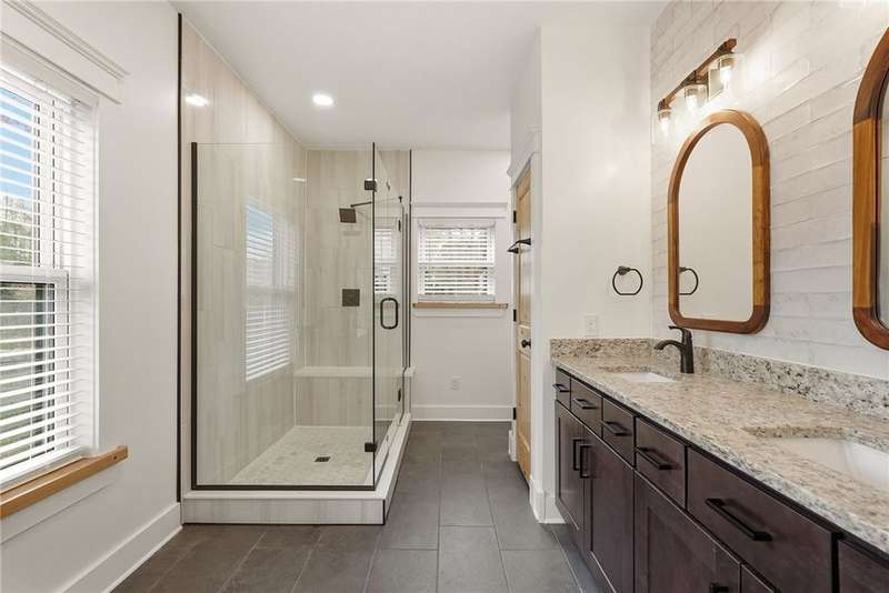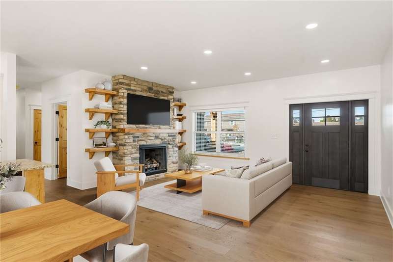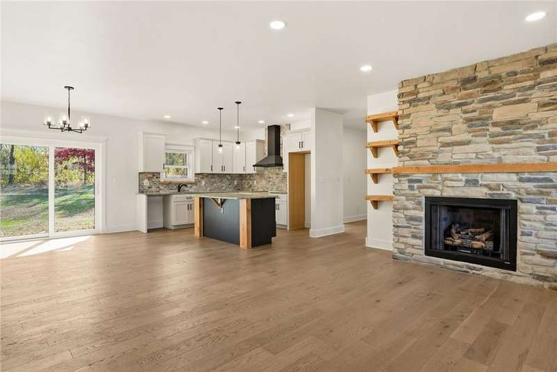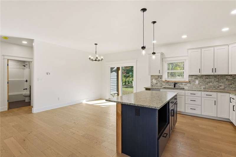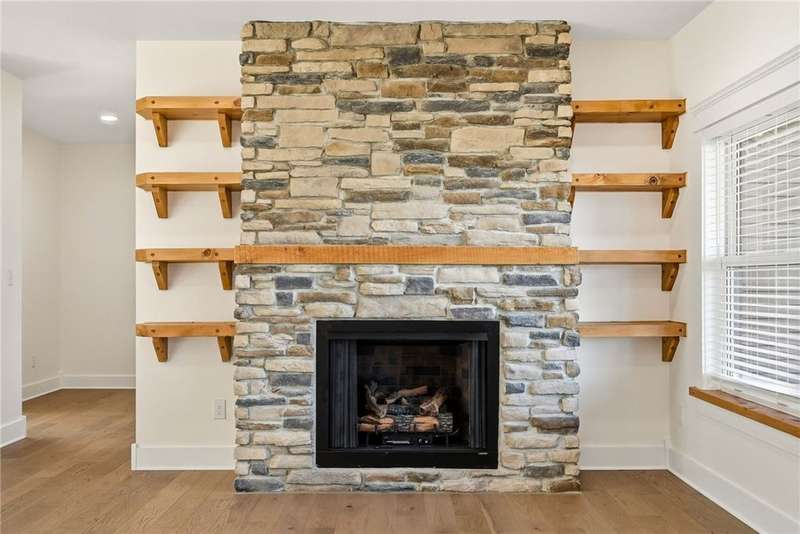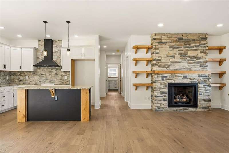 Custom new construction showcasing exceptional craftsmanship throughout. The stone and timber-accented porch with tongue-and-groove ceiling create a warm, elevated welcome. Inside, 9' ceilings and hardwood floors enhance the open layout. The kitchen features soft-close cabinetry, leathered granite, and a walk-in pantry with added counter space and storage. The primary suite includes a custom walk-in closet and glass-enclosed tiled shower. Enjoy gas radiant in-floor heat, central air, and a heated garage with access to a 12'x40' unfinished attic (approx. 500 sq ft) for storage or future expansion. Outdoor features include exposed aggregate walkways, covered porch, decorative retaining walls, French drains, and a thoughtfully landscaped yard with arborvitae and flowering trees for privacy. Quality, comfort, and timeless design come together in this truly refined home.