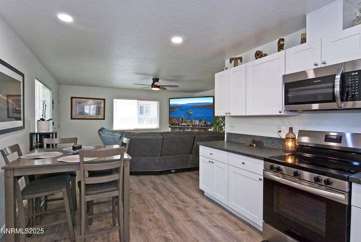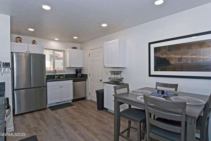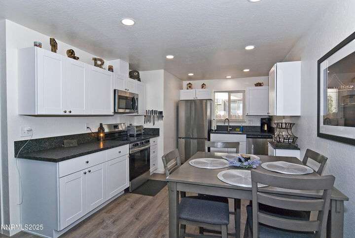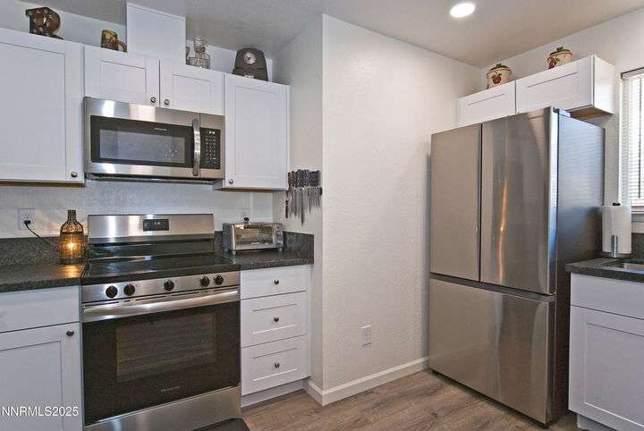 This beautifully updated 2-bedroom, 2-bath home offers 960 sq ft of thoughtfully designed living space — perfect for first-time homebuyers or those looking to downsize without sacrificing comfort. Step inside to find brand new luxury vinyl plank flooring, new LED lighting throughout, and a bright, open layout. The kitchen shines with new cabinets, granite countertops, and stainless steel appliances. Enjoy peace of mind with a new roof, new windows, and a newer furnace and A/C for year-round comfort. The primary suite features a walk-in closet and private slider access to a serene backyard with automatic drip/sprinkler system — ideal for relaxing or entertaining. A newer garage door for added peace of mind. Conveniently located in a quiet neighborhood near parks, schools, and shopping, this move-in ready home is a must-see!