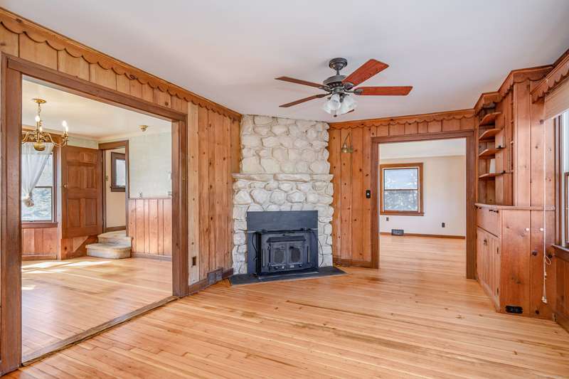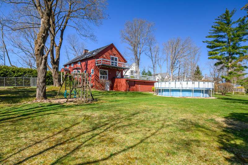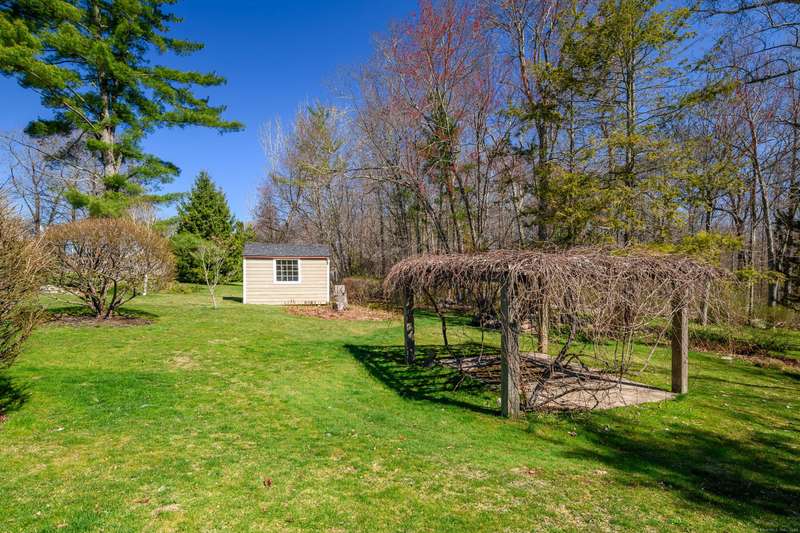 Embrace the essence of classic small town Bethel living in this century old country style home nestled on a private 2-acre lot which has the potential to be subdivided. Relax and unwind amongst specimen trees and shrubs, perennials, a private rock garden, an entertainment arbor for hosting gathering, play, or simply enjoy the fresh air. You enter the home from a new beautiful granite stone walkway onto a large deck above the two car garage. The spacious kitchen with recessed lighting is designed with functionality in mind, offering generous storage, a coffee nook and a lovely view of the backyard. In addition on the main floor there is an oversized living room with wood burning stove fireplace and newly refinished hardwood floors. The hardwood floors continue through a reading/relaxation room with another wood burning fireplace and original cabinetry. The dining room with its original built in corner hutch can seat twelve comfortably. The upper level has three spacious bedrooms, the pr