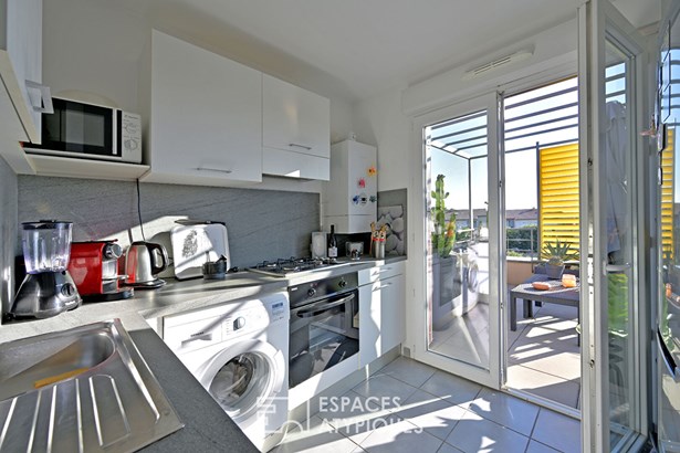 From the moment you step inside, the brightness catches the eye. The living room opens generously onto a 27 sqm terrace, a true outdoor extension of the lounge, where the Nimes sky can be admired at any time of the day.