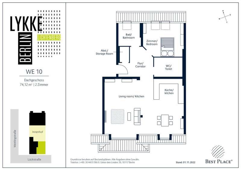 The house, built in 1919, convinces with its homely ambience and quiet garden courtyard. Due to its historic staircase railings and the discreet ornaments, the property just radiates with charm. The front house is separated from the back house by a well-maintained and quiet courtyard garden, here you can relax for a while from the stress of everyday life, for example, on benches. The large windows provide a bright living ambience. In the house there are twenty apartments and two commercial units. The apartments have two to five rooms and between approx. 45 m² to 150 m² of living space. The majority of the apartments are equipped with a balcony or terrace.