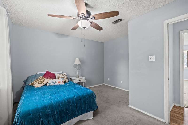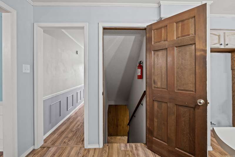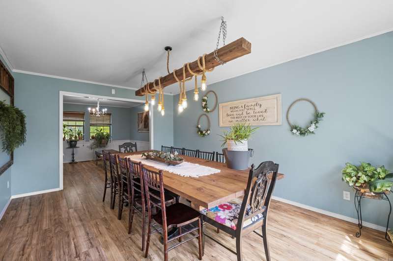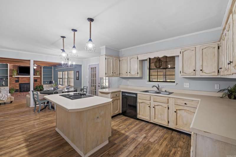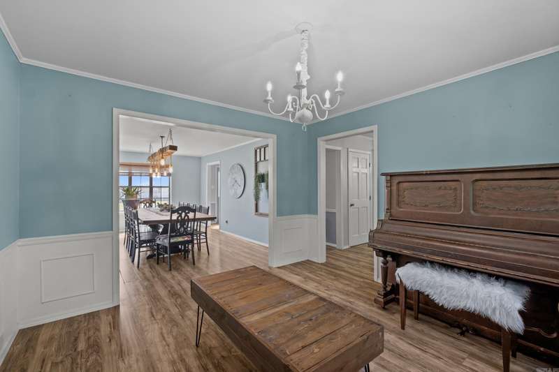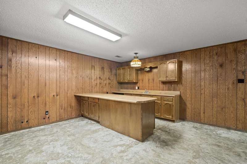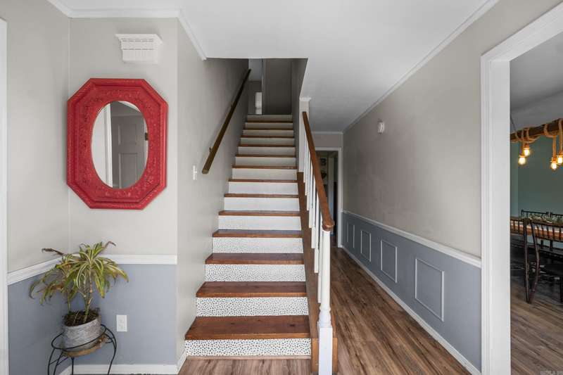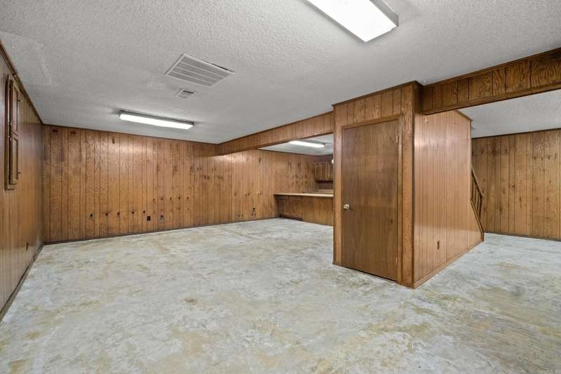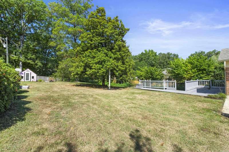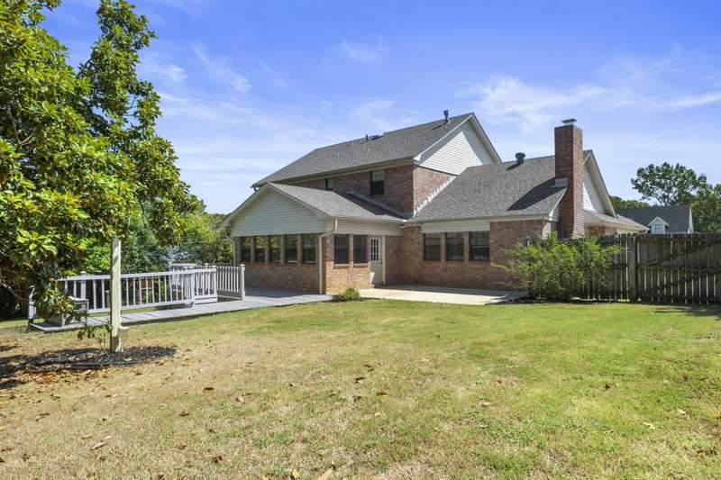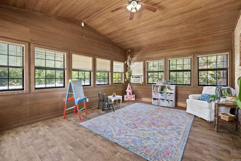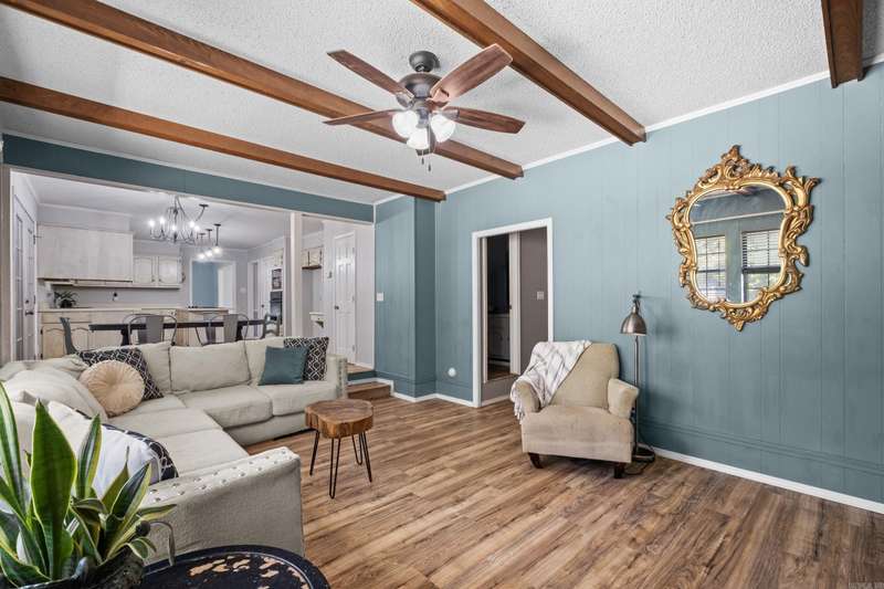 Welcome to this spacious 5-bedroom brick home featuring classic charm and modern updates. Inside, you'll find a warm living room with wood beamed ceilings, a cozy brick fireplace, and built-in shelving that creates a perfect gathering space. The home also includes a closed sunroom, ideal for year-round enjoyment, and a finished basement offering endless possibilities for entertainment or extra living space. Outside, the beautifully maintained yard and striking blue front door add curb appeal, while mature trees provide shade and privacy. This home combines comfort, character, and plenty of room to grow - ready for its next chapter.