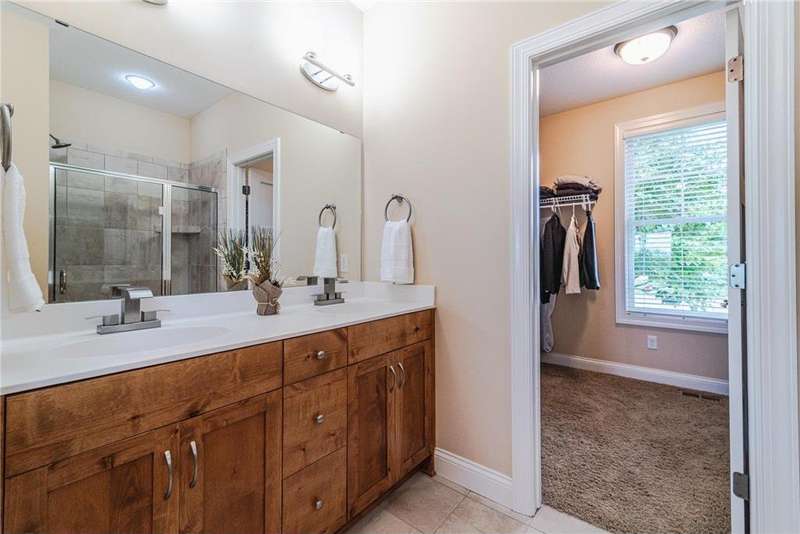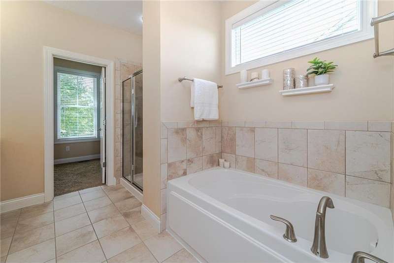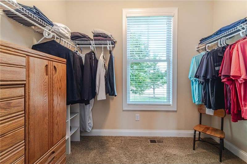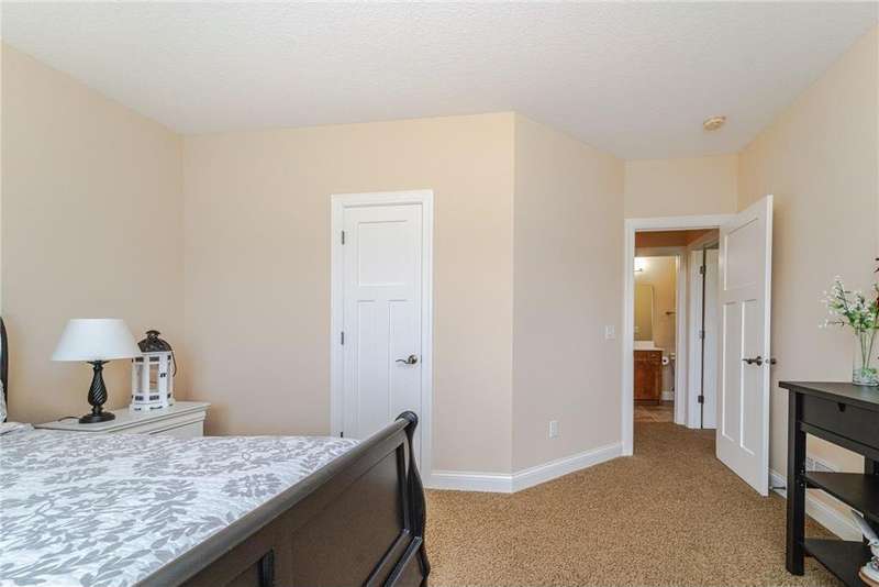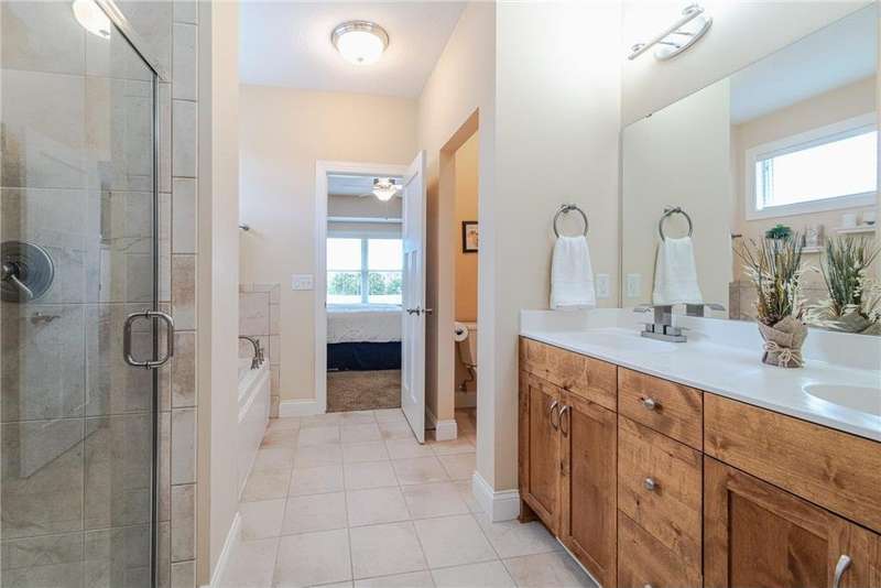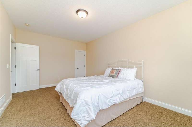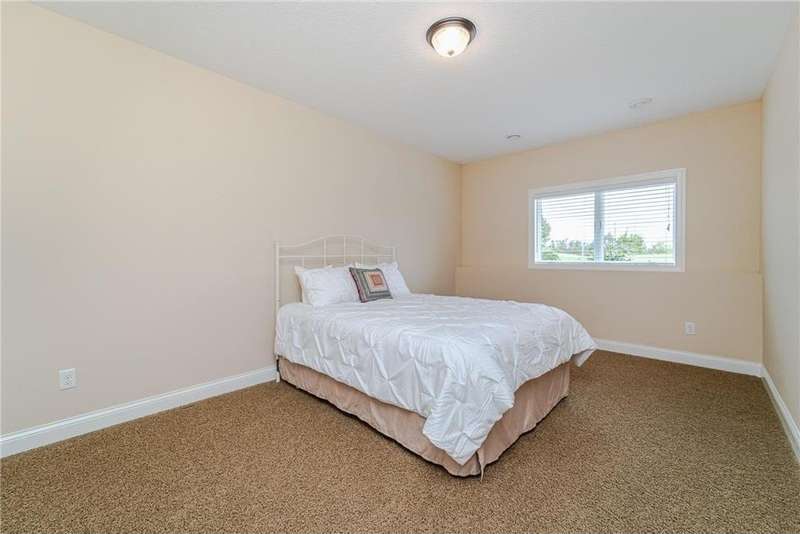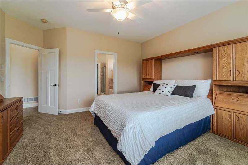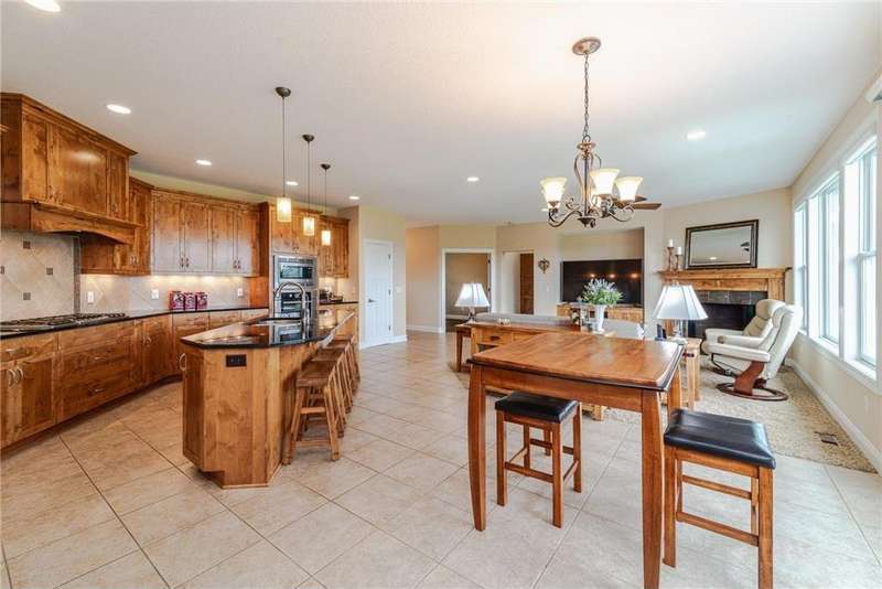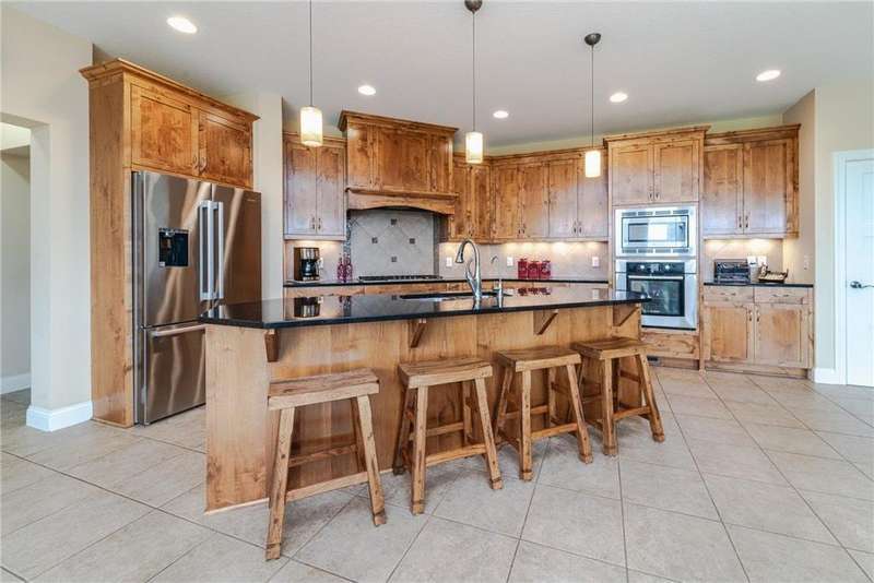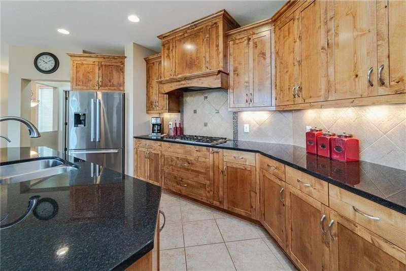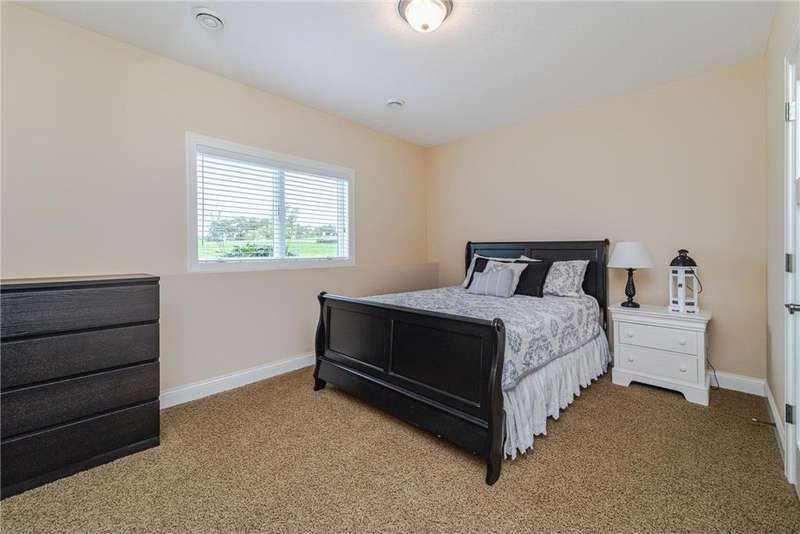 WALLS OF WINDOWS frame the view of the 12th fairway at BOULDER POINTE GOLF COURSE in this bright and spacious rambler custom-built by McDonald Construction. The expansive floor plan is bright and open, and oriented towards golf course views. The kitchen features custom, shaker style alder cabinetry with granite countertops and a suite of BOSCH stainless appliances including a wall oven, and a walk-in pantry. It opens to a spacious dining space and the family room with a gas fireplace and golf course views. The primary suite also overlooks the course and has a private adjoined bath with dual sinks and a walk-in closet. Downstairs you’ll find a spacious family room with a wet bar, two BRs and a 3/4 bath. Additional features include a main floor den with French doors, practical mudroom/laundry spaces, white 3-panel doors and trim, remote controlled living room blinds, and a composite deck. The beautiful exterior features board and batten details and stone-wrapped columns!