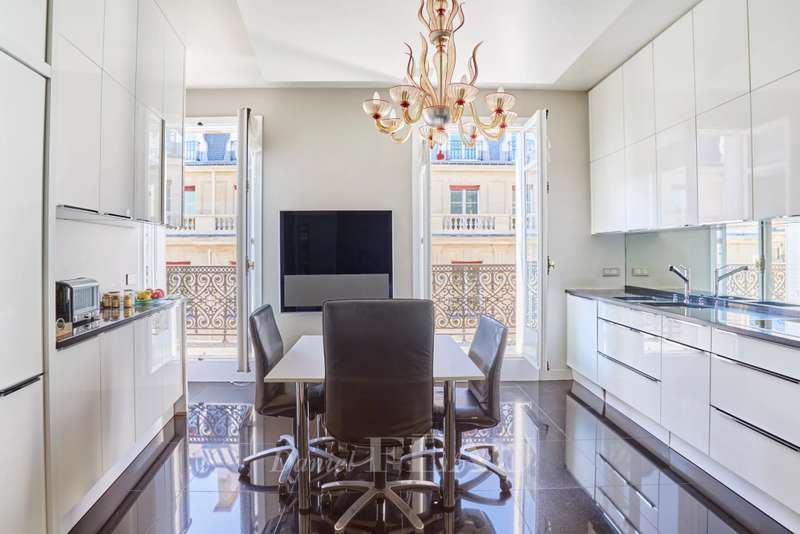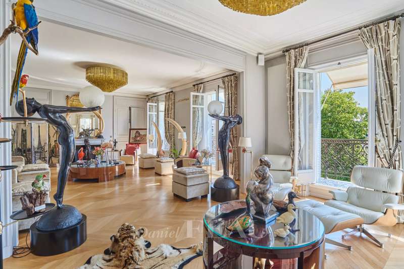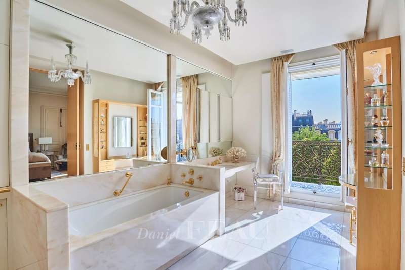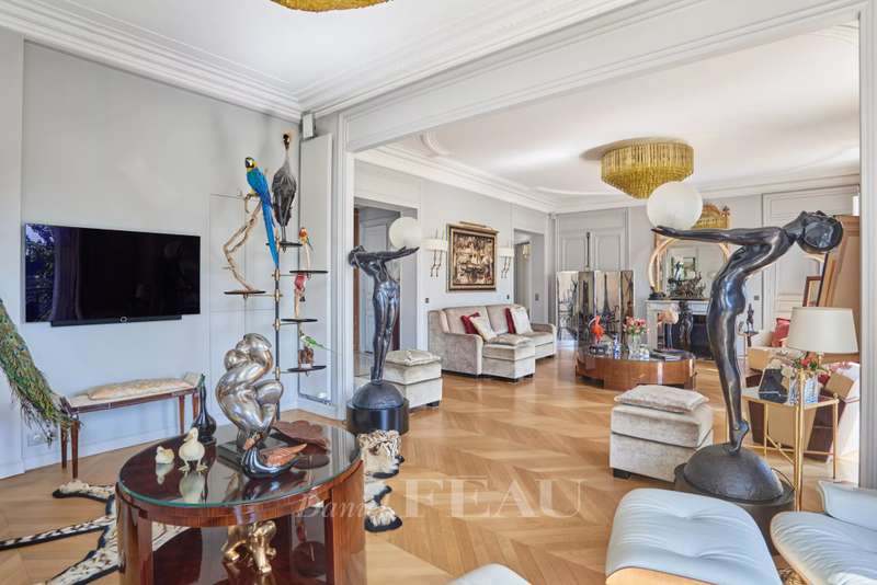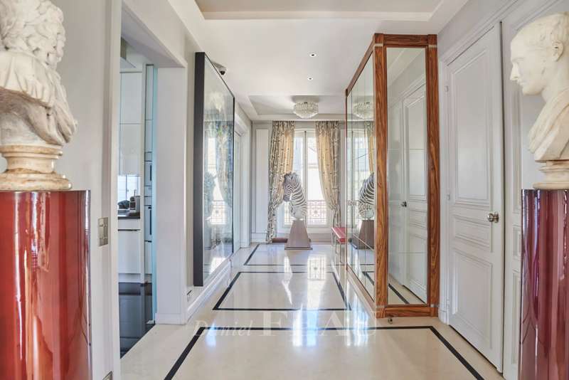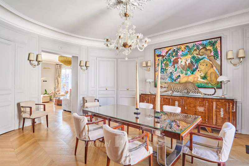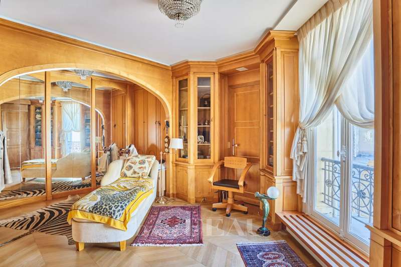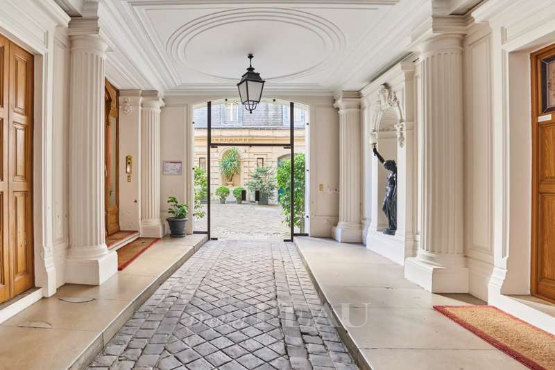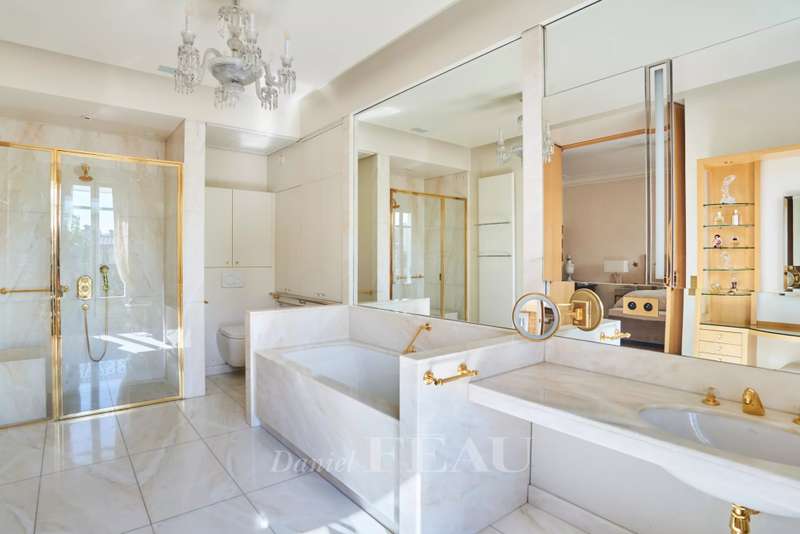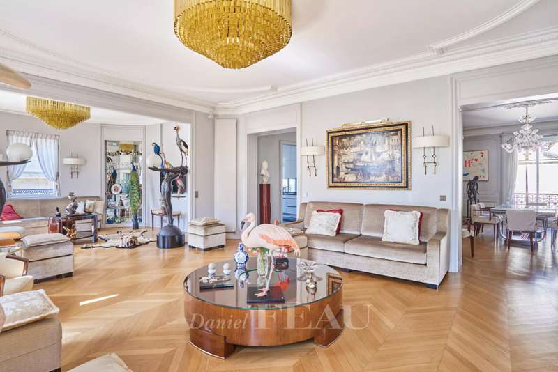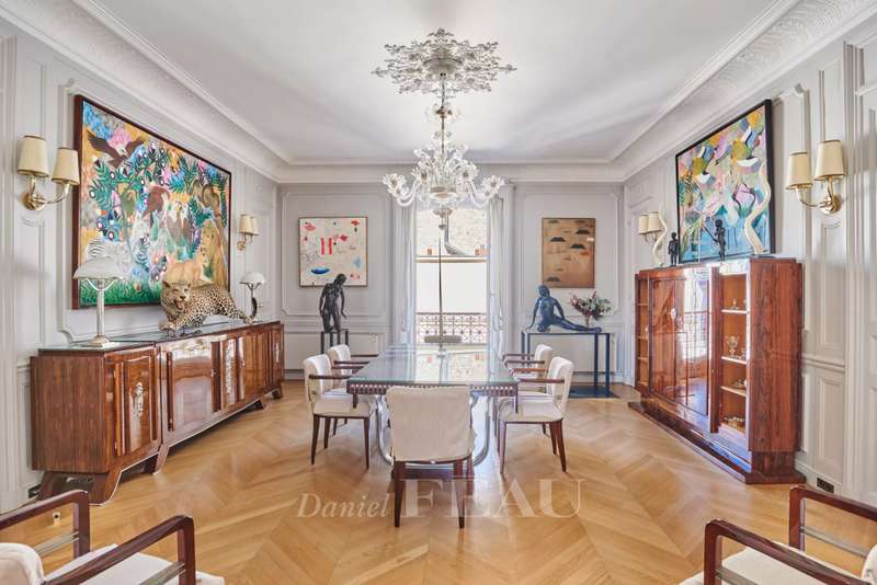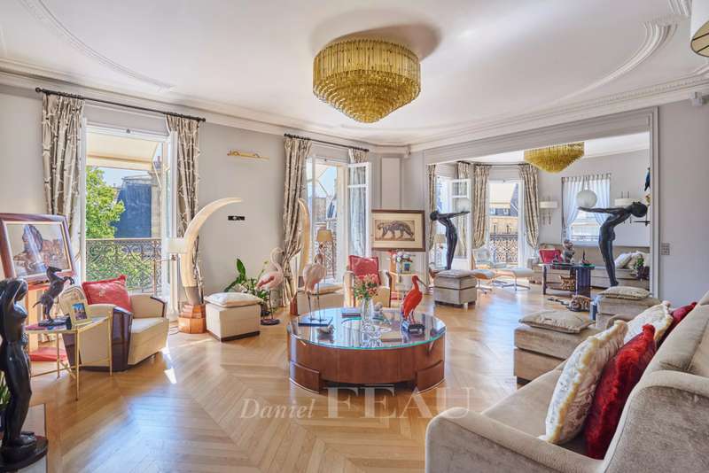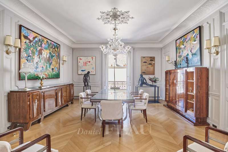 Saint Augustin neighbourhood, near the schools. This sunny corner apartment offering 315 sqm of living space in excellent condition is on the top two floors of a late 19th century freestone building with elegant common areas. Benefiting from a continuous balcony enjoying open views, it includes a 60 sqm double living/reception room, a 30 sqm dining room, a separate equipped kitchen, two spacious suites with bath/shower rooms and dressing rooms, a utility room and a little kitchen. A 4th bedroom would be possible. The main rooms are air conditioned. With a basement cellar and two maid’s bedrooms on the top floor.