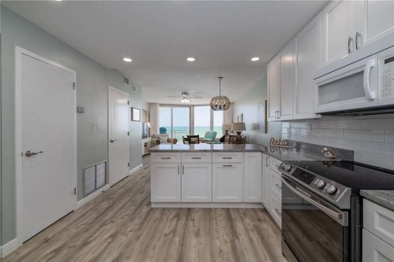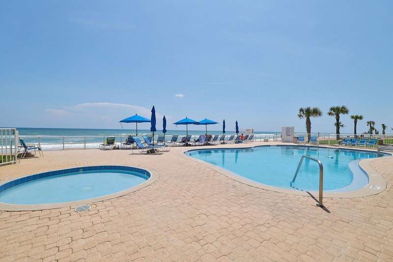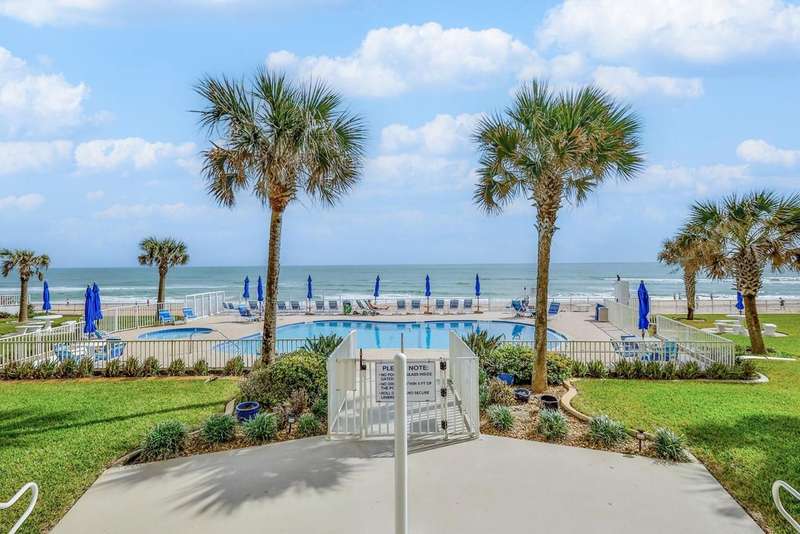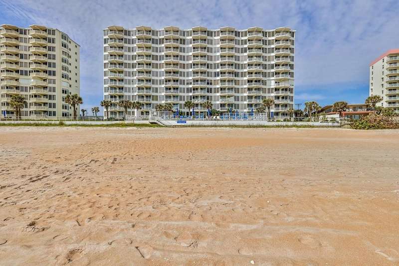 Under contract-accepting backup offers. Turn-Key direct ocean front beauty on no-drive beach. This unit has had a complete renovation and concrete restoration was completed on the building in '24. No assessments! Amazing ocean views from the stunning opened kitchen with granite counters, 42'' cabinets with soft-close drawers, recessed lighting, stainless fridge & range, Bosch dishwasher, and under-cabinet LED lighting. Luxury vinyl plank flooring (except carpet in 2nd bedroom), impact glass, light dimmers, marble window sills, and on-sight management. This unit comes beautifully furnished down to linens and dishes for your convenience. Balconies & railings recently redone as well. Building offers a community pool and club room. Located close to shopping and restaurants. All information recorded in the MLS is intended to be accurate, but cannot be guaranteed