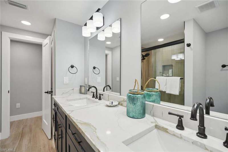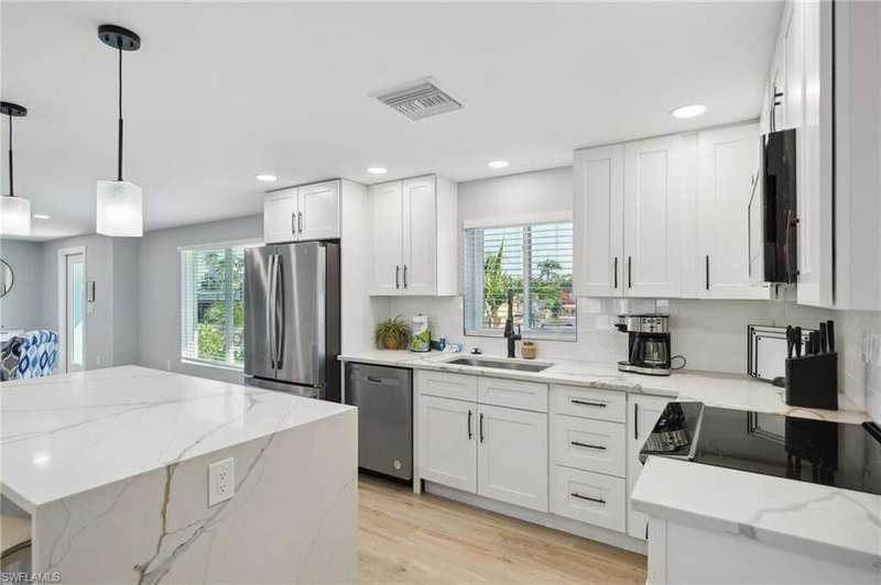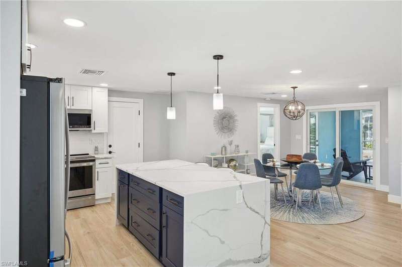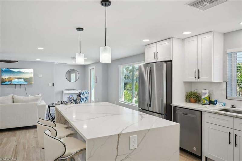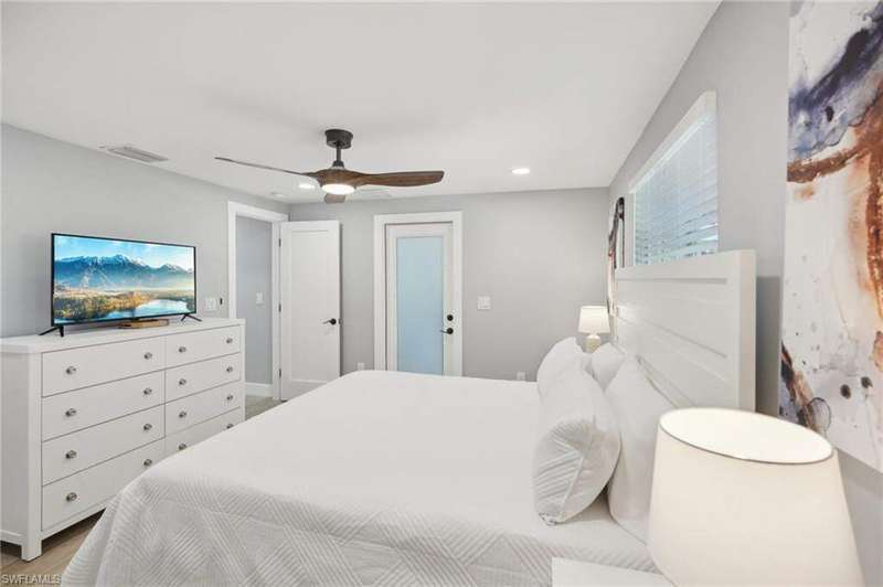 Priced for a quick sale! Amazing views of the intersecting canals from this 3/2 pool home on Ft Myers Beach. No stone was left unturned in the remodel of this gorgeous home only steps to the white sands of the Gulf. The interior of this home features the desired split floor plan, wood plank porcelain tile, custom tiled baths, and again, amazing views! Everything is new from the ground up, including electrical, AC, plumbing, roof and so much more! The open kitchen has bright white shaker two toned cabinetry with stunning quartz counters custom backsplash and is perfect for entertaining! Relax outside by your heated pool and enjoy the fishing, wildlife and serenity. Being sold turnkey furnished, you can begin enjoying the Florida lifestyle today or the benefits of the perfect rental investment.