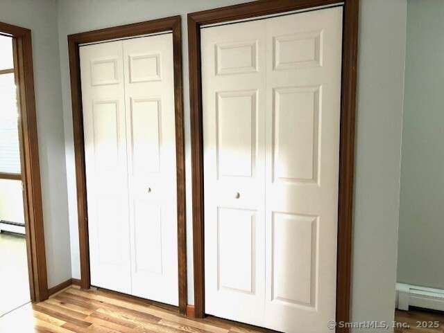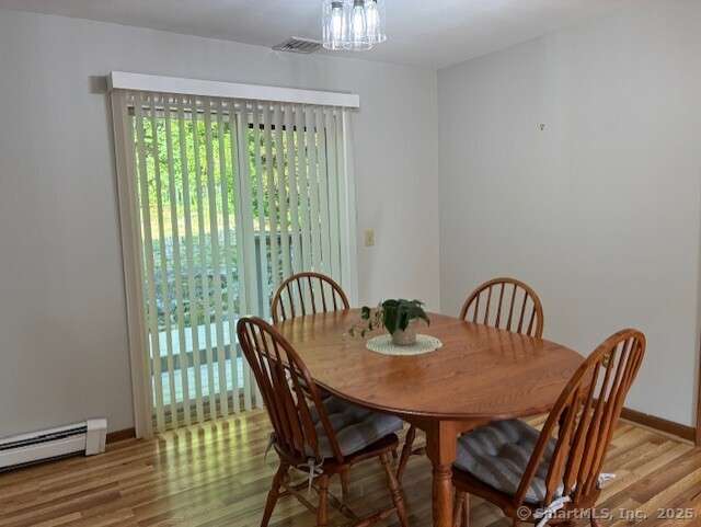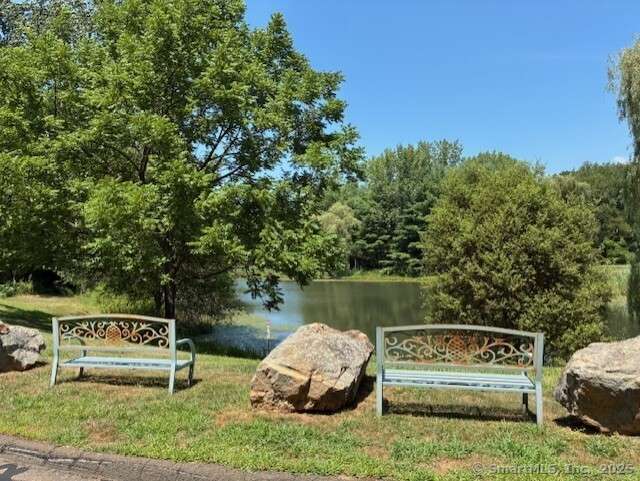 CITY WATER, NATURAL GAS, CENTRAL AIR, WATER VIEW! Airy and Bright unit with sliders off spacious dining room to a private extra large deck. Great views of the pond from LR. This is a wonderful free-standing unit with a 2 car attached garage. Recently painted throughout with new laminate wood flooring, and upgraded appliances. First floor primary bedroom with walk in closet and full bath. Larger second bedroom on upper level also has spacious storage, full bath and laundry. A first floor laundry is also possible, if preferred. Close to Town Center, Highway access, shopping, and restaurants, and schools, this complex is a tucked away haven from the hectic world.