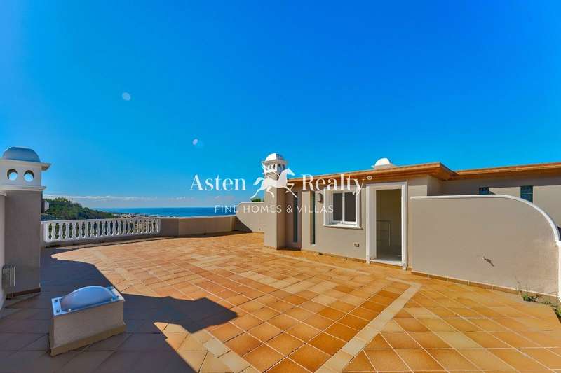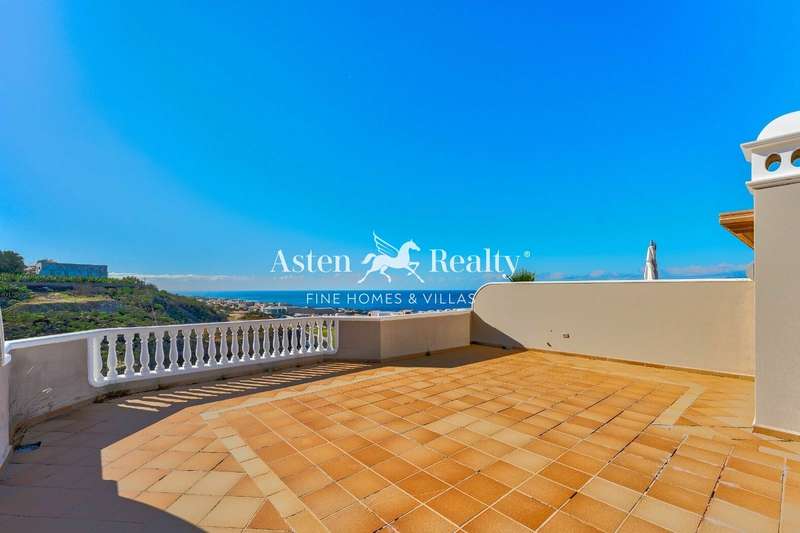 This stunning 2-bedroom penthouse on the top floor of the resort with a huge L shaped roof terrace takes advantage of the morning sun as well as having sun during the rest of the day and enjoying views towards La Gomera and sunsets in the evening. There are also views over the town and the swimming pool. The apartment is 94 m2 with the terraces measuring 125 m2.