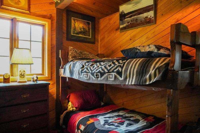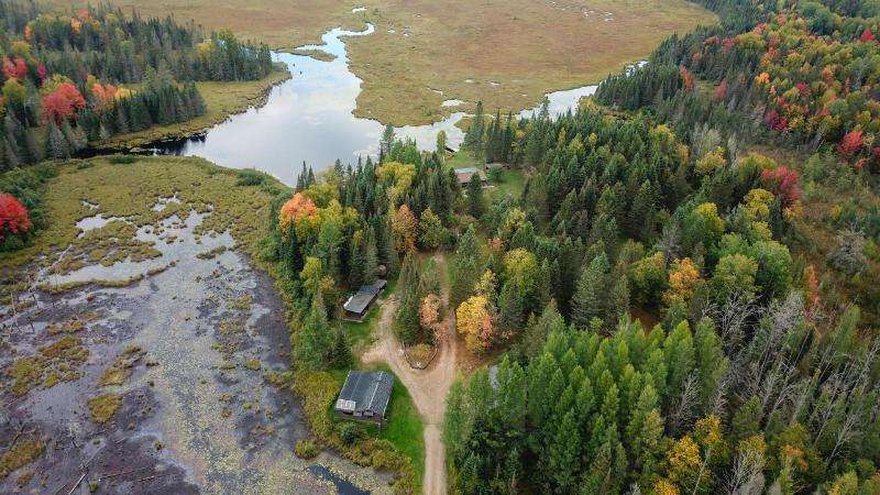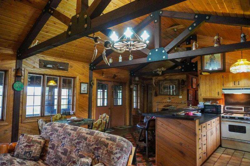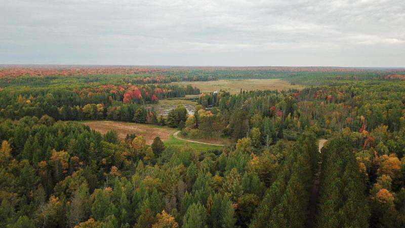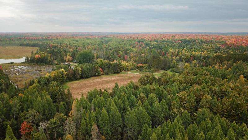 A true sportsman's haven, 2 bedroom, 1 bath year-round hunting cabin on 78+ acres adjacent to thousands of acres of undeveloped land in the Chequamegon-Nicolet National Forest. The cabin's interior offers an open concept kitchen, dining, & living room with a wood-burning fireplace, a card table for enjoying cigars, swapping stories, and clinking glasses long into the evening and a screened porch overlooking the pond. There is a 4-car detached garage, additional workshop/storage garage, and a utility building w/ LP generator. The southern parcel is primarily wooded w/ open food plot space & a creek running through it, while the northern parcel provides the cabin, outbuildings, a marshy area w/ duck houses, and a larger pond w/ permanent pier & an established duck blind. Included in the offering are a tractor w/ attachments, UTV (2), riding lawn mower, generator, snowmobile, HD utility trailer, pier, and all appliances & most furnishings. Purchase as a group retreat or your own estate!