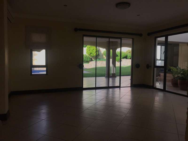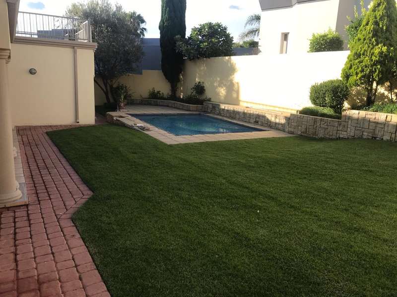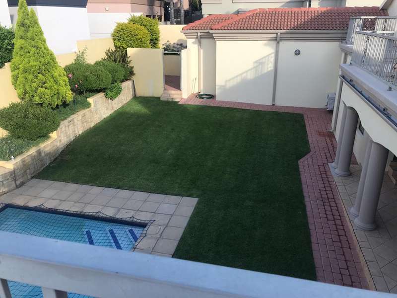 On entry into this grand home is the entrance hall with a large chandelier and a window over looking the family room. There is a guest loo to the left. To the right is the dining room with an elegant court yard. There is an entertainers kitchen with granite tops. The central island has the prep bowel. There is a large corner corner cupboard used as the pantry. The scullery has space for three appliances and leads outside to the drying area. There is another family room leading off the kitchen. This family room has a fireplace. These family rooms all lead onto the covered veranda and into the garden with a pool. There are two bedrooms downstairs that share a full bathroom. There is one study next door to the bedroom. At the other end of the passage is a bedroom en suite with a full bathroom. The bedrooms and office all have their own air conditioner. Upstairs has 4 bedrooms and two linen cupboards. The main en suite has walk in cupboards area and a voluptuous bathroom. The main leads onto the balcony, which it shares with another bedroom en suite. There other two bedrooms share a full bathroom and one of the bedrooms lead onto a separate balcony. All these rooms have their own air conditioner. All the cupboards have plush carpets. This house also has two staff rooms with a bathroom and kitchenette There are 4 garages and plenty of off road parking. Thia house is located close to the Main gate so has very easy access to The valley shopping center and Dainfern Square which has Pick n Pay, Woolies, Clicks, Dischem, Virgin Active plus many great restaurants. The new Chartwell corner is situated on the other side of the estate. It has a big Checkers, Woolies food, Pick n Pay clothing, Dis-chem and many small restaurans and take aways This stunning home is situated in the sought after and highly secure Dainfern Golf Estate which has lots of activities to offer. There is a clubhouse with a restaurant nestled among big mature trees overlooking the 18th hole of the golf course which has a river flowing through. There are kids play areas, soccer fields, squash courts, and majestic nature trails. Dainfern Golf Estate has many great private schools close by, including Dainfern College, Broadacres Academy, Heron Bridge and Helderfontein College. Many children in the area also go to the American International School.