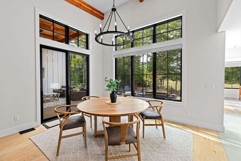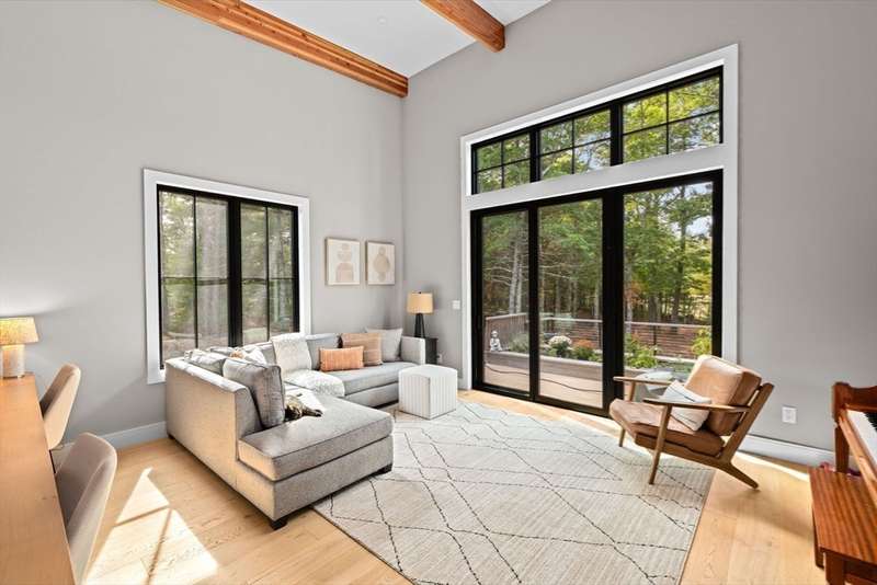Step into timeless elegance reimagined through modern Scandinavian design. Nestled on two private acres with sweeping views of a cranberry bog, this newly built residence by TM Zell Development Design/Build combines natural beauty with masterful craftsmanship. Designed by a talented architect, the home features soaring ceilings with exposed beams, wide-plank oak flooring, and a sun-filled open layout with floor-to-ceiling windows. A chef’s kitchen with premium appliances and custom cabinetry anchors the main living space, while spa-inspired baths, a private gym, and flexible living areas offer comfort and sophistication. Outdoors, a spacious back deck provides the perfect backdrop for entertaining or simply soaking in the tranquility. From morning coffee to evening sunsets, this Scandinavian Farmhouse defines luxury living in harmony with nature.