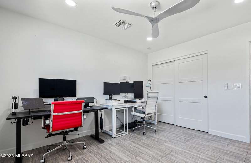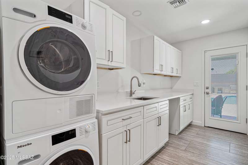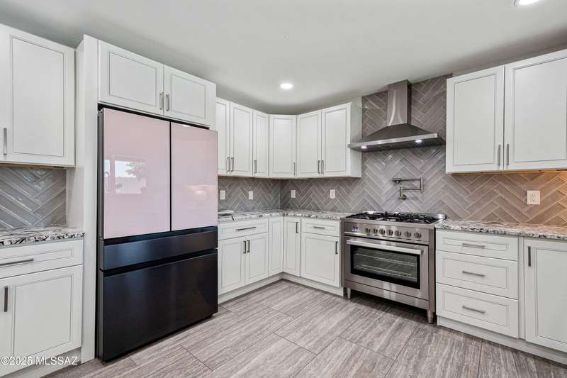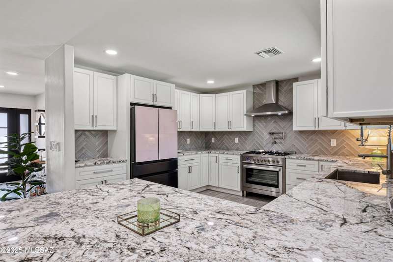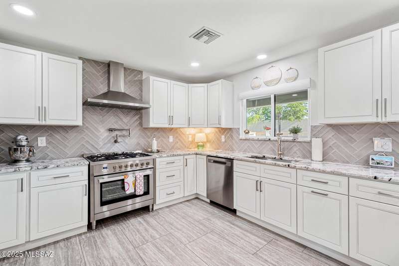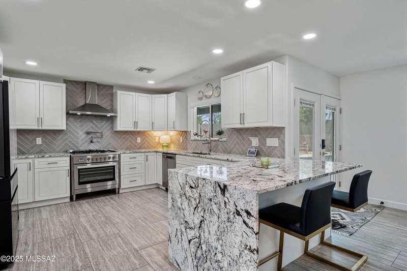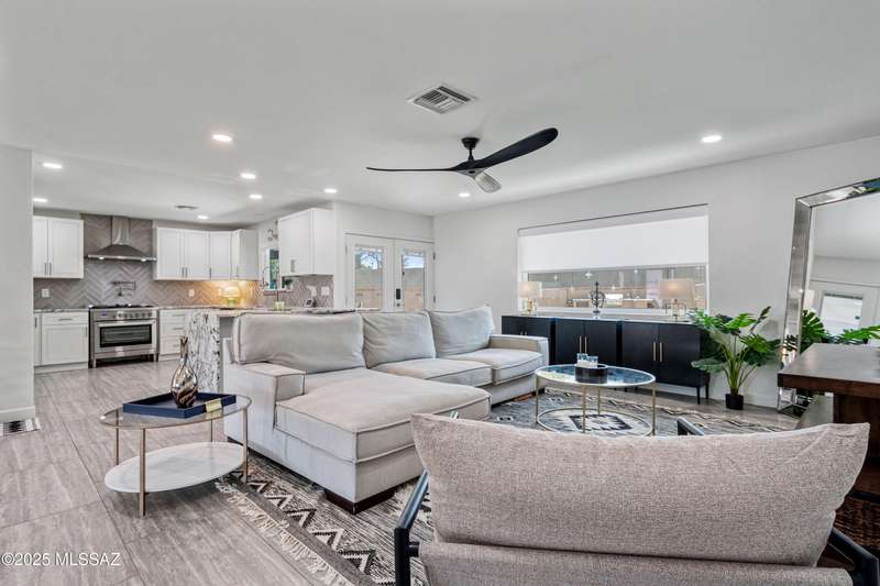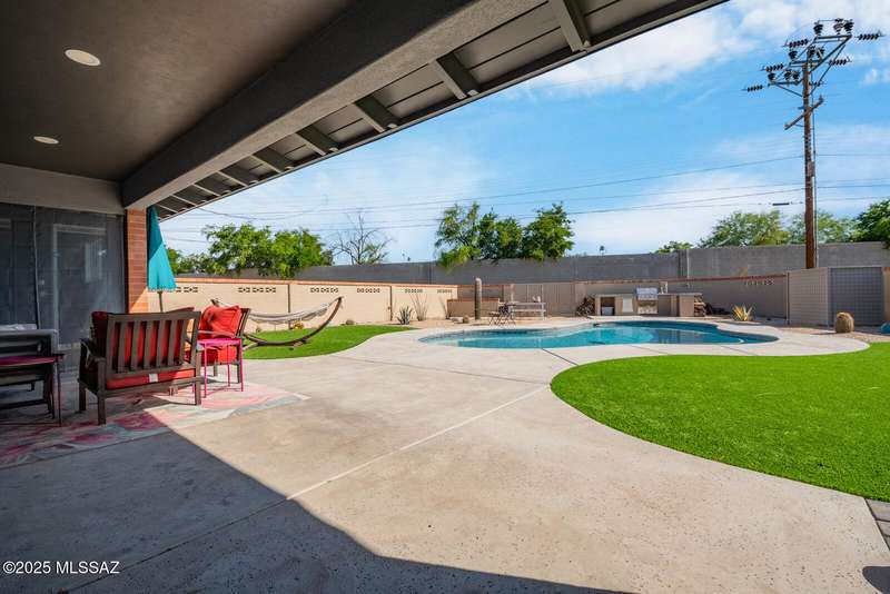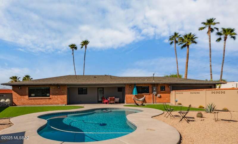 El Conquistador Estates is an urban oasis convenient to Randolph Park, Reid Park Zoo, Del Urich Golf Course, UofA, shopping mall, and public transportation. Come see this pristine professionally revitalized home. Enjoy 3 large bedrooms, 3 baths, on an almost 1/2 ac lot. Easy care landscaped turf yard, sparkling pool and built-in bbq entertaining center for resort living. This solid masonry Soft Contemporary home has it all: high-end gourmet kitchen, custom tile floors throughout, gorgeous bathrooms, newer HVAC and windows, are just some of the amenities. Fully finished drive-through two car garage, metal gates, easy backyard access, and mountain views to enjoy!