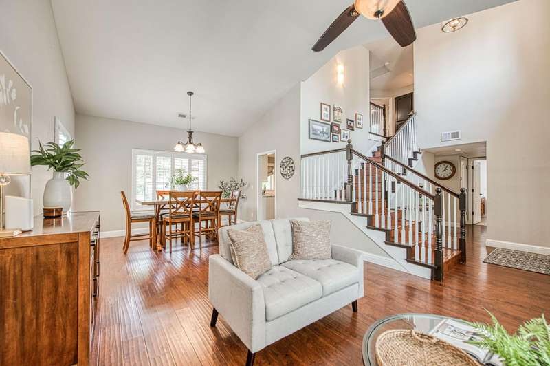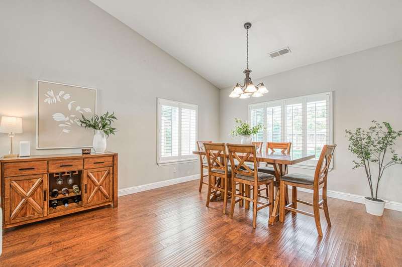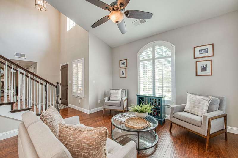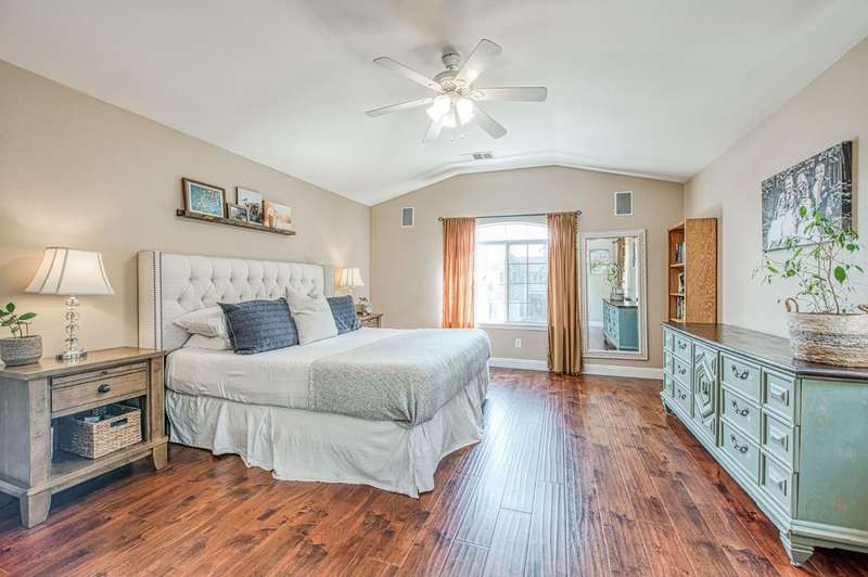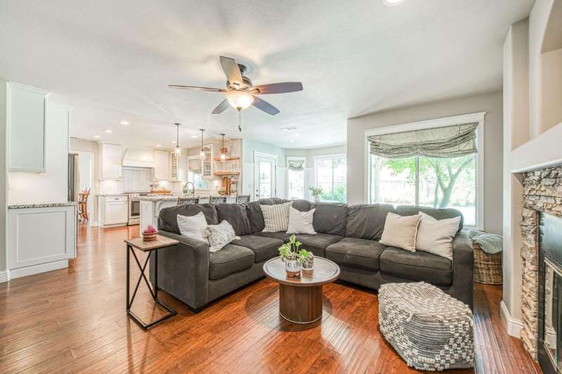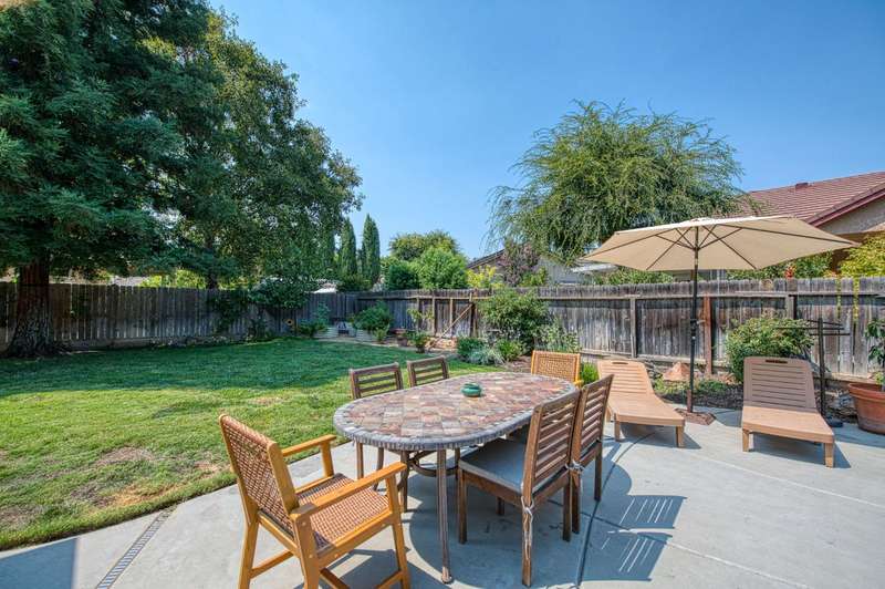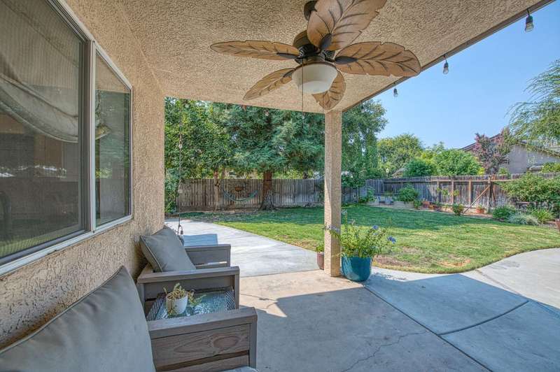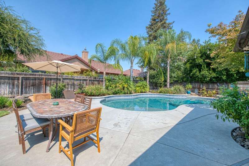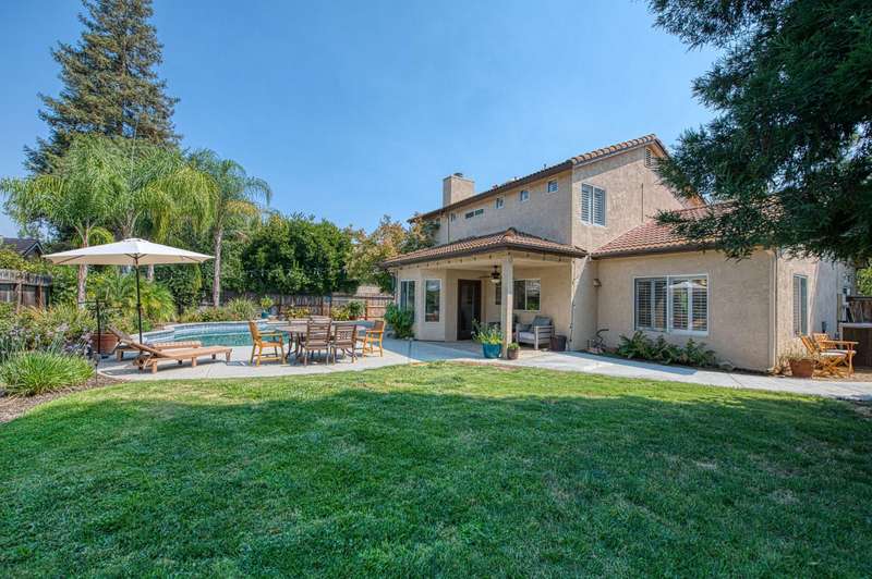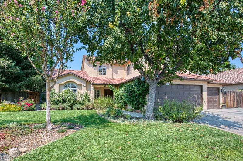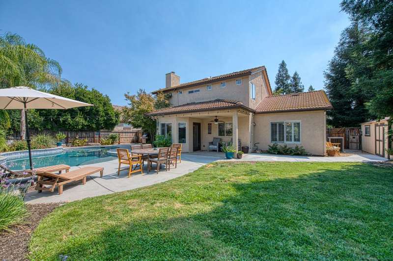 This 4-bedroom, 3-bath home in the sought-after Buchanan School District offers a spacious and inviting layout. The open floorplan includes formal living and dining rooms plus a remodeled kitchen with a 5-burner gas cooktop, double ovens, built-in microwave, soft-close shaker cabinets, subway tile backsplash, floating shelves, breakfast bar, and dining nook overlooking the backyard. Upgrades include shutters, a whole house fan, and dual-zone HVAC. The floorplan features an isolated bedroom with full bath downstairs, a spacious primary suite upstairs, laminate flooring throughout, a stone fireplace, and excellent storage options, including a finished Tuff Shed. The large 9,350 sq ft lot provides RV access, a 3-car garage, and mature landscaping with fruit trees including lemon, apricot, persimmon, fig, and stone fruits. A covered patio and refreshing pool complete the backyard retreat. Located on a quiet street near parks, trails, shopping, and the Buchanan Educational Complex just around the corner.