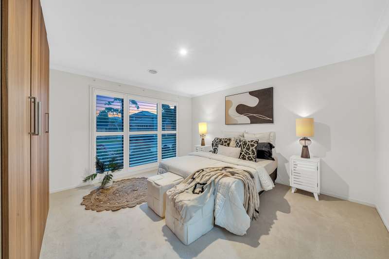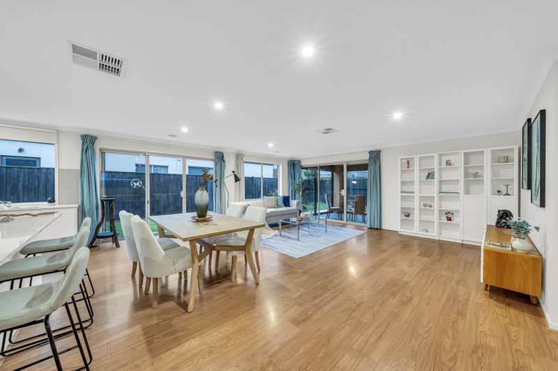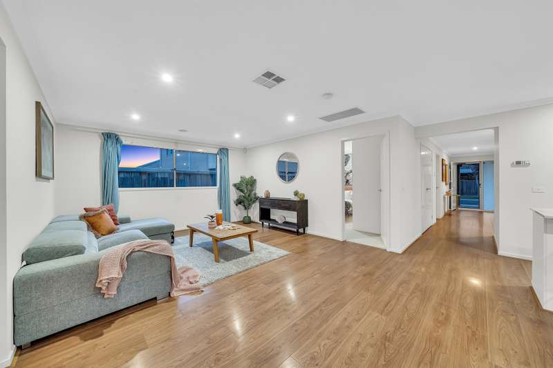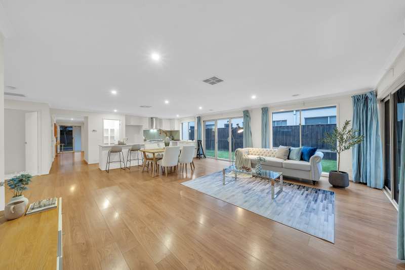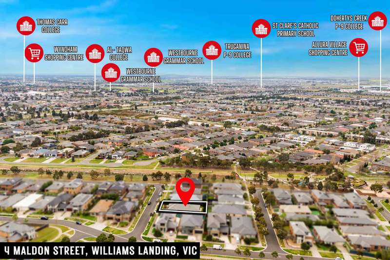 Set within beautifully landscaped gardens, this sophisticated contemporary residence delivers elegance, space and convenience in one exceptional package. Perfectly positioned just a short stroll from Elmstead Park, Williams Landing Train Station and the vibrant Williams Landing Town Centre and Shopping Centre, it offers the ideal blend of tranquillity and urban connectivity. Step inside and be welcomed by sun-filled living spaces, an inviting ambience and a thoughtfully designed floorplan tailored to modern family living. Highlights • Designer kitchen with stone benchtops, glass splashback, 900 mm gas cooktop, oven, glass canopy rangehood and a spacious walk-in pantry. • Flexible living zones including a formal lounge/kids' retreat or open theatre room seamlessly connected to the dining and family areas – perfect for entertaining or relaxing. • Luxurious master suite with walk-in robe plus extra storage and a full ensuite featuring a shower and stone vanity. • Three additional generous bedrooms with built-in robes, serviced by a stylish central bathroom with bathtub and separate toilet. • Expansive laundry with linen storage and convenient side access. • Double remote garage with aggregate concrete driveway and both internal and external access. • Inviting rear sunroom ideal for outdoor dining and year-round entertaining. • Low-maintenance gardens with a beautifully landscaped front yard and artificial grass at the rear. Added Comforts Ducted heating and evaporative cooling provide year-round comfort. Premium finishes include plantation shutters, quality curtains, stone benchtops, flyscreens, timber floorboards and Wi-Fi-connected LED downlights, creating a refined and contemporary atmosphere throughout. This meticulously crafted home represents modern living at its finest, offering an enviable lifestyle in a sought-after location. Don't miss the opportunity to make this stunning property your own. CONTACT US TODAY Haresh Mutreja | 0430 095 116 Di Zhu ?? (Mandarin ?? & English) | 0410 911 167