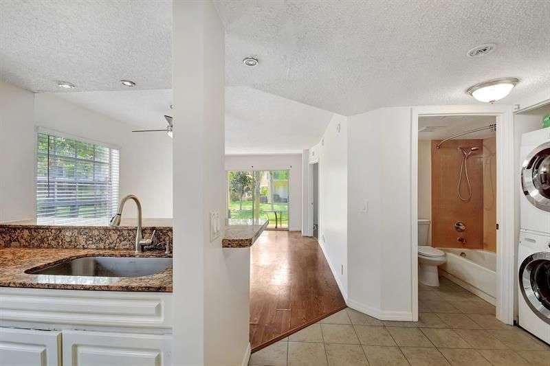 Enjoy Florida living in this lovely community situated along the intercoastal waterway. Spectacular water views by the pool and a private beachy/sand area await you. This 2 bed/2 bath with a garage. This updated condo has granite countertops, stainless steel appliances and a washer and dryer for your convenience. Basic cable and water is included. Relax in the back patio or stroll down to the community pool with a clubhouse, grilling station & fitness center. Rest secure in a gated community with walking/jogging trails, fishing and nearby Kelsey Park which features a playground and pickleball courts. Located near beautiful beaches, boating/water activities, fine dining, shopping and I95/Turnpike. Transit options within 12 miles, such as: international airport and train stations.
