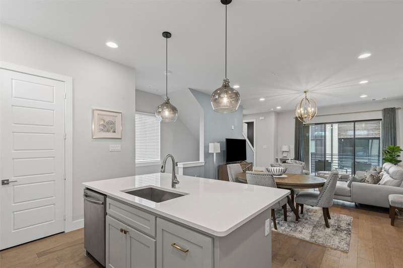 Experience exceptional design and lock-and-leave convenience in this beautifully upgraded corner unit 3-bedroom, 3.5-bath townhome, conveniently located near Fort Worths Cultural District and downtown. With three levels of thoughtfully curated living space, this home blends form, function, and style in a prime location. From the moment you walk in this corner unit, you'll notice the attention to detail with an en expanded powder bath, elevated finishes and designer upgrades set this home apart. Each bedroom features its own private en-suite bath, offering comfort and privacy for residents and guests alike. The first level includes a full guest suite and access to the attached 2-car garage. Upstairs, the open-concept main floor is built for entertaining, with an upgraded chefs kitchen featuring quartz countertops, a gas range, custom cabinetry, a large island, and walk-in pantry. The living and dining areas flow effortlessly together, with a powder bath and a covered balcony for added flexibility. The third floor hosts a serene primary suite with a spa-like bath and a generous walk-in closet, plus a third en-suite bedroom currently used as a home office, a wet bar, and laundry space, all finished with an elevated design throughout. With HOA-covered exterior maintenance, insurance, landscaping, water, and trash, this home offers an upscale, low-maintenance lifestyle with every detail considered. If you're looking for a home that stands out in all the right ways, this is the one!