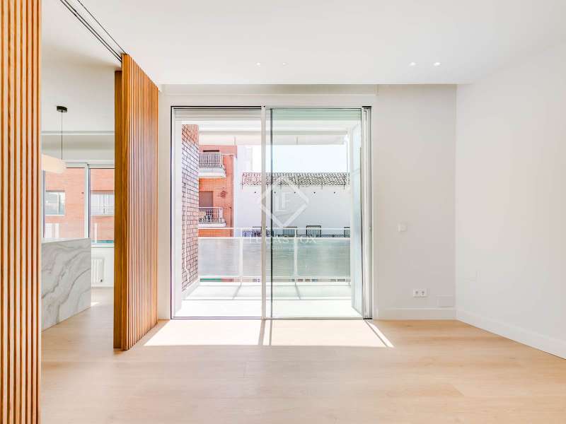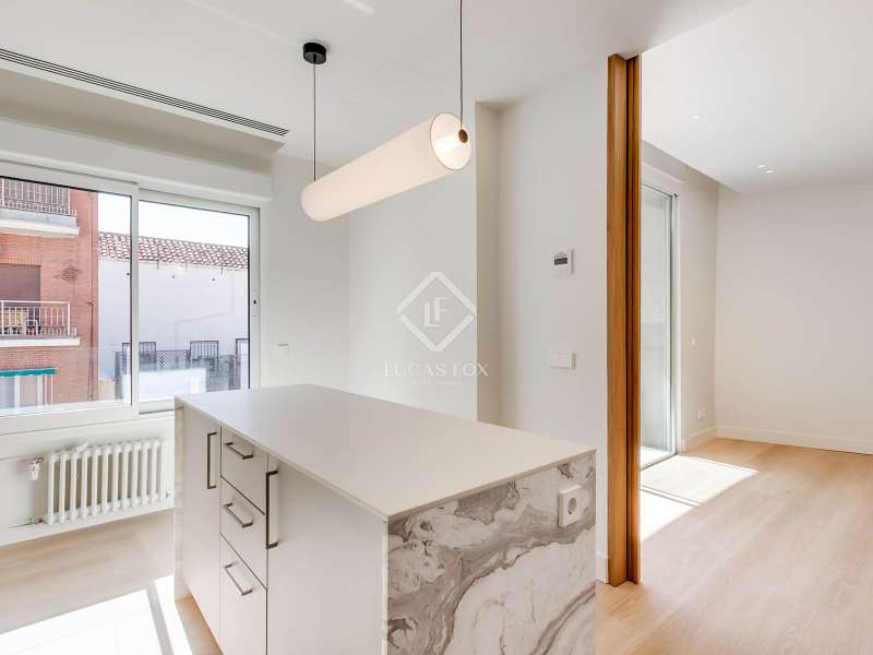 Lucas Fox presents this spectacular apartment on the sixth floor, on one of the most representative streets of the stately Almagro neighbourhood , in José Abascal. The property has been recently renovated with high-quality finishes. It has three bedrooms, two of them with private bathroom, and a third full bathroom for guests. The spacious and bright living-dining room opens onto a sunny terrace, perfect for leisurely breakfasts or relaxing at the end of the day. The functionally designed kitchen is fully equipped with Bosch & Balay appliances . The building has a concierge, two elevators, and is just a few meters from the metro, in an unbeatable location to enjoy urban life with tranquility and distinction. Contact us for more information.
