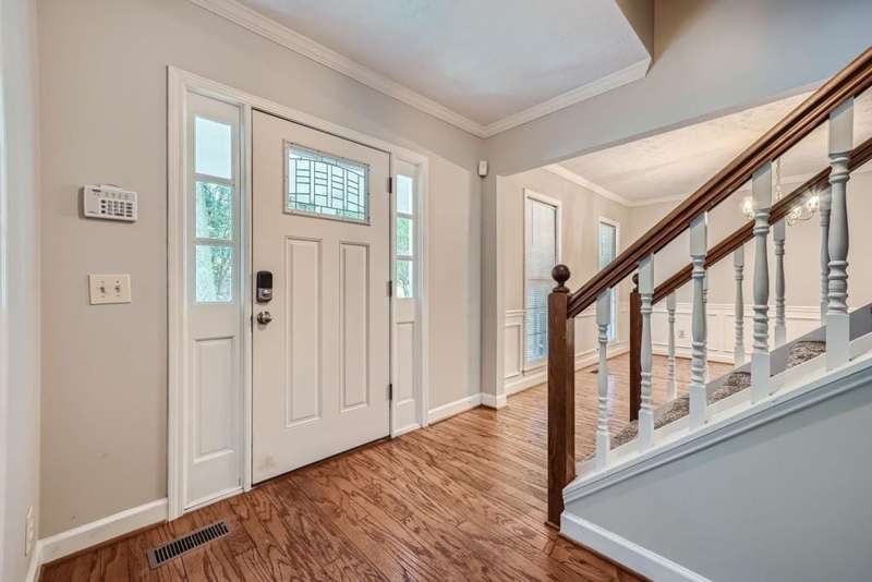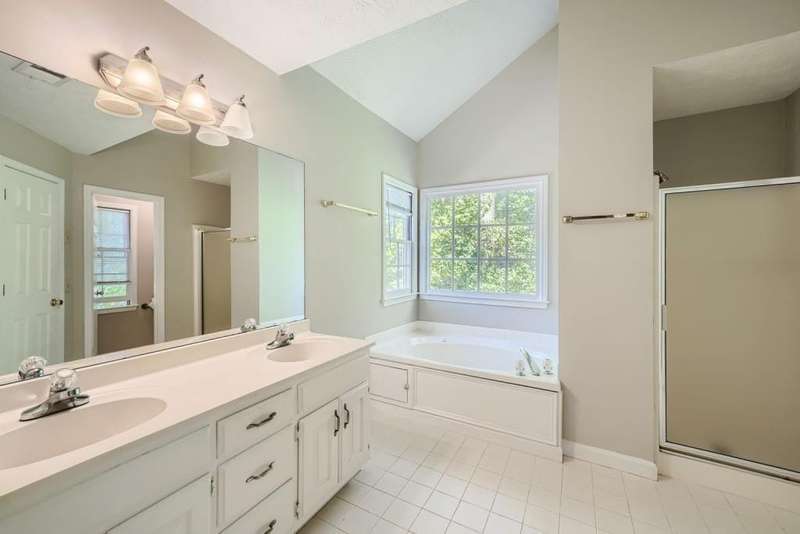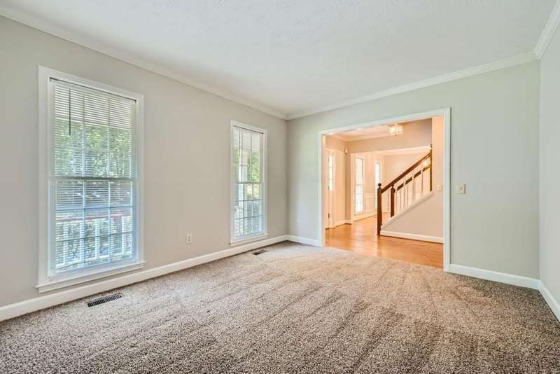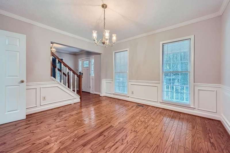 Welcome to your dream home in the charming Parkwood Ridge subdivision of Snellville! This delightful traditional-style residence boasts three spacious bedrooms and two and a half baths, offering a perfect blend of comfort and functionality. As you approach, you'll be greeted by an inviting rocking chair front porch that sets the tone for the warmth inside. Step into the expansive living room, where a cozy brick fireplace creates a welcoming ambiance for gatherings. The elegant separate dining room features beautiful hardwood flooring, perfect for entertaining family and friends. The bright eat-in kitchen, with its stylish white cabinets, provides a serene view of the lush, wooded backyard. Retreat to the generous primary suite, complete with fresh carpeting and tray ceilings, where you'll find an ensuite bath that feels like a private spa, featuring a double vanity, soaking tub, and separate shower. With a partial daylight unfinished basement offering endless possibilities, and a convenient two-car garage leading directly into the basement, this home is brimming with potential. Don't miss the opportunity to make this charming residence your own!