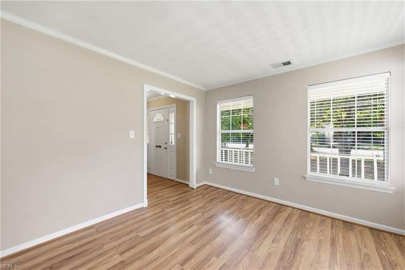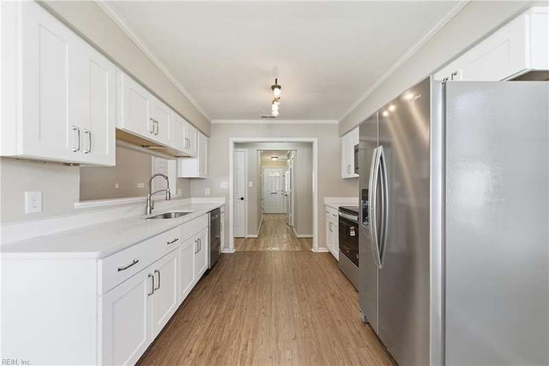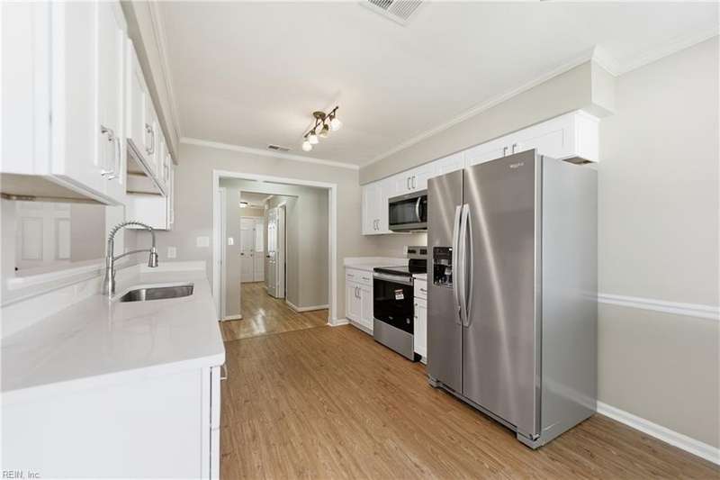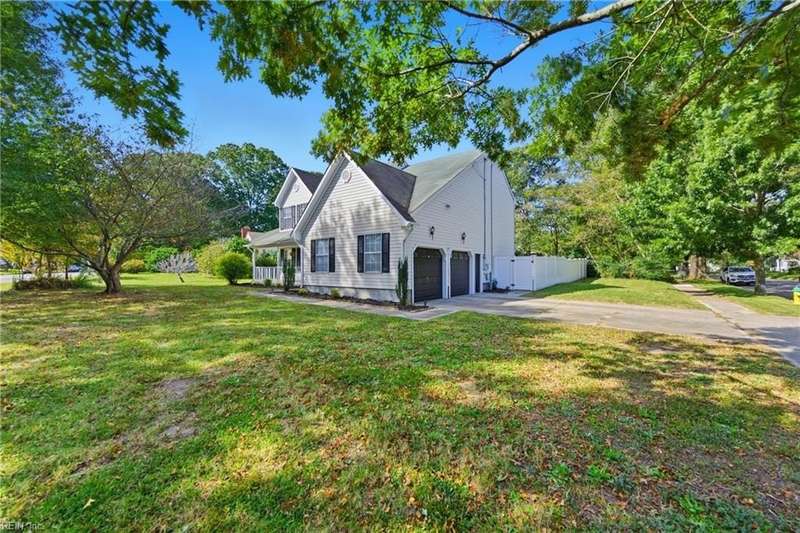 Welcome home to this Charming 4 BR, 2.5 BA home nestled on a spacious corner lot in desirable Suburban Acres neighborhood! The renovated kitchen features granite countertops, new cabinetry, stainless steel appliances, generous pantry, & sun-filled breakfast nook. The main level offers a warm & inviting family room complete w/ gas fireplace, traditional living & dining room, & an updated half bath. Upstairs, primary ensuite impresses w/ vaulted ceiling, skylight, oversized walk-in closet, jetted soaking tub, separate shower, & dual sinks. 3 additional generously sized BRs share a large full bath adjacent to the laundry area. New LVP flooring in kitchen & half bath, freshly painted interior, & exterior trim. Highlights include a private fenced backyard, two door sideload garage, ample parking, & plenty of storage. Convenient access to the interstate, shopping, ODU, & Naval Base.