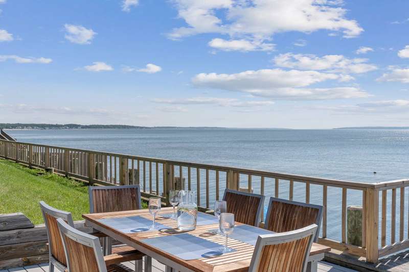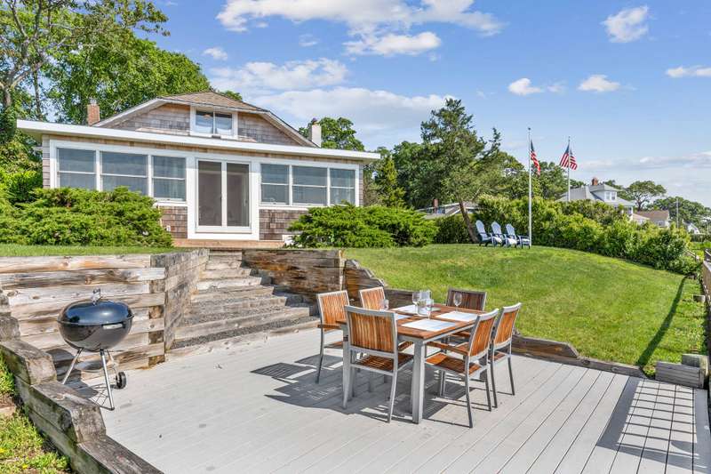 Stylish beach cottage, with stunning water views overlooking Peconic Bay . Newly renovated with a sophisticated beach vibe, 3 bed and 1 bath with eating and lounge areas overlooking the water. - Sandy dock to launch your kayak, go for a daily swim or meditate at water's edge - Wood burning fireplace for cool evenings in the late Summer & Fall - Outside shower - Central air /heat on ground floor - Please note there is a lightly used association 'right of way' to the water to the left of the property. Listing ID:892591