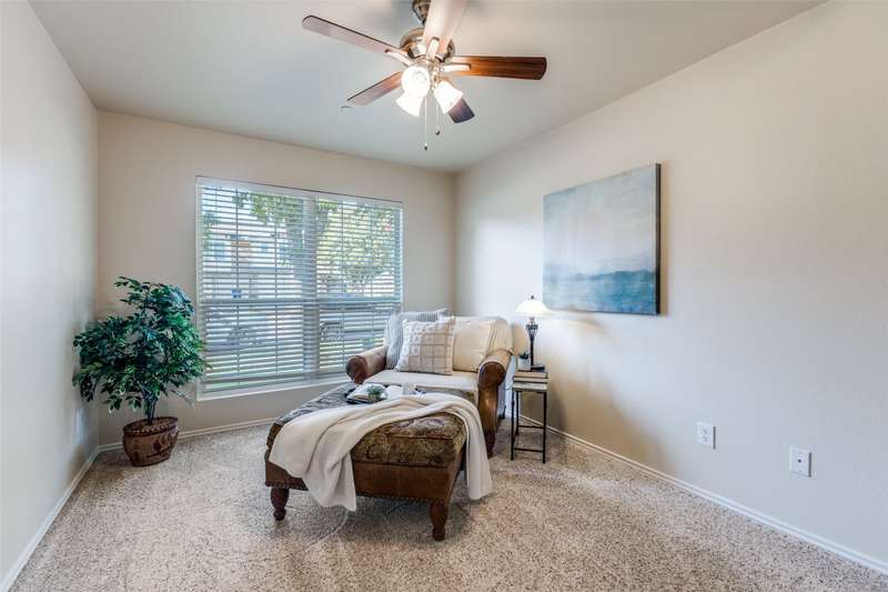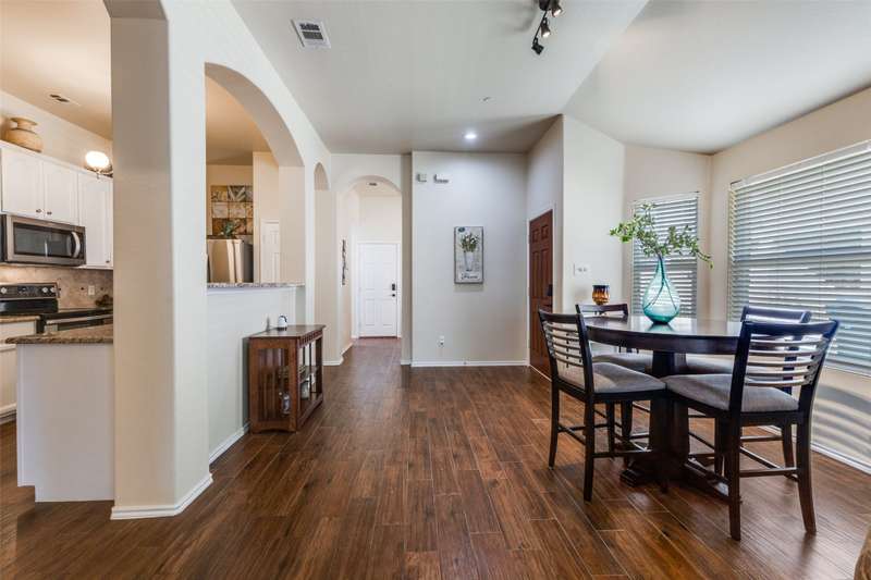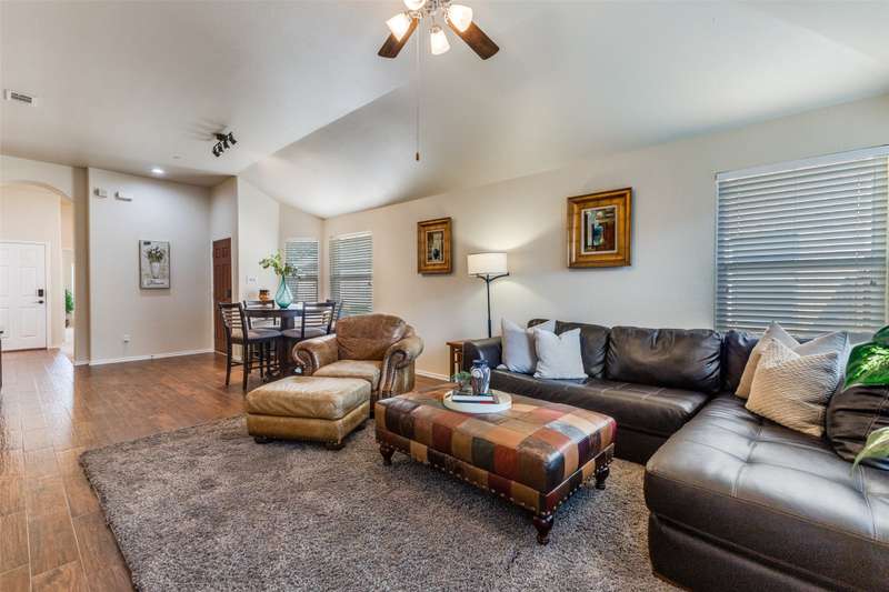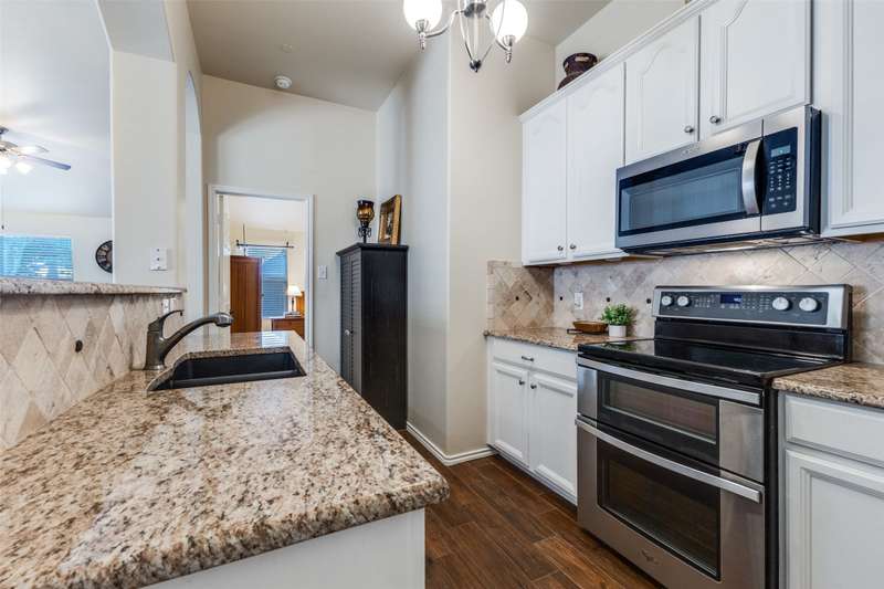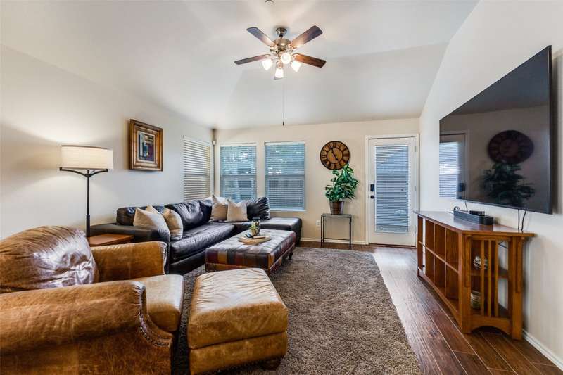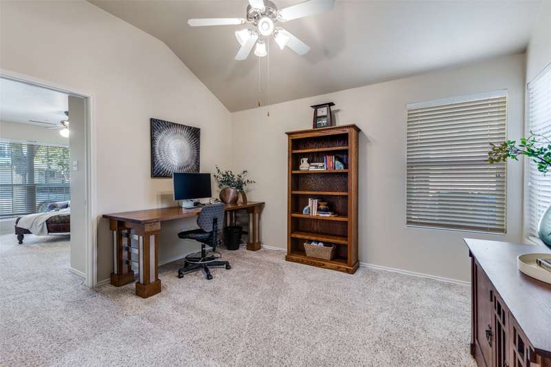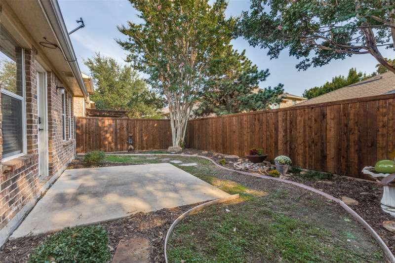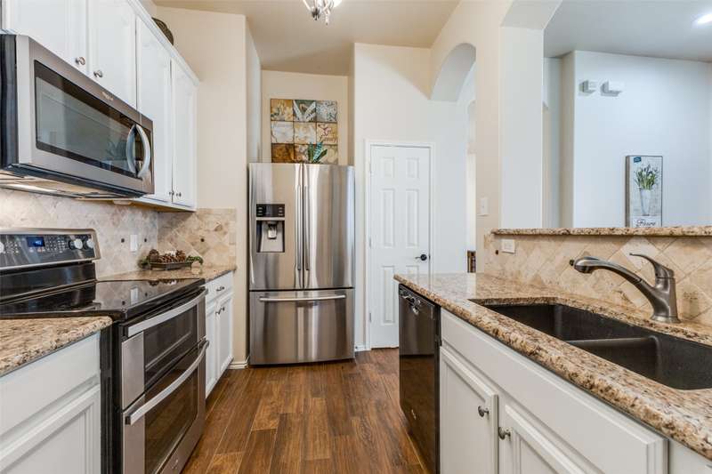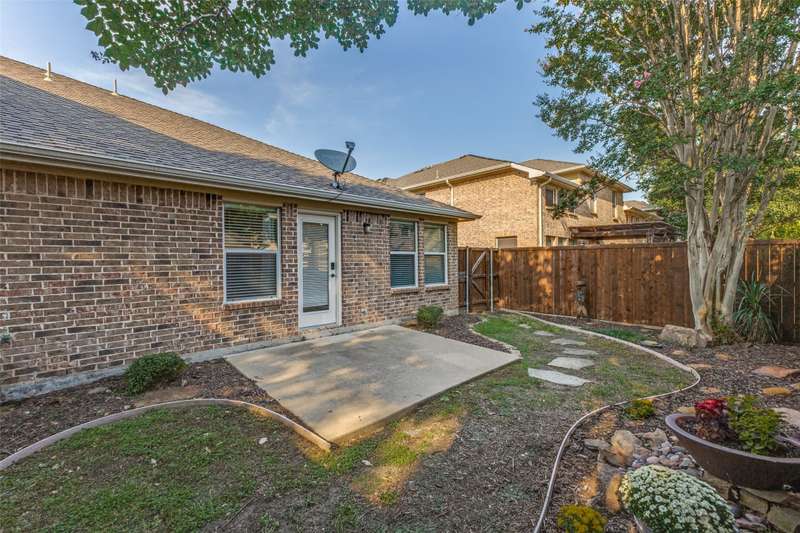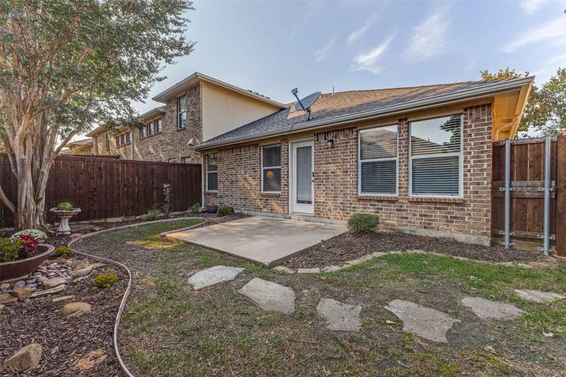 Enjoy the ease of lock-and-leave living in this charming single-story townhome in Frisco! Inside, youll find a spacious living room plus a versatile second living spaceideal for a home officealong with 2 bedrooms. The kitchen offers granite countertops, an electric cooktop, and a spacious pantry. The private Primary Suite is tucked at the back of the home with a barn-door entry to the ensuite bath and a generous walk-in closet. Flooring includes porcelain wood-look tile and carpet that was replaced in 2022. Additional highlights: front storm door, extra floored attic space, epoxy-finished 2 car garage with slatted wall storage, and a private backyard patio. Community amenities include a pool and Frisco's Tuscany Park within walking distance, which includes a park, playground, basketball court, pavilion and jogging trail. Zoned to highly rated Frisco ISD schools and ideally located near shopping and dining along Preston Road and Stonebriar Mall. Quick access to the Dallas North Tollway, Hwy 121, The Star, and Toyota Stadium. HOA covers exterior maintenance (except backyard), blanket insurance, and front yard care. Laundry room accommodates full-size washer and dryer. The refrigerator, washer & dryer, and the black storage cabinet in the kitchen may convey.