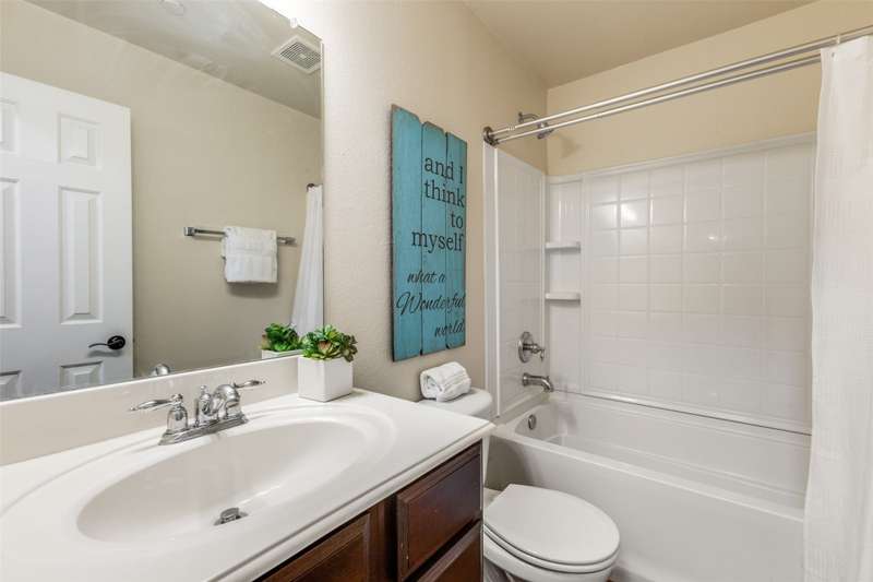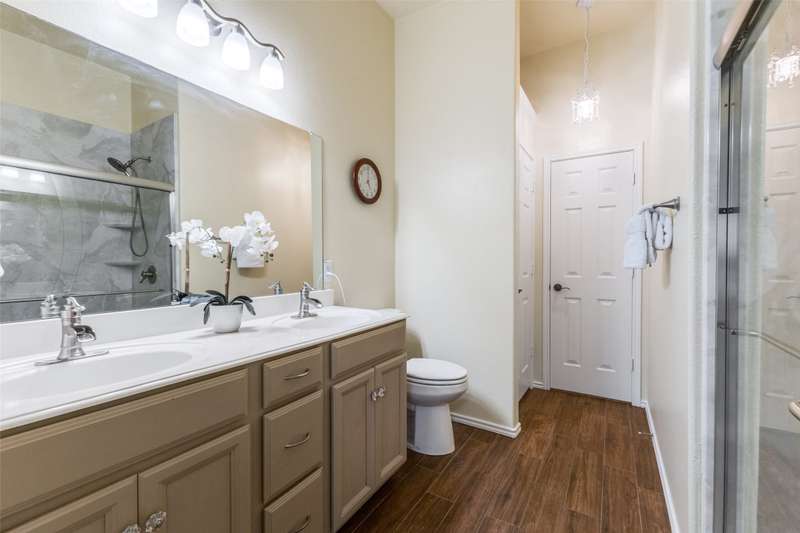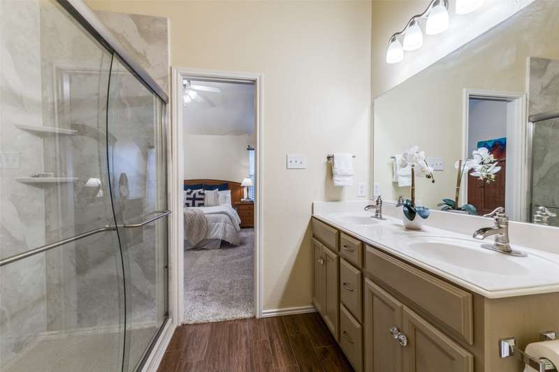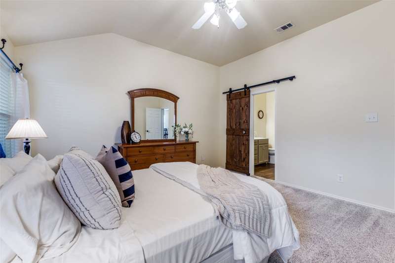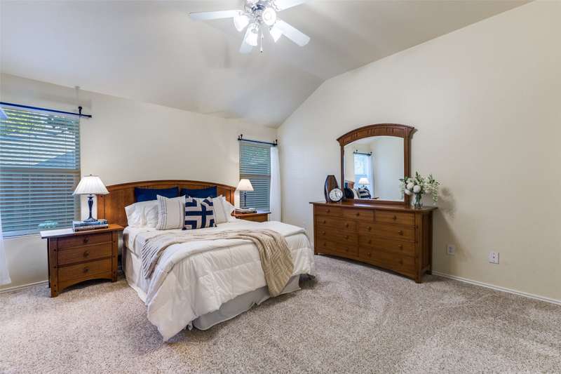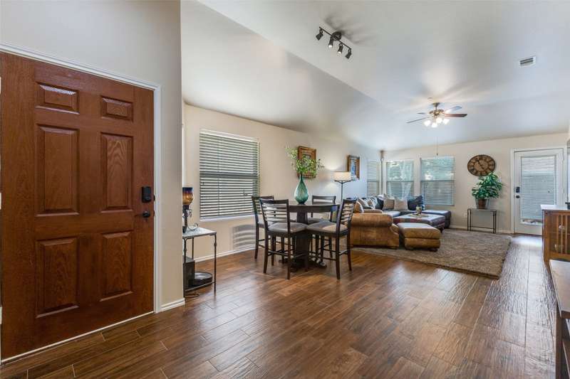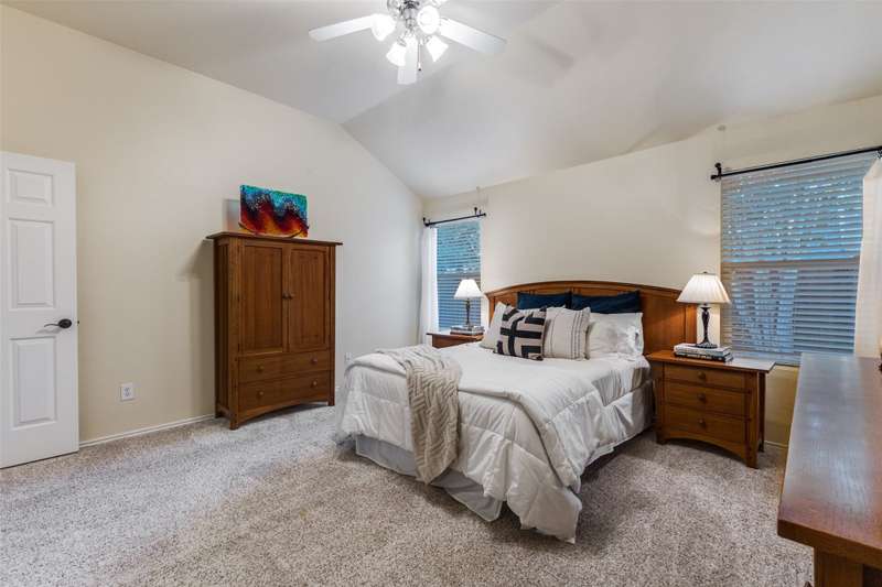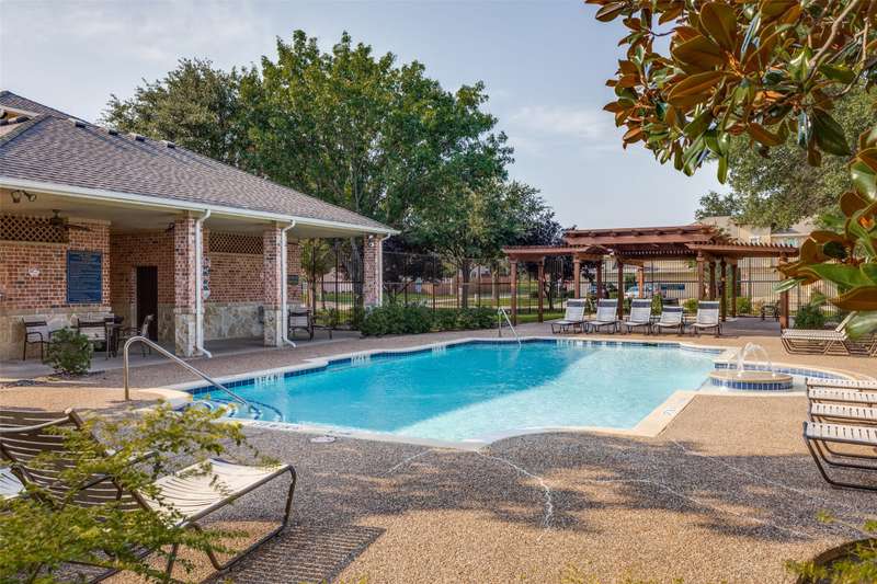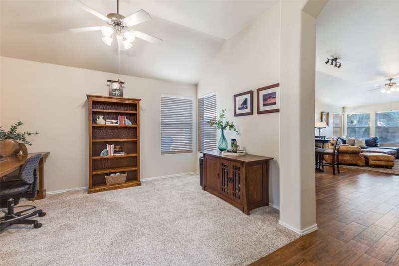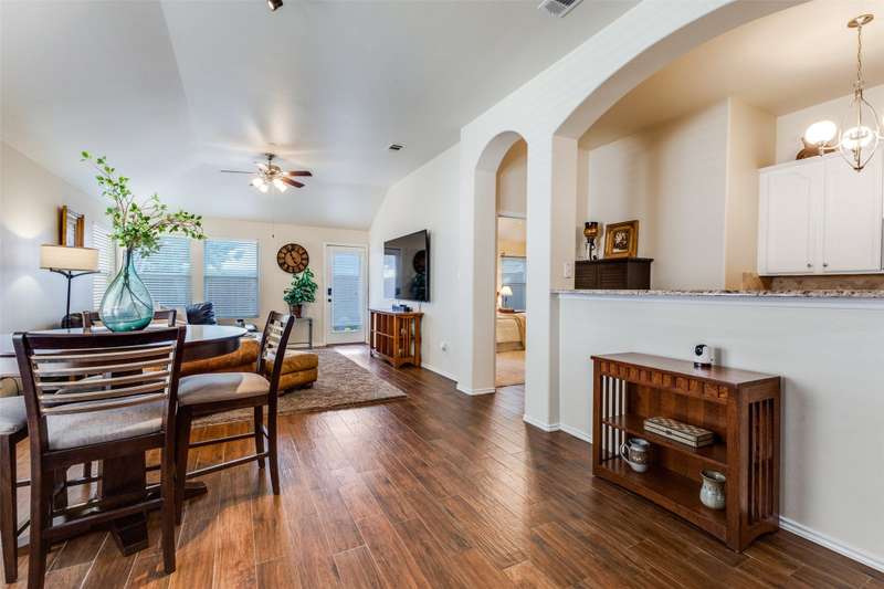 Enjoy the ease of lock-and-leave living in this charming single-story townhome in Frisco! Inside, youll find a spacious living room plus a versatile second living spaceideal for a home officealong with 2 bedrooms. The kitchen offers granite countertops, an electric cooktop, and a spacious pantry. The private Primary Suite is tucked at the back of the home with a barn-door entry to the ensuite bath and a generous walk-in closet. Flooring includes porcelain wood-look tile and carpet that was replaced in 2022. Additional highlights: front storm door, extra floored attic space, epoxy-finished 2 car garage with slatted wall storage, and a private backyard patio. Community amenities include a pool and Frisco's Tuscany Park within walking distance, which includes a park, playground, basketball court, pavilion and jogging trail. Zoned to highly rated Frisco ISD schools and ideally located near shopping and dining along Preston Road and Stonebriar Mall. Quick access to the Dallas North Tollway, Hwy 121, The Star, and Toyota Stadium. HOA covers exterior maintenance (except backyard), blanket insurance, and front yard care. Laundry room accommodates full-size washer and dryer. The refrigerator, washer & dryer, and the black storage cabinet in the kitchen may convey.