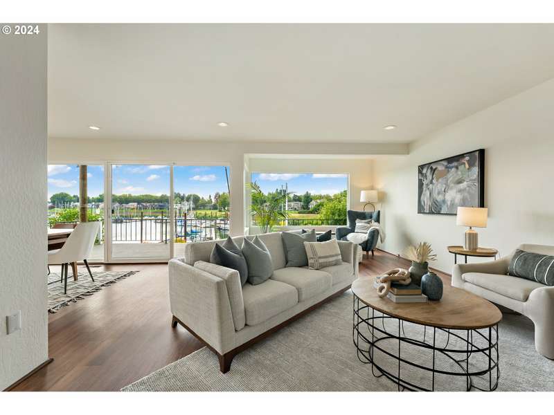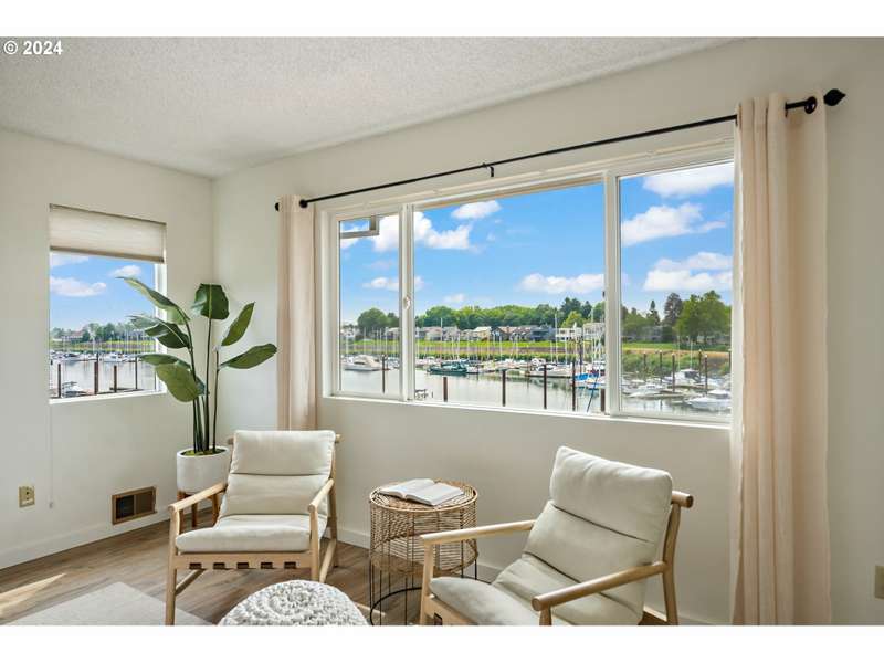$10K Price Reduction! Pool and boating season are in full swing- enjoy taking the private path just steps from the condo to the beautiful pool and clubhouse. Monthly planned gatherings for the community or just catch some rays on your own. Resort living is just 15 minutes from Downtown Portland. Step into this stunning updated condo & instantly feel like you’re on vacation. Watch the boats come and go from the marina as you lounge on your covered, newer Trex deck with a front row view. During the chilly weather, enjoy the incredible panorama from inside while the fireplace keeps you cozy. Marina views through the expansive windows in the kitchen, dining room, living room, and two upper bedrooms. Incredible sunrises to be seen over the bay, reflecting on the water. Desirable open floorplan makes entertaining a breeze. Enjoy having friends and family over for watching the annual Christmas Ships as they float in your direction. Invest in some binoculars to take advantage of the various birds, wildlife and seasonal changes in landscape. Your island life awaits! This alluring and stylish 2024 remodel included $37,000 in upgrades. New warm-toned luxury vinyl plank floors throughout. Chef’s kitchen features new SS induction range/convection oven, dishwasher, quartz counters, sink, faucet, disposal, and luxury vinyl tile flooring. Central AC, washer/dryer, and 2 assigned parking spaces add to the long list of amenities in this highly desired A unit condo. 2 assigned parking spaces, 1 under carport. Just minutes to the new Vancouver waterfront eateries, wine tasting rooms and shopping, or head over to the nearby floating Island Cafe which is now open for the season. Come see how serene marina life can be!